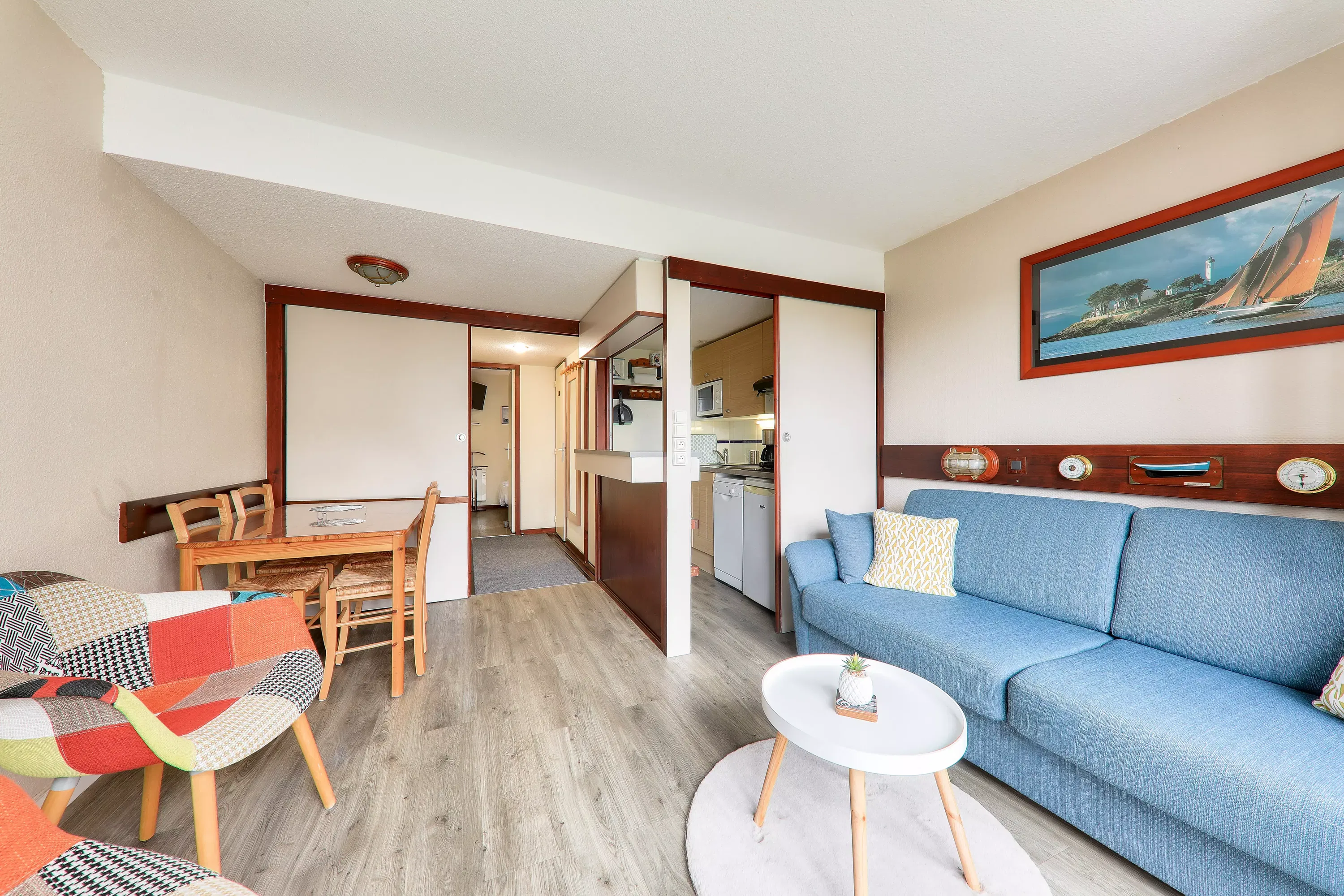 The advantages of your rental: Located on the ground floor, this 2-room apartment in the city center places you less than 500m from the sea, shops, and activities. It accommodates up to 4 people thanks to a bedroom with a double bed and a sofa bed in the living room. You'll appreciate its equipped kitchen, east-facing terrace, and parking space. Ideal for a relaxing stay as a couple, with friends, or family.