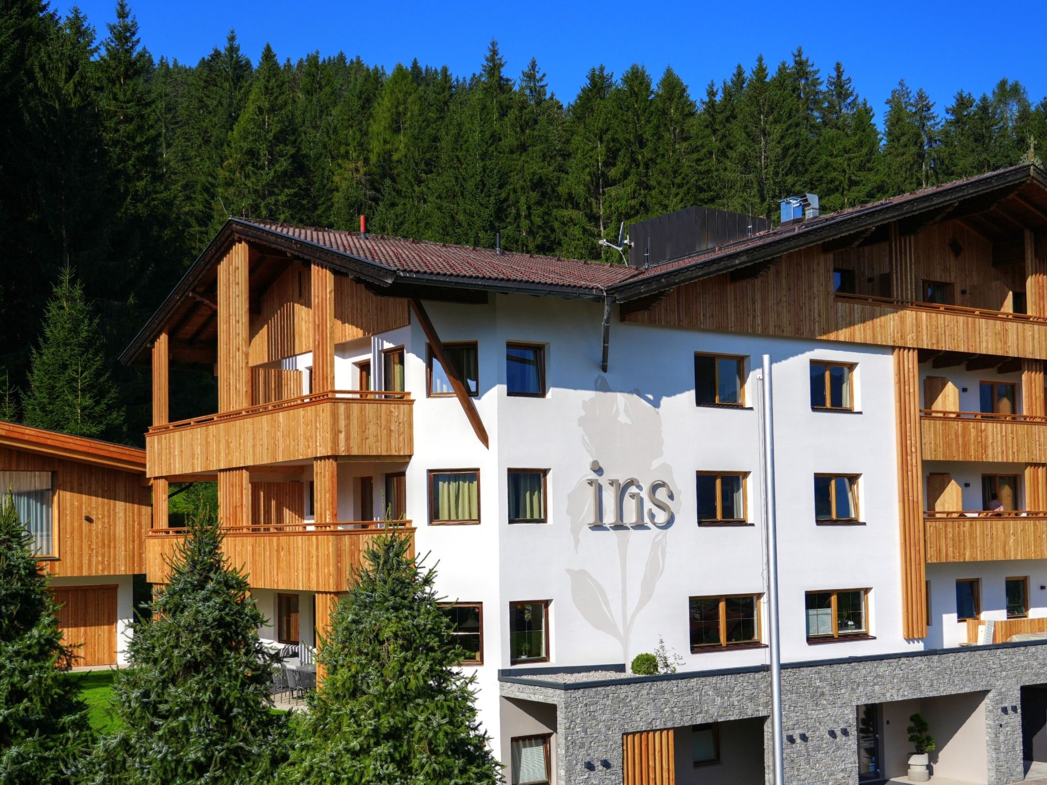 The on-site restaurant is open seasonally, during peak season, breakfast and dinner can be booked as an add-on. Very beautiful, comfortable apartment block "Aparthotel Iris", surrounded by meadows and fields. Above Auffach 1.8 km from the centre of Auffach, 6 km from the centre of Oberau, 17 km from the centre of Wörgl, in a quiet, sunny position, 50 m from the edge of the forest, 100 m from the skiing area. Private: terrace. In the house: restaurant, breakfast room, lounge, WiFi, storage room for bicycles, storage room for skis, central heating system, ski boot dryer. 2 km long motor access (mountain road). In Winter: please take snow chains, 4x4 car recommended in winter. Parking at the house. Supermarket 1.8 km, restaurant 1.8 km, bar 1.8 km, bus stop "Auffach Holzmuseum" 1.9 km, railway station "Wörgl Hauptbahnhof" 16.9 km, outdoor swimming pool 7 km. Mountain railway 1.8 km, ski lift 1.8 km, gondola lift 1.8 km, ski rental 1.8 km, ski bus stop 1.8 km, ski school 1.8 km, sled run 100 m, cross country ski track 150 m, ice rink 6 km. Nearby attractions: Familienfreizeitpark 6 km, Alpine Coaster im Drachental 6 km. Well-known ski regions can easily be reached: Skijuwel Alpbachtal - Wildschönau 2 km, Skiwelt Wilder Kaiser - Brixental 18 km (Einstieg Ellmau). Well-known lakes can easily be reached: Schwarzsee bei Kitzbühel. Hiking paths: Wildschönau / Schatzberg / Markbachjoch, Wilder Kaiser - Brixental, Kitzbüheler Alpen. Please note: The owner does not accept any youth groups. Free ski bus service to the ski region SkiJuwel Alpbachtal - Wildschönau. In case of good snow conditions, the house is accessible on skis. Please note: the owner lives on the same property.
