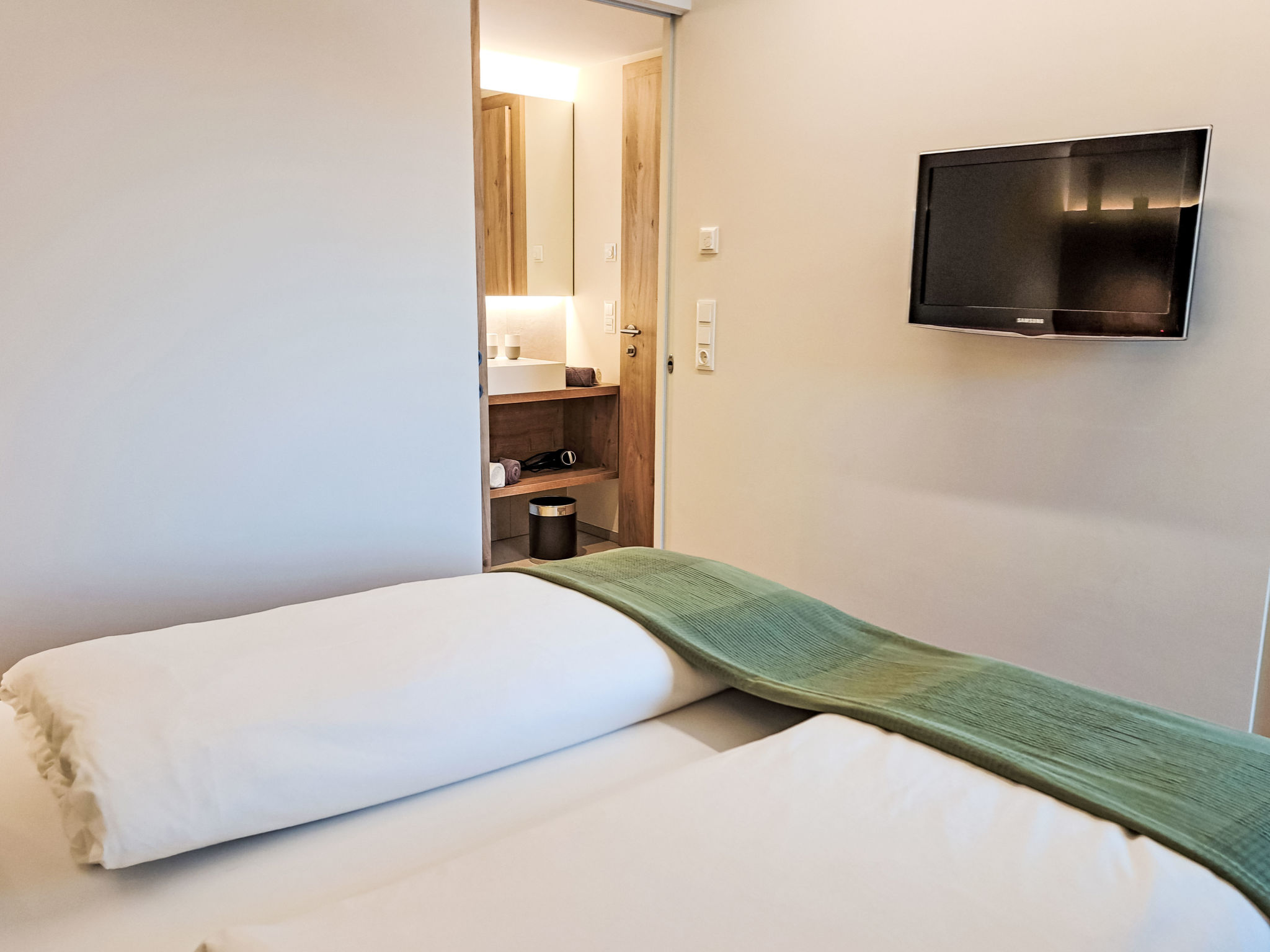 "Sommertraum", 5-room apartment 95 m2. Very comfortable and tasteful furnishings: 1 double bedroom with satellite TV and flat screen. Exit to the balcony. 1 room with 1 x 2 bunk beds. 1 double bedroom. Kitchen-/living room (oven, dishwasher, 4 ceramic glass hob hotplates, toaster, electric coffee machine) with 2 double sofabeds and dining table. Exit to the balcony. 2 showers/WC. Heating. Balcony. Balcony furniture, deck chairs. Very beautiful view of the mountains and the swimming pool. Facilities: children's high chair. Please note: non-smokers only. Maximum 1 pet/ dog allowed. There is a rain shower in the bathroom!
