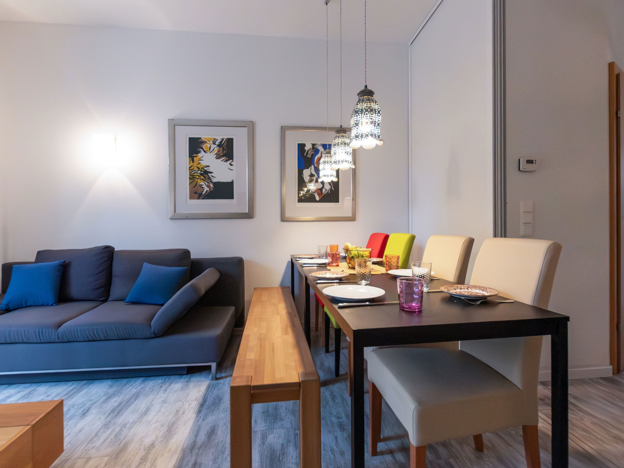 "IVA", 4-room maisonette 66 m2 on 2 levels on 1st floor. Object suitable for 6 adults. Spacious and bright, modern and tasteful furnishings: living/dining room with 2 sofabeds, dining table and cable TV (flat screen), radio. Exit to the balcony. 1 room with 1 sofabed (160 cm, length 200 cm). Exit to the terrace. Open kitchen (oven, dishwasher, 4 ceramic glass hob hotplates, toaster, kettle, electric coffee machine, combination microwave). Sep. WC. Upper floor: 1 double bedroom. Exit to the balcony. 1 room with 2 beds. Exit to the terrace. 2 showers, sep. WC. Parquet floors. 2 balconies, 2 terraces. Terrace furniture, balcony furniture. Beautiful view of the mountains and the resort. Facilities: Internet (WiFi, free). Garage (1 car) at the house. Please note: suitable for families. Non-smokers only. 1 pet/ dog allowed. Smoke alarm, fire extinguisher. 50402-000695-2020