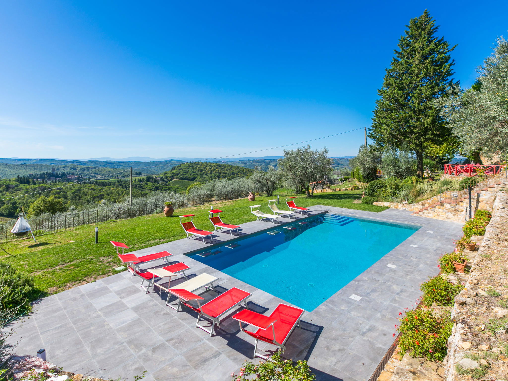 The structure presented by us is located in a strategic position, with a wonderful view of the Abbey of Badia a Passignano and the Chianti hills. Ideal place to discover the typical villages of Chianti and their cities of art. Beautiful, cosy country house "Badia a Passignano", surrounded by vineyards. Above Badia a Passignano 10 km from the centre of San Donato in Poggio, 30 km from the centre of Firenze, 40 km from the centre of Siena, in a quiet, sunny position on top of a hill, in the countryside. For shared use: garden with plants and trees, swimming pool (6 x 12 m, seasonal availability: 12.Apr. - 25.Oct. pool opening hours: 08:00-21:00) with salt-electrolysis pool-cleaning system. Outdoor shower, garden furniture, barbecue, children's playground. In the house: internet access, central heating system, washing machine, heating available only from 01.Nov. - 15.Apr.. Cook on request. 1 km long motor access (via unmade road). Parking on the premises. E-charging station. Shop 2 km, grocery 2 km, supermarket 4 km, restaurant 2 km, bar 2 km, bus stop 2 km. Golf course (18 hole) 15 km, riding stable 2 km. Nearby attractions: Tavarnelle Val di Pesa 10 km, Barberino Val D'Elsa 12 km, Greve in Chianti 16 km, Castellina in Chianti 20 km, Radda in Chianti 21 km, San Gimingnano 32 km. Please note: the owner lives on the same property. Additional accommodations can be booked.