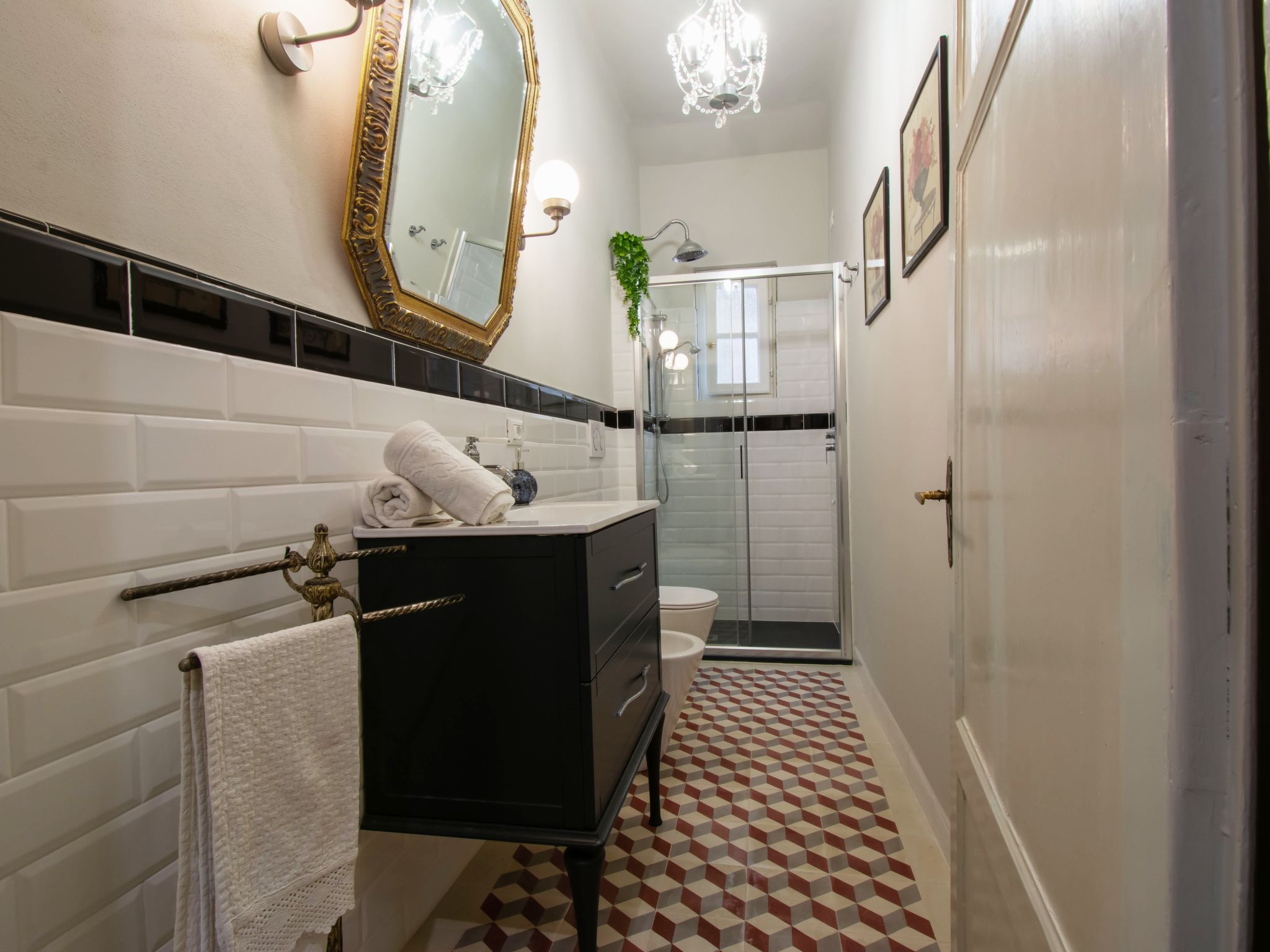 "Deco Lux", 5-room apartment 110 m2 on 3rd floor. Luxurious and stylish furnishings: living room with open-hearth fireplace (only for decoration), digital TV and air conditioning. 2 double bedrooms, each room with air conditioning. 1 double bedroom with shower/bidet/WC and air conditioning. (oven, dishwasher, 4 induction hot plates, toaster, kettle, electric coffee machine). Shower/bidet/WC. Beautiful view of the city. Facilities: washing machine, dryer, children's high chair, baby cot for up to 2 year olds, hair dryer. Internet (WiFi, free). Please note: non-smoking house. Maximum 1 pet/ dog allowed. Smoke alarm, fire extinguisher. IT046017C2ZD2TQZ36