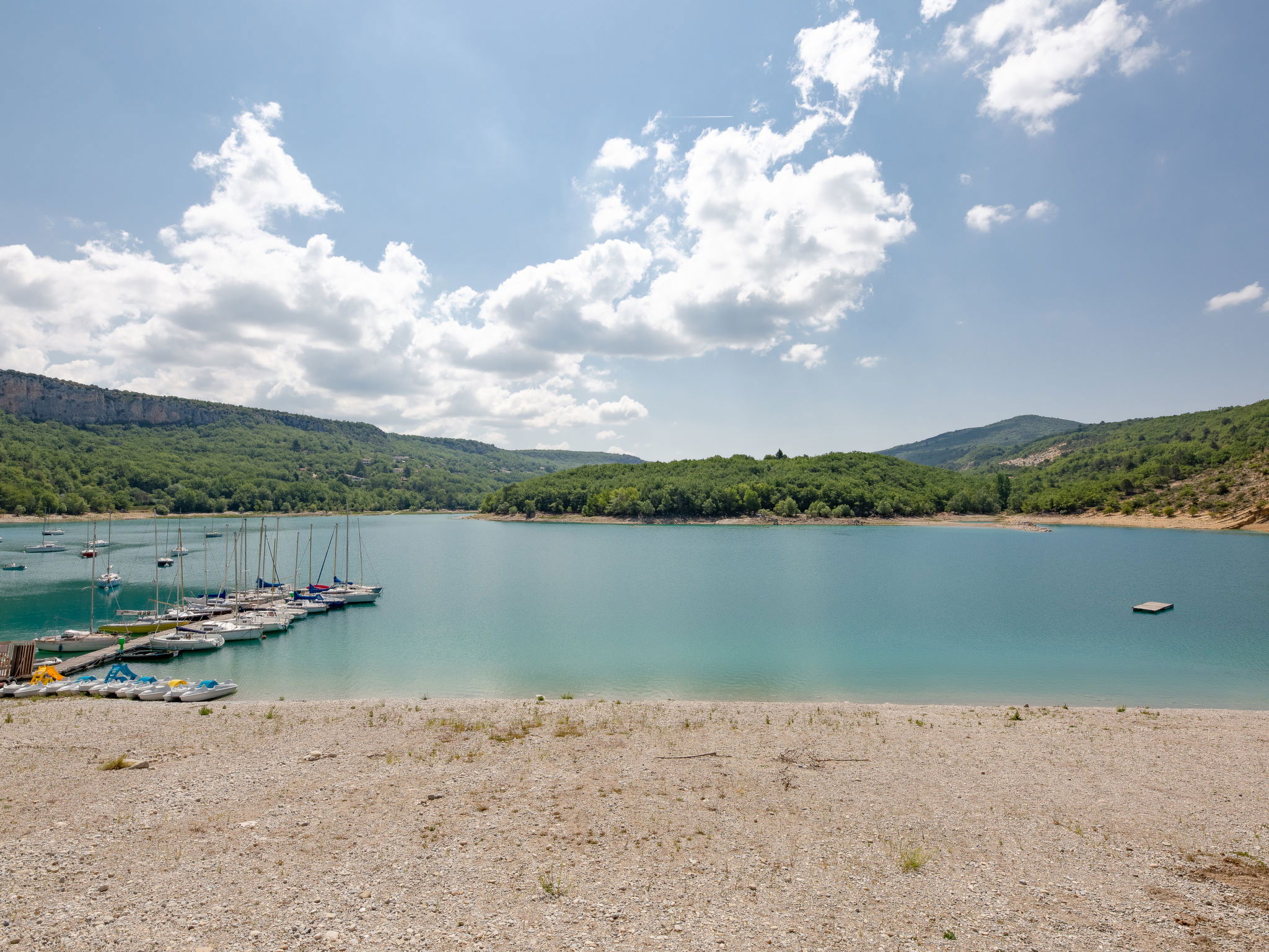 Rustic country house "Campagne les Oliviers", surrounded by trees and fields. 4 apartments in the property. In the hamlet Font Castellan 2.5 km from the centre of Bauduen, 17 km from the centre of Aups, in a secluded, sunny, elevated position on a slope, 200 m from the lake. For shared use: large, well-kept terraced garden, 3'000 m2 (not fenced) with plants and trees, meadow. In the house: washing machine (for shared use). Steep motor access to the house (ramp). Parking on the premises. Shop 2 km, bus stop 14 km, swimming bay 800 m, lake Lac de Sainte Croix 200 m. Walking paths from the house 50 m. Nearby attractions: Moustier 30 km. Hiking paths: Gorges du Verdon 20 km. Please note: Additional accommodations can be booked.