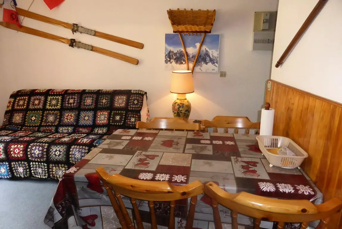Apartment for 2 to 4 people with a surface area of approximately 21 m², elevator level 1 / ground floor terrace side: composed of a living room with 1 double sofa bed and kitchen area with dishwasher - a small bedroom with 2 bunk beds - 1 bathroom - separate toilet - West terrace. Ski locker. Parking in the residence. Garage available at an additional cost.