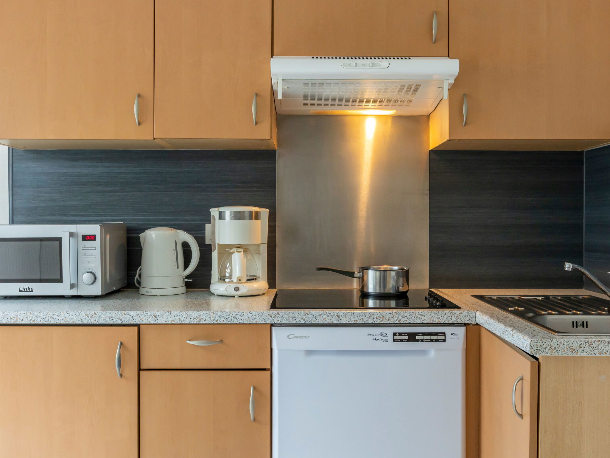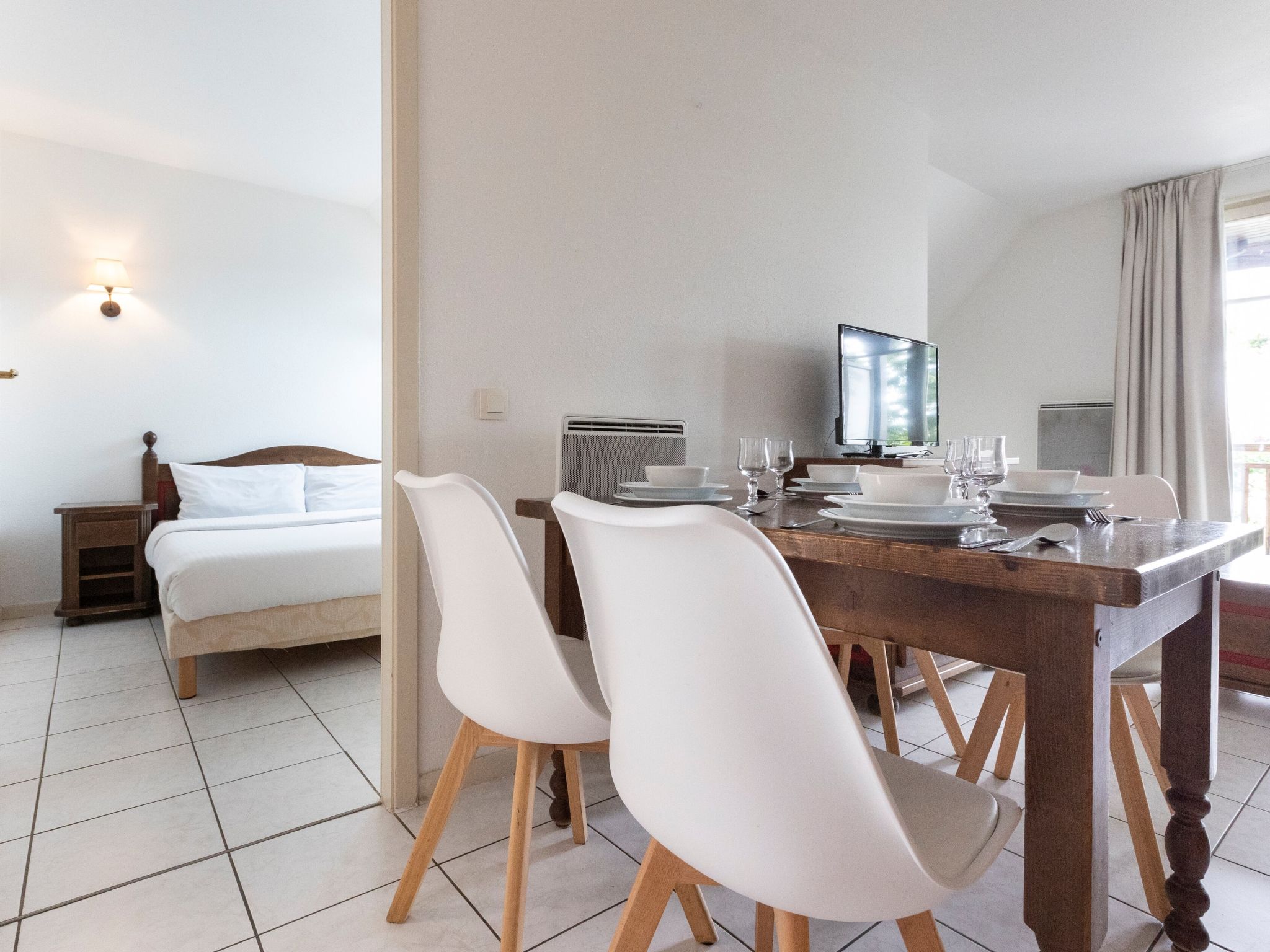 "Odalys Référence Le Domaine des Rois", 2-room apartment 33 m2. Simple furnishings: living/dining room with 1 pull-out bed (2 pers.). 1 room with 2 sleeping facilities. Kitchenette (dishwasher, 2 ceramic glass hob hotplates, microwave). Bathroom, sep. WC. Electric heating. Balcony or terrace. Facilities: children's high chair, baby cot (extra). Internet (WiFi, free). Maximum 1 pet/ dog allowed. The property is one of a type of property or apartment.