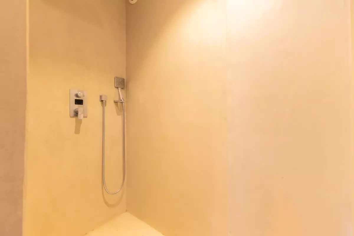 The apartment has a bedroom with its own shower room, simple and refined, offering a shower to relax you after a day at the beach.