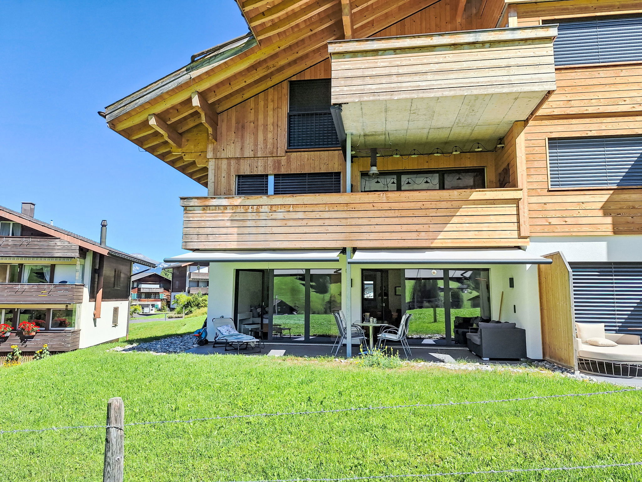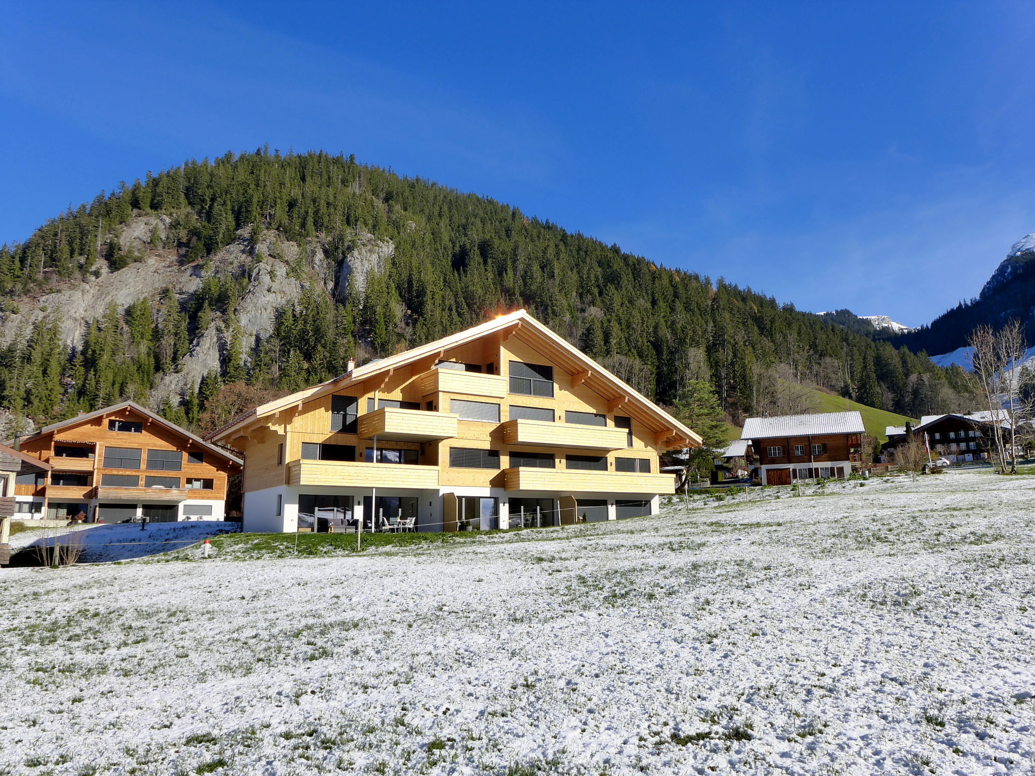 Blankenburg 1 km from Zweisimmen: Beautiful, very comfortable apartment house, 3 storeys, built in 2021. In a sunny position in the residential district. In the house: storage room for bicycles, central heating system, washing machine, tumble dryer (for shared use, extra). Communal covered parking. Shop 1.5 km, supermarket 1.5 km, restaurant 500 m, bus stop "Zweisimen Bahnhof" 1.7 km, railway station "Blankenburg" 600 m, outdoor swimming pool 2.7 km. Tennis 2.7 km, walking paths from the house 10 m, gondola lift 1.4 km, skisport facilities 3 km. Well-known ski regions can easily be reached: Zweisimmen - Rinderberg 1.5 km, Lenk 15 km. Please note: main road close by. Airfield close by.