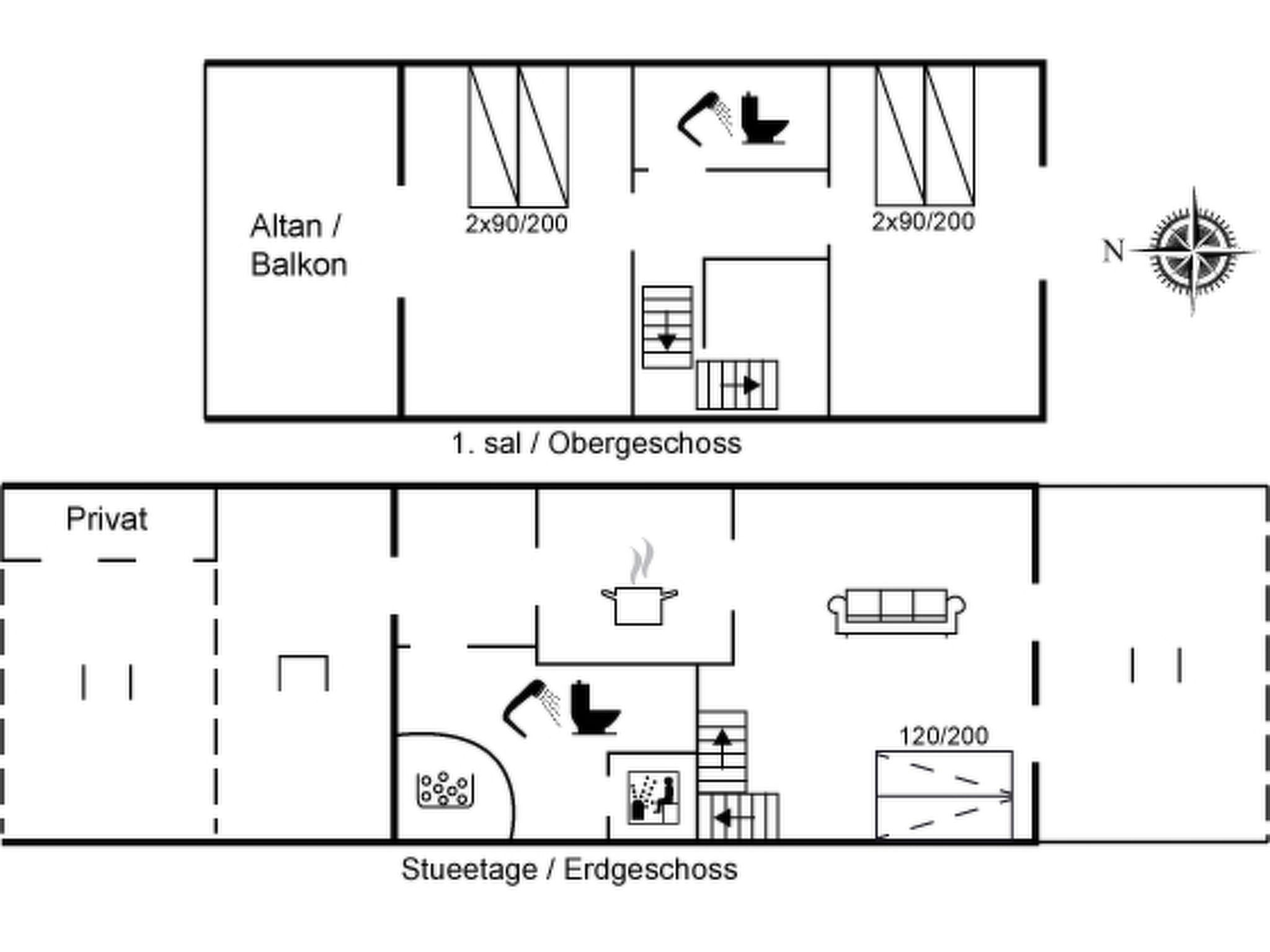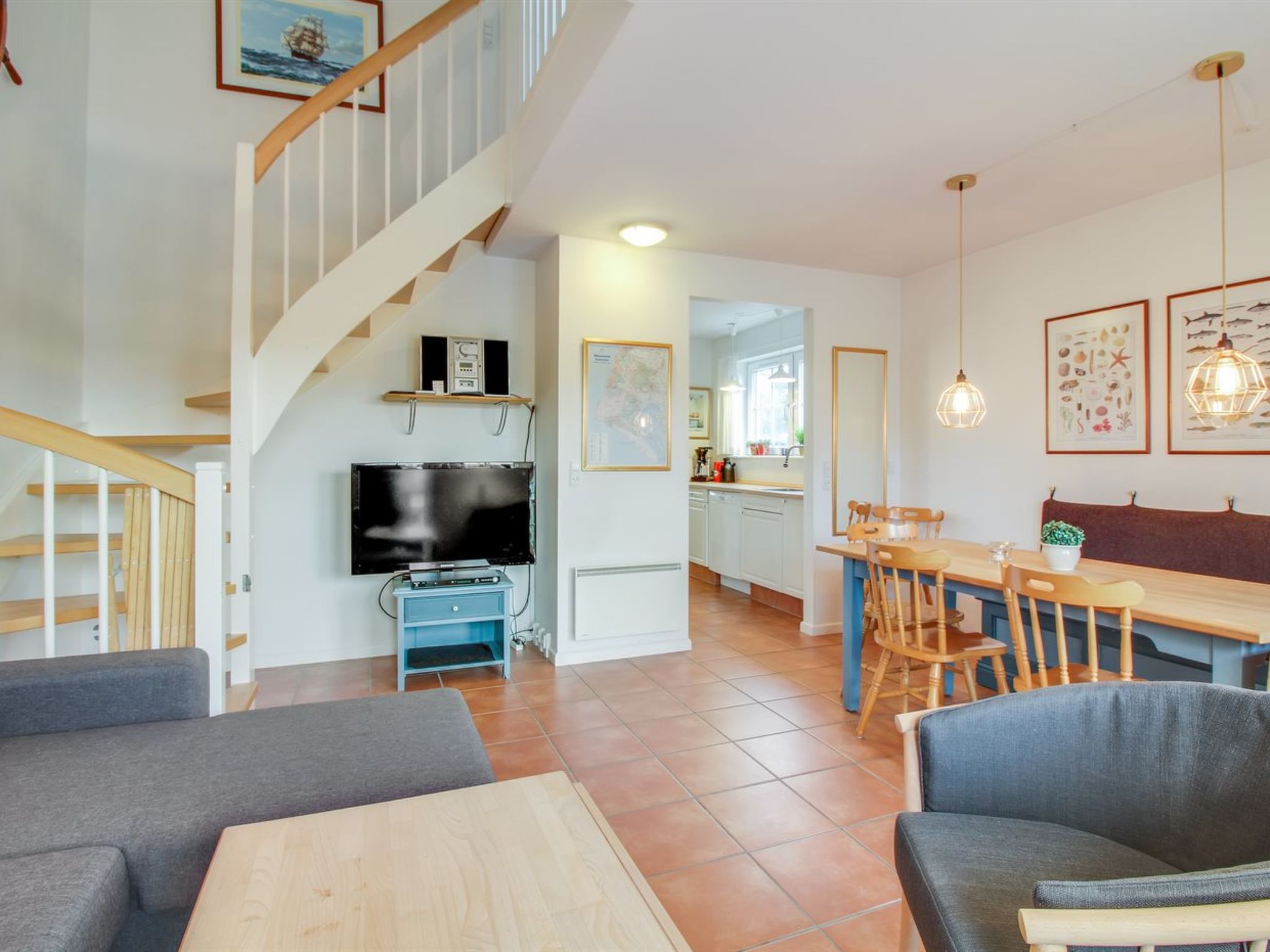 "Guthir" - 1.2km from the sea", 3-room apartment 92 m2. Object suitable for 6 adults. Living room with 1 double sofabed, TV, CD-player and hi-fi system. Kitchen (oven, dishwasher, 4 ceramic glass hob hotplates, microwave, freezer). 2 showers/WC, hydro massage bath, Sauna. Upper floor: 1 room with 1 double bed. 1 room with 1 double bed. Terrace 30 m2. Facilities: washing machine, dryer, children's high chair, baby cot. Internet (WiFi). Parking at the house. Please note: non-smokers only. Maximum 1 pet/ dog allowed. 573-107132