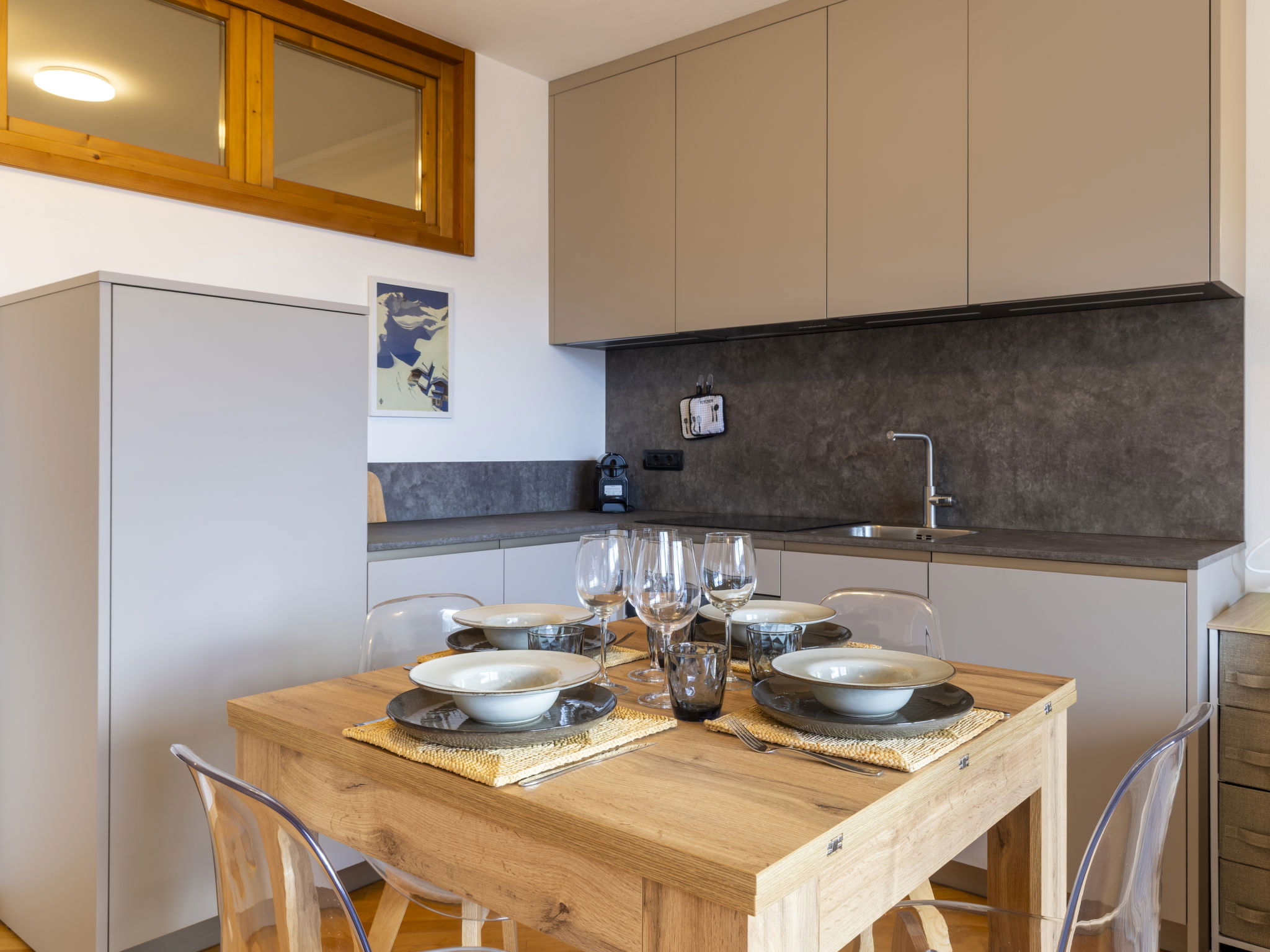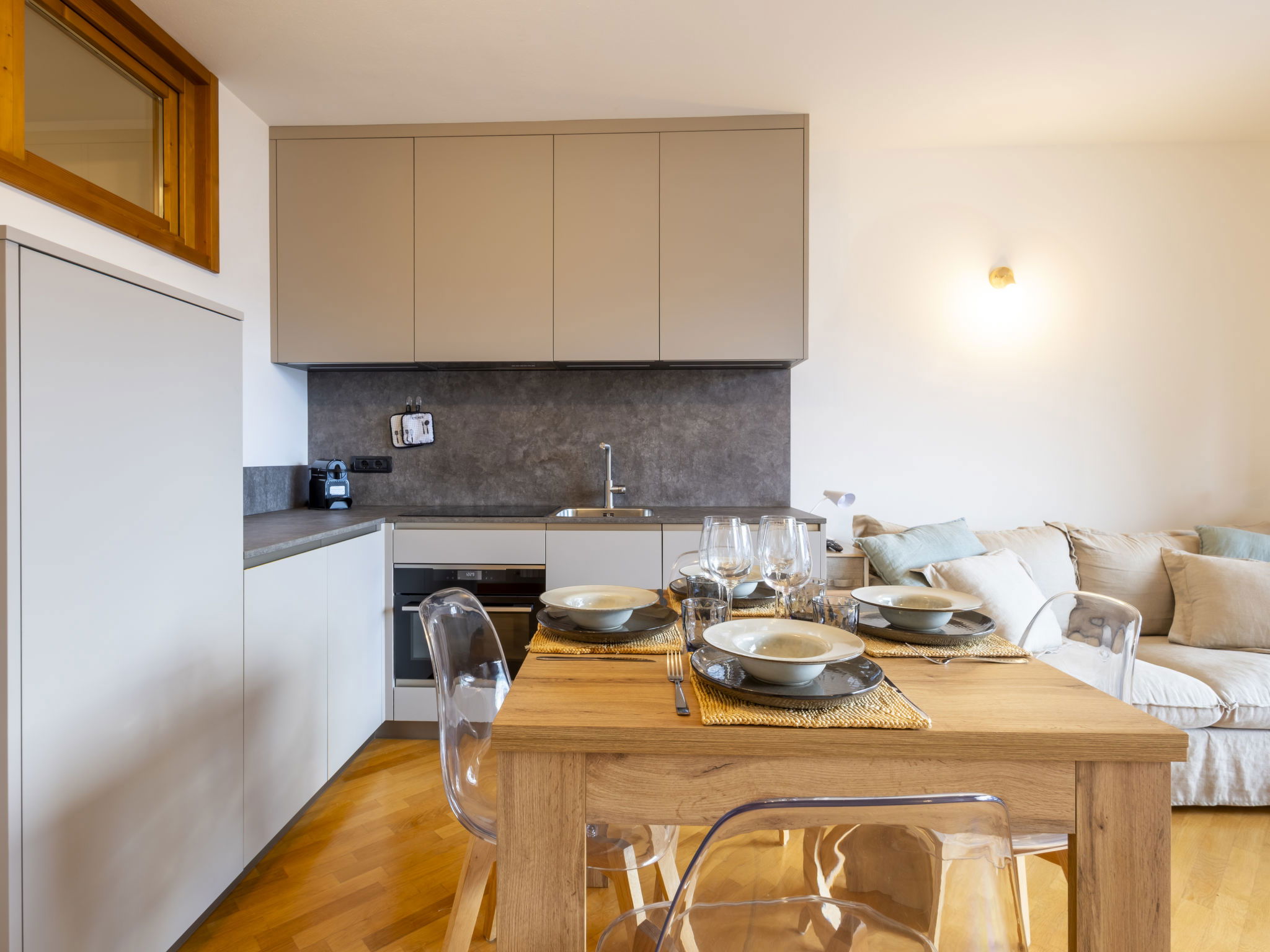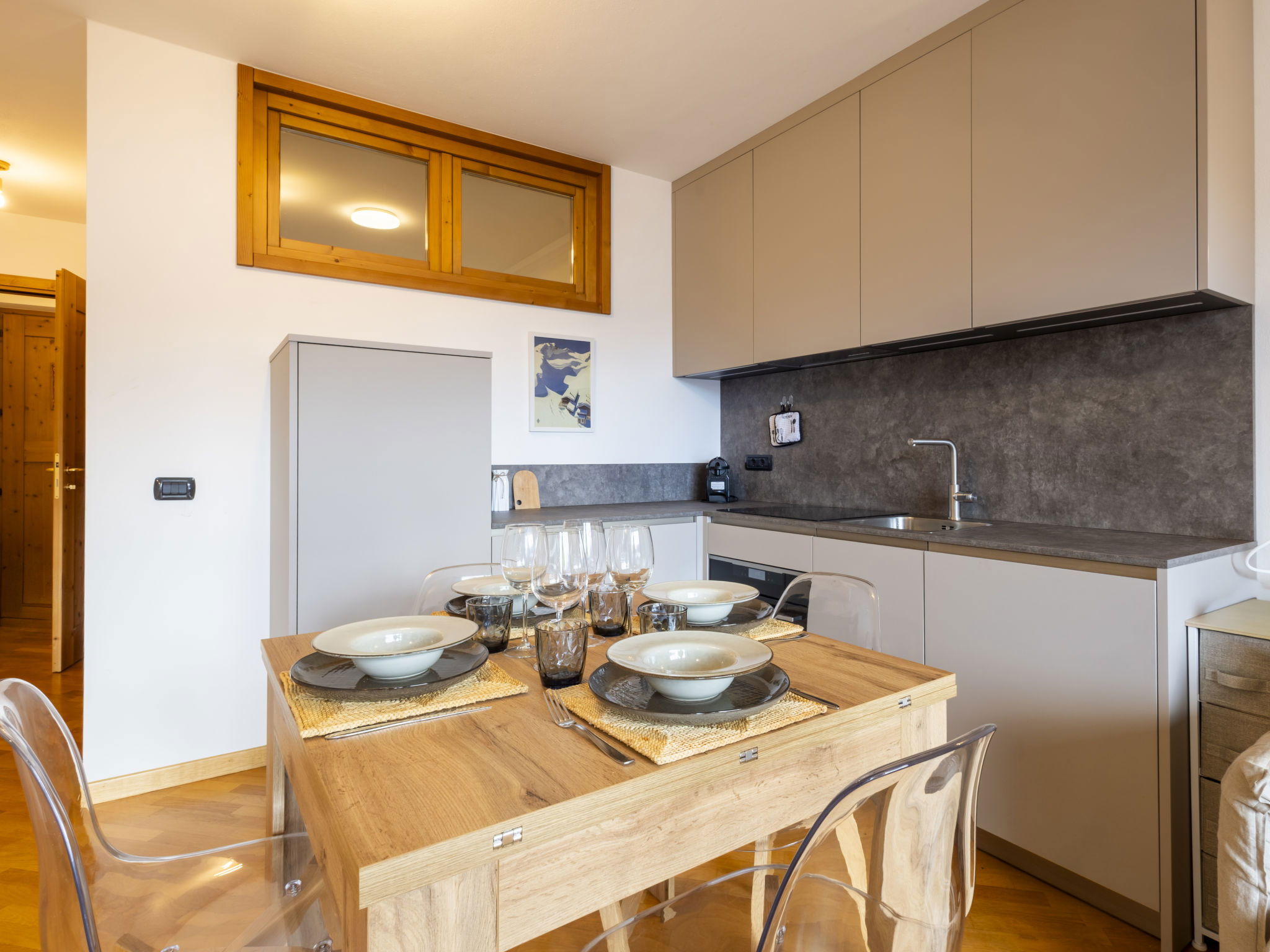 2-room apartment 41 m2, on the ground floor, south facing position. Bright, fully renovated in 2025, comfortable and modern furnishings: living/dining room with 1 double sofabed, dining table and TV. Exit to the garden, to the terrace. 1 room, without window with 1 x 2 bunk beds. Kitchenette). Shower/bidet/WC. Heating. Parquet floors. Terrace partly roofed, small garden. Terrace furniture, deck chairs (2). Very beautiful panoramic view of the mountains, the valley and the forest. Facilities: washing machine, children's high chair, baby cot, hair dryer. Internet (WiFi, free). Please note: suitable for families. Non-smokers only. Maximum 1 pet/ dog allowed. Fire extinguisher.
