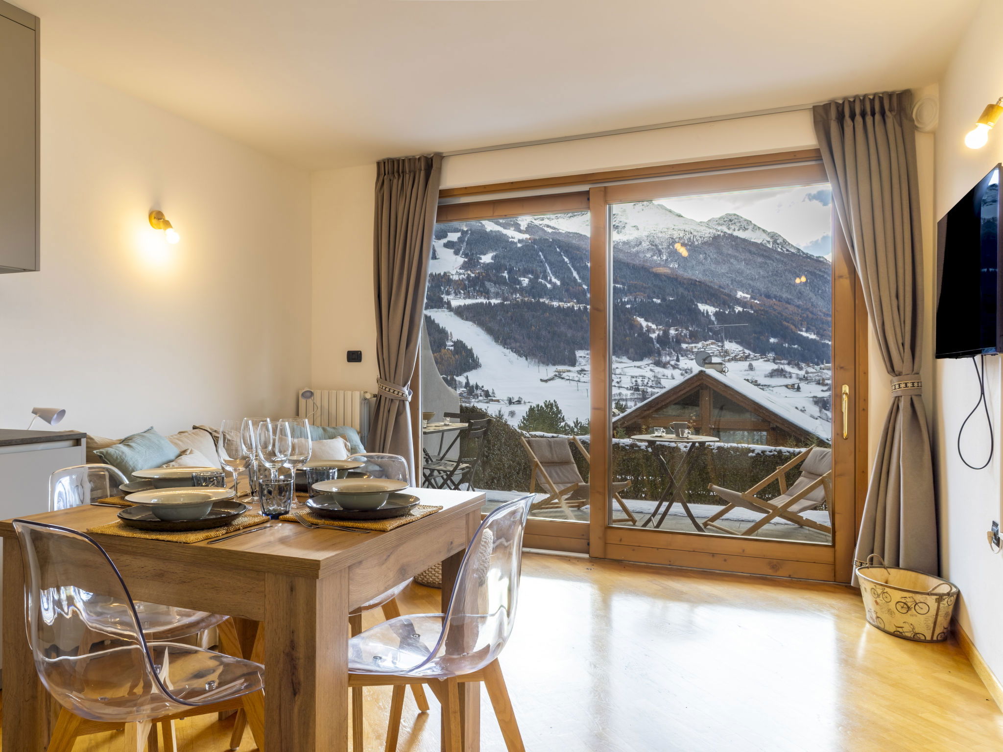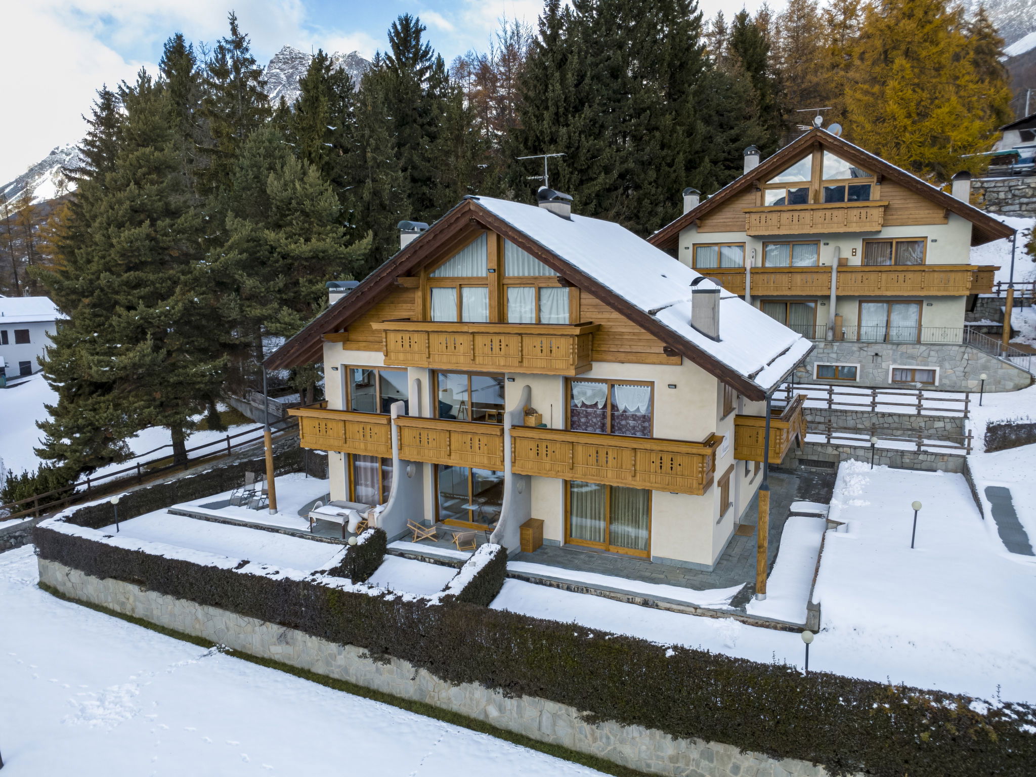 Modern, comfortable chalet "Baita Bucaneve", 1'300 m a.s.l., 2 storeys, detached, surrounded by trees. 800 m from the centre of Bormio, in a quiet, sunny position on a slope, in the residential district, 1.5 km from the skiing area, south facing position. In the house: storage room for bicycles, storage room for skis, central heating system. Stepped path to the house. Single garage, public parking on the road. Grocery 500 m, supermarket 1 km, restaurant, bar 500 m, bus stop 100 m, thermal baths "Terme di Bormio" 900 m. Golf course (18 hole) 1.1 km, chair lift, ski rental, ski school, children's ski school 800 m. Nearby attractions: Parco Nazionale dello Stelvio. Well-known ski regions can easily be reached: Bormio 2000 12 km, Santa Caterina Valfurva 14 km, Livigno 37 km. Hiking paths: Croce della Reit, Val Zebrù, Sentiero Glaciologico Alto, Malga di San Colombano, Val Viola.
