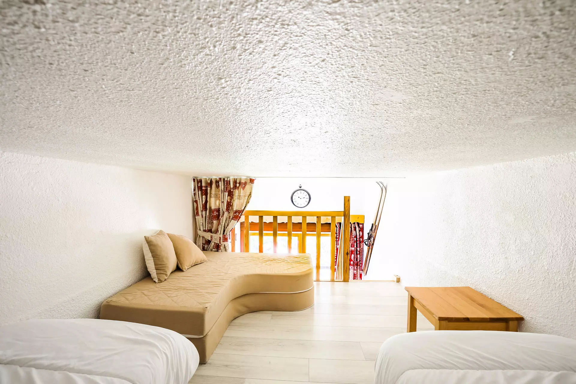 On the mezzanine (height: 1.20m) a single bed.