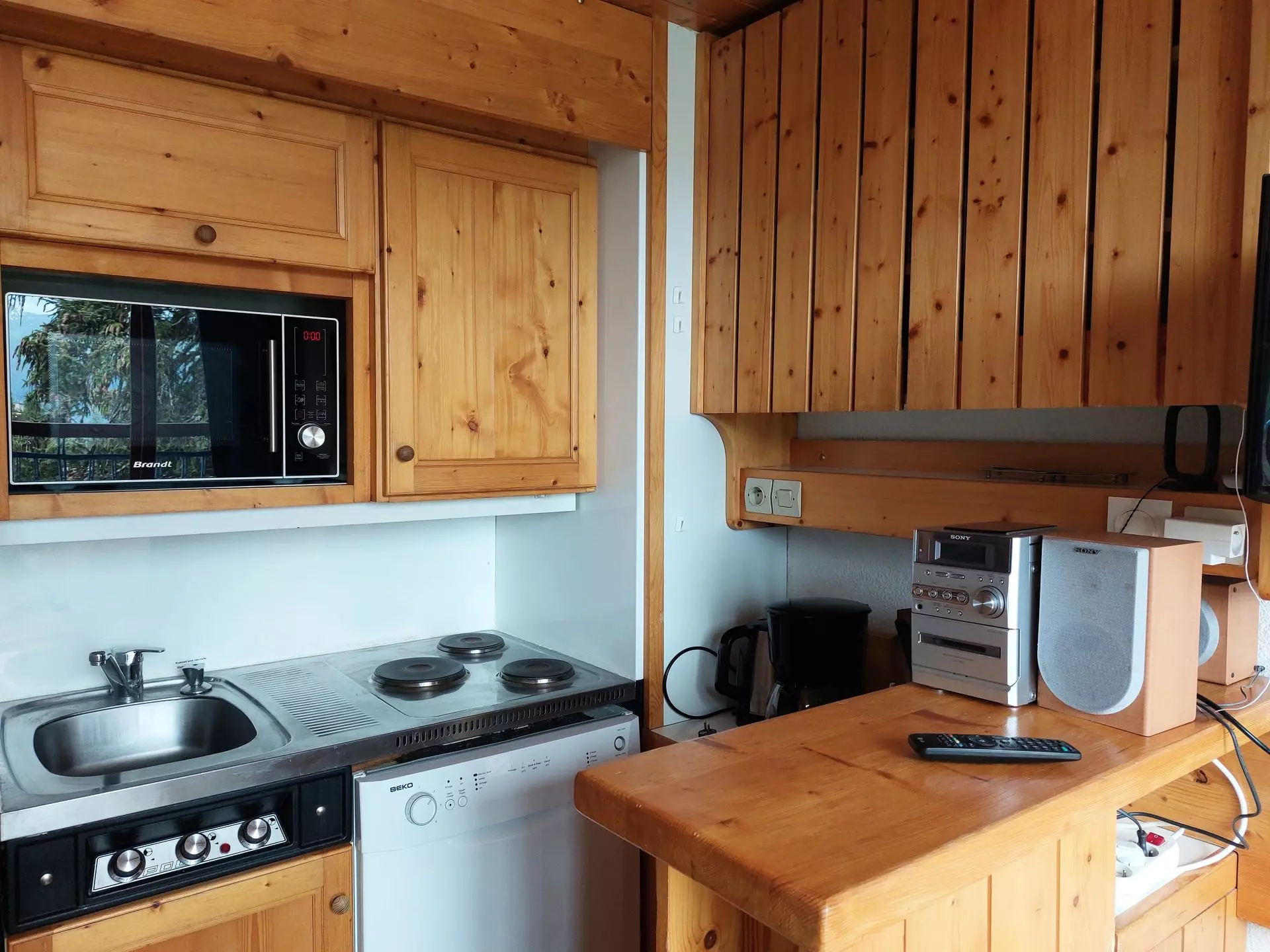 For your skiing holiday or summer vacation in Les Arcs 1800, book this 2-room apartment which benefits from a balcony with a North-East exposure, offering you a view of the resort and Mont-Blanc.
