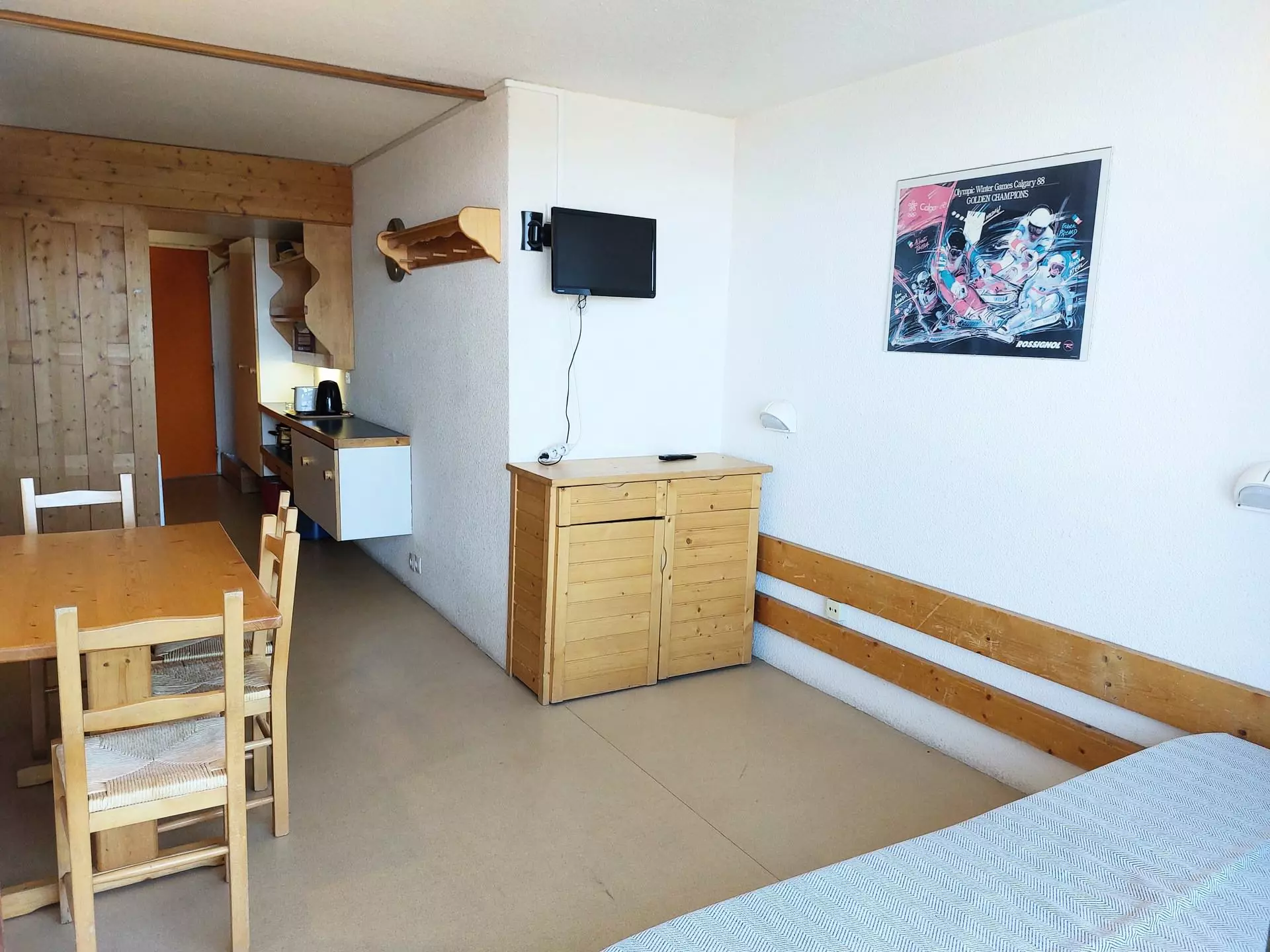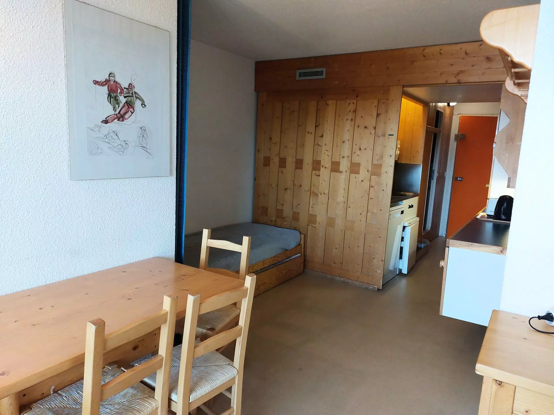 This 25m² studio, which can accommodate up to 4 people, is located on the 8th floor of the Belles-Challes residence, a residence with elevator.