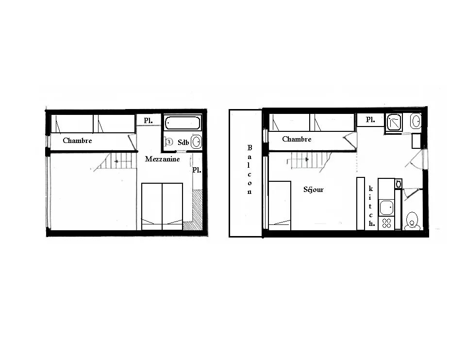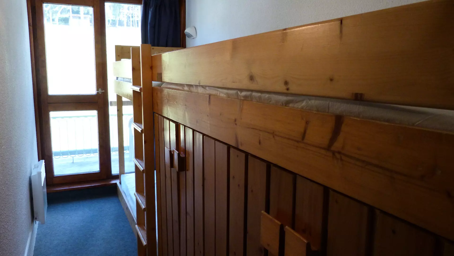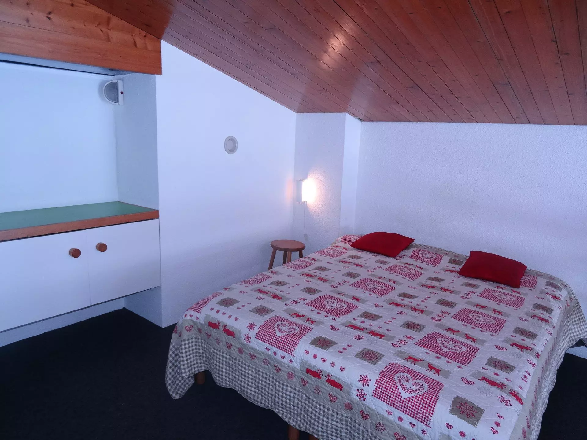 A mezzanine open to the living room with two twin beds (possibility of double sleeping).