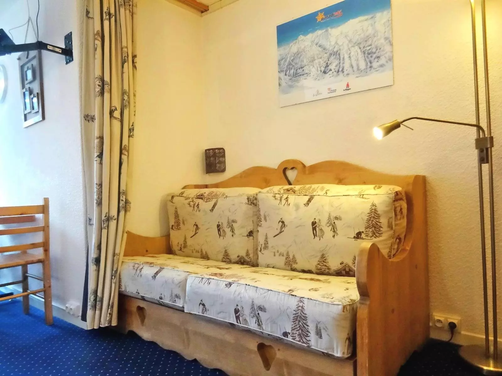 A mountain corner with a double sofa bed.