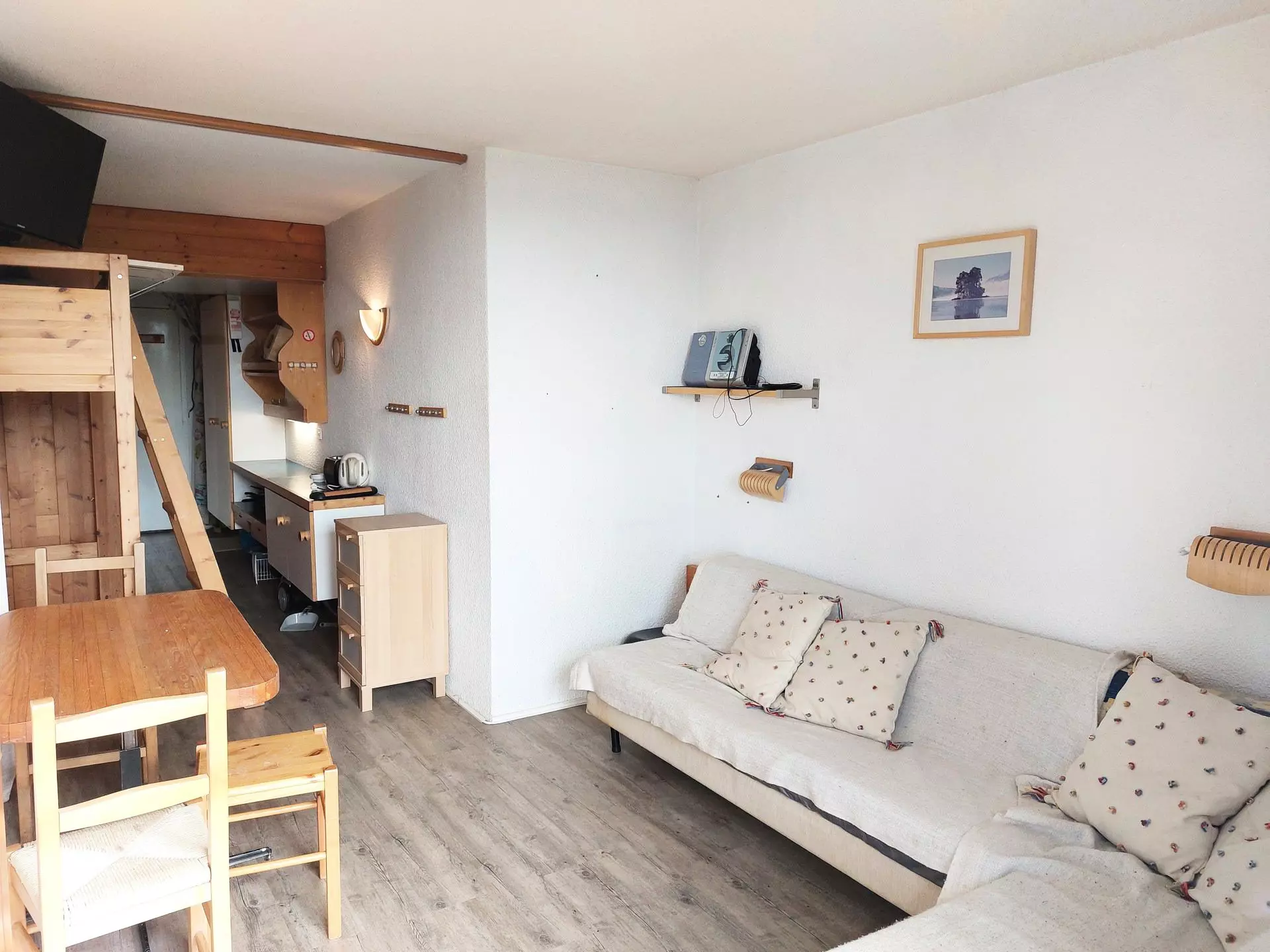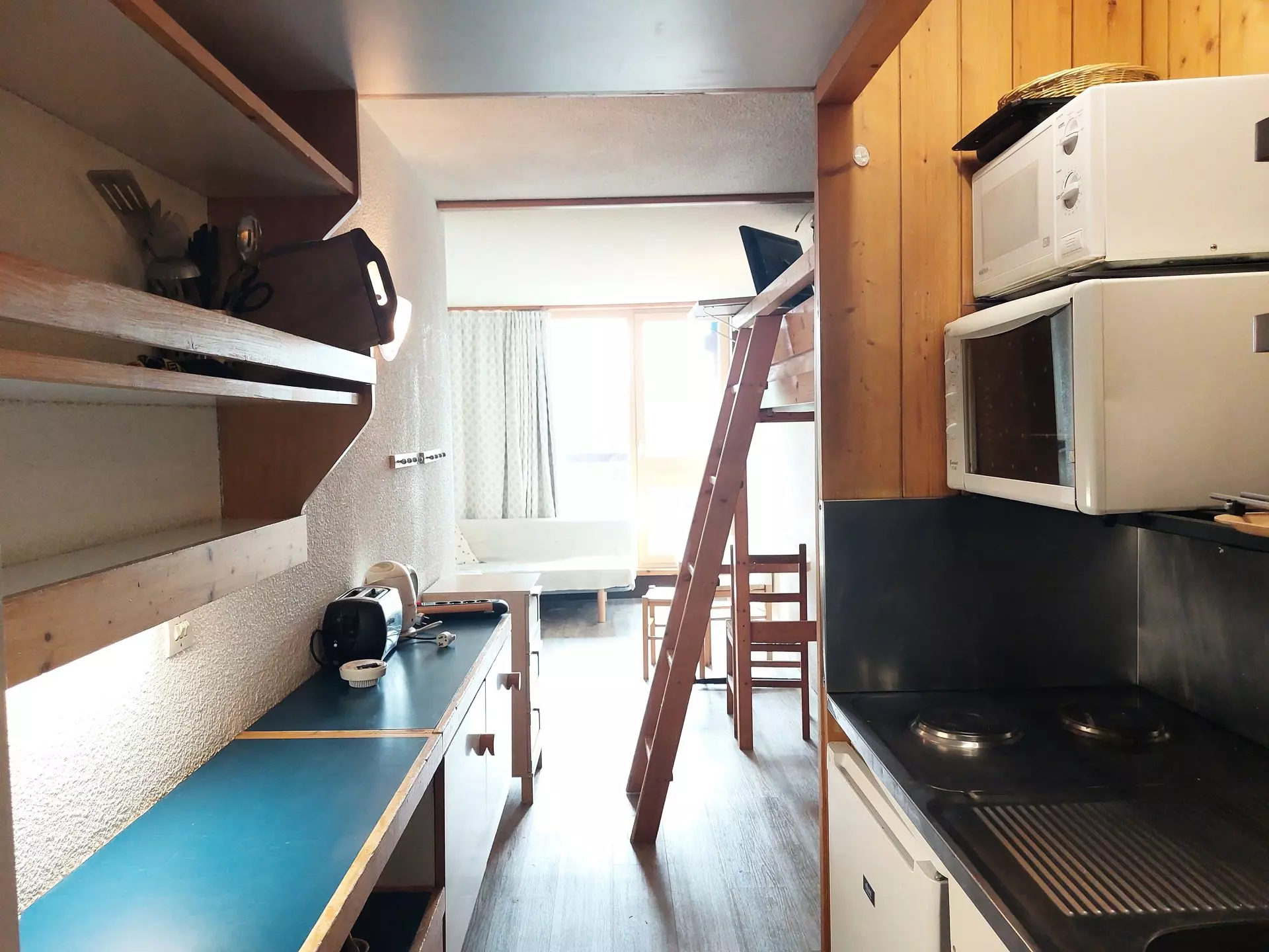 This 25m² studio, which can accommodate up to 4 people, is located on the 8th floor of the Belles-Challes residence, a residence with elevator.