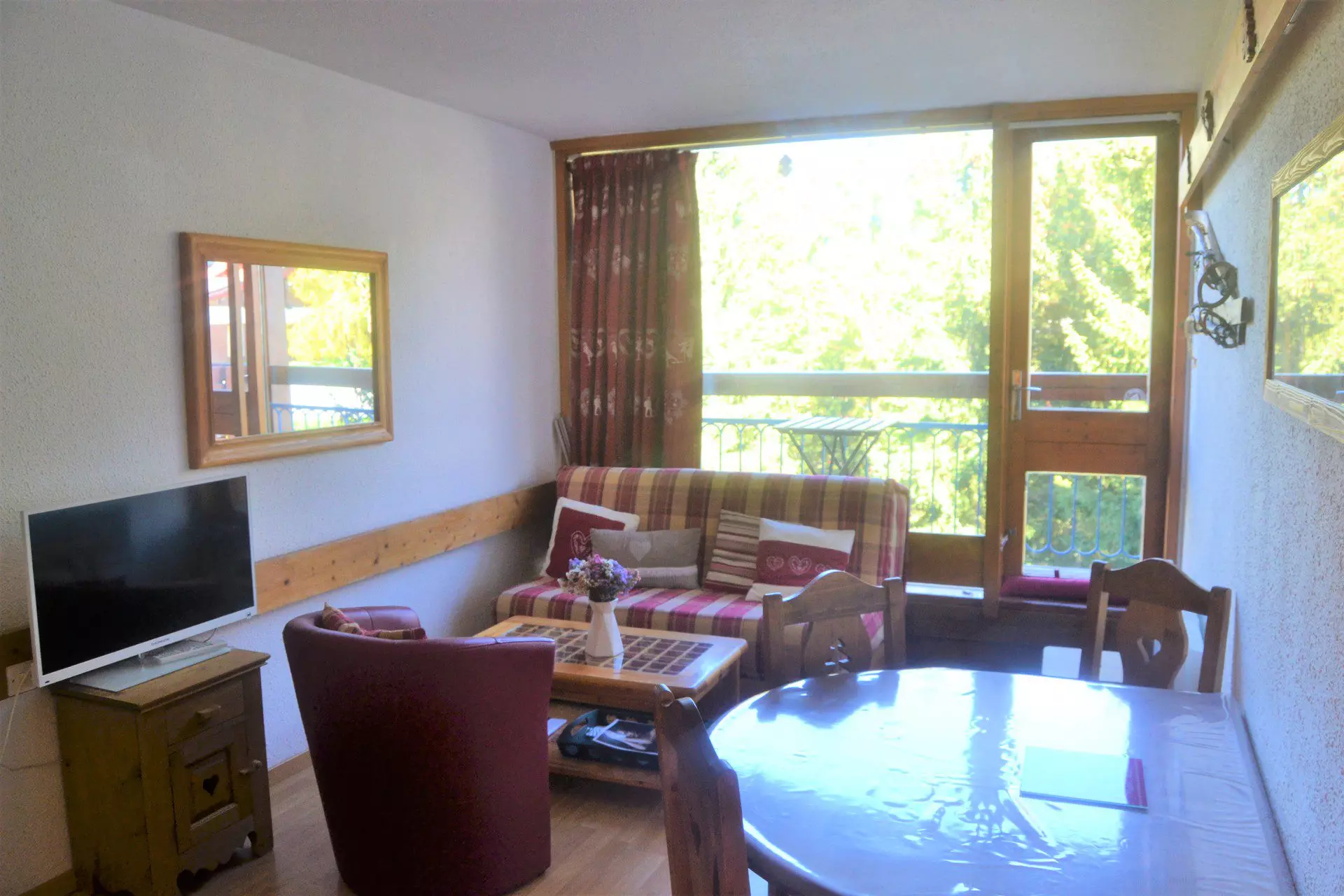 For your ski trip or summer vacation in Les Arcs 1800, book this charming studio which benefits from a northeast-facing balcony with a view of the forest and the mountain.