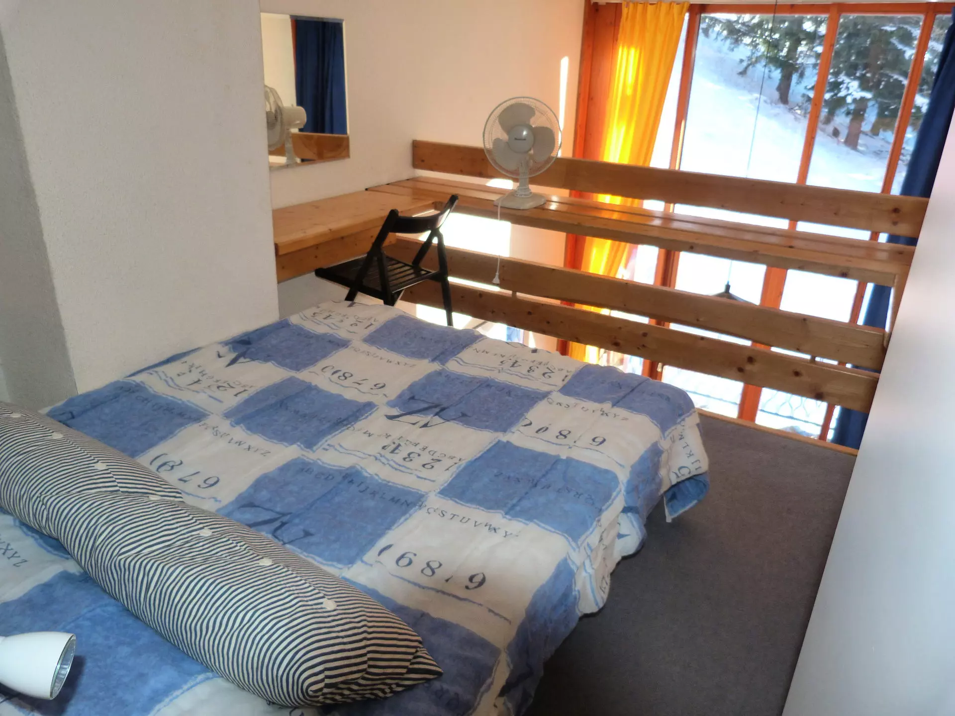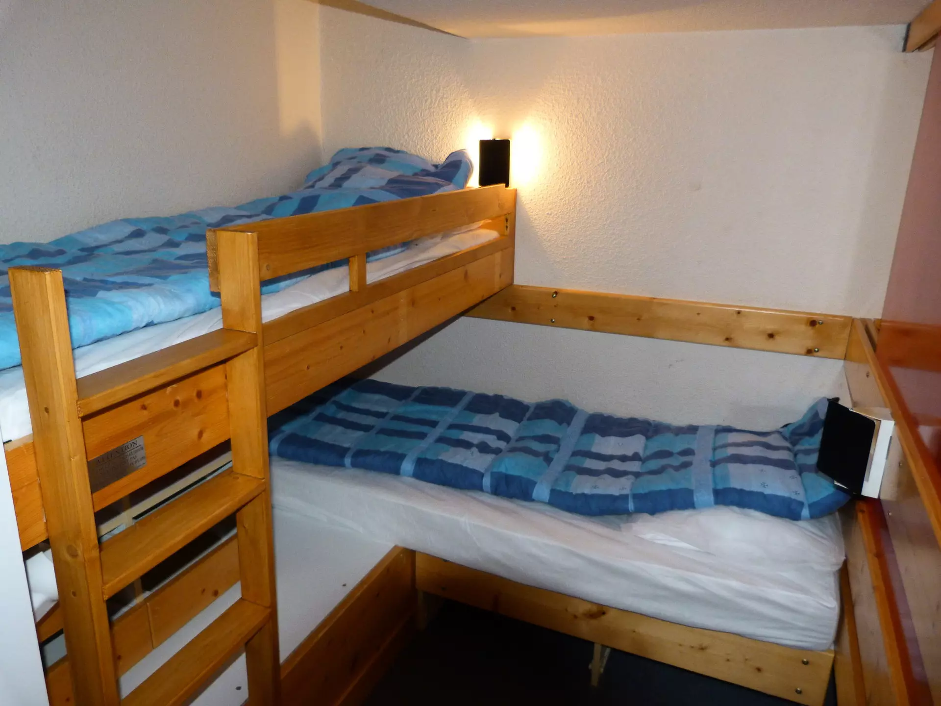 On the mezzanine, a 140cm double bed and a mountain corner with a set of 80cm bunk beds.