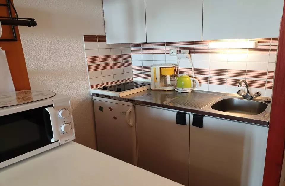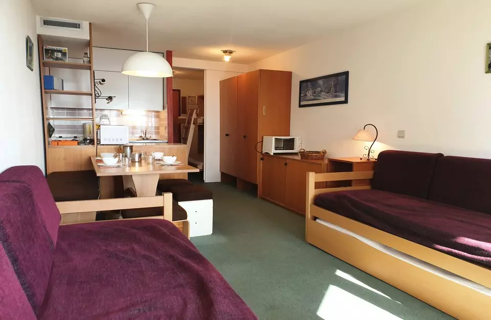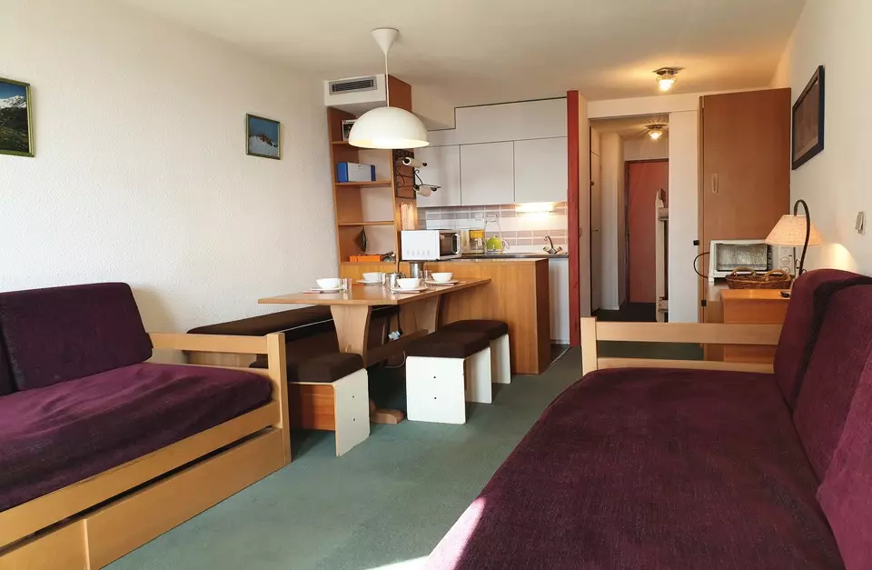 27m² studio for 4 people. It is located on the ground floor of the residence (2nd apartment upon entering) and has a south-facing balcony.