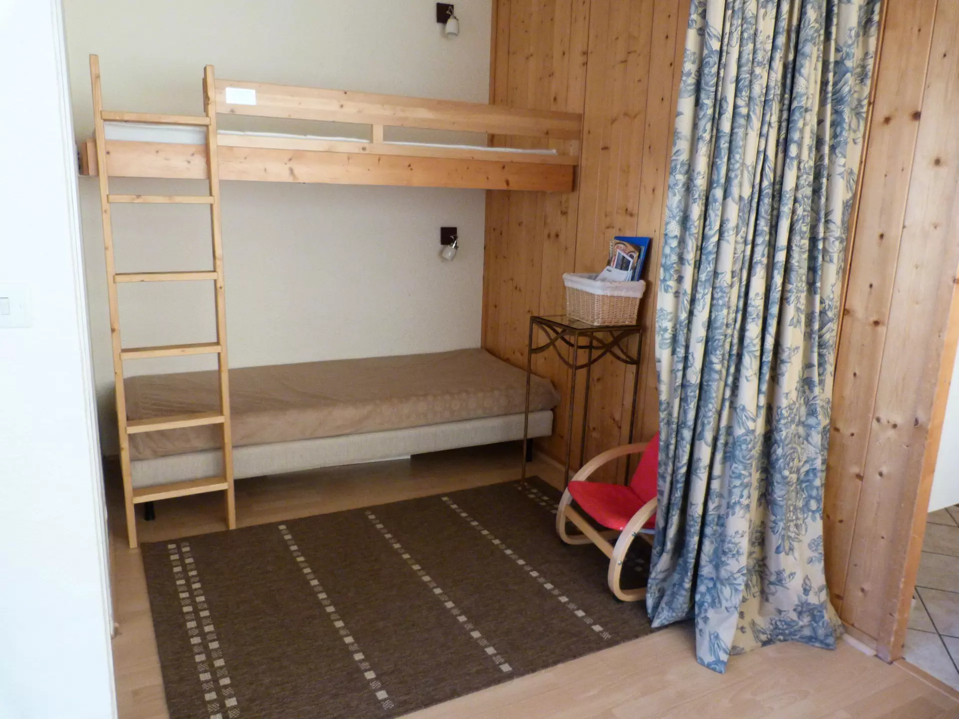 A mountain corner with a set of bunk beds.