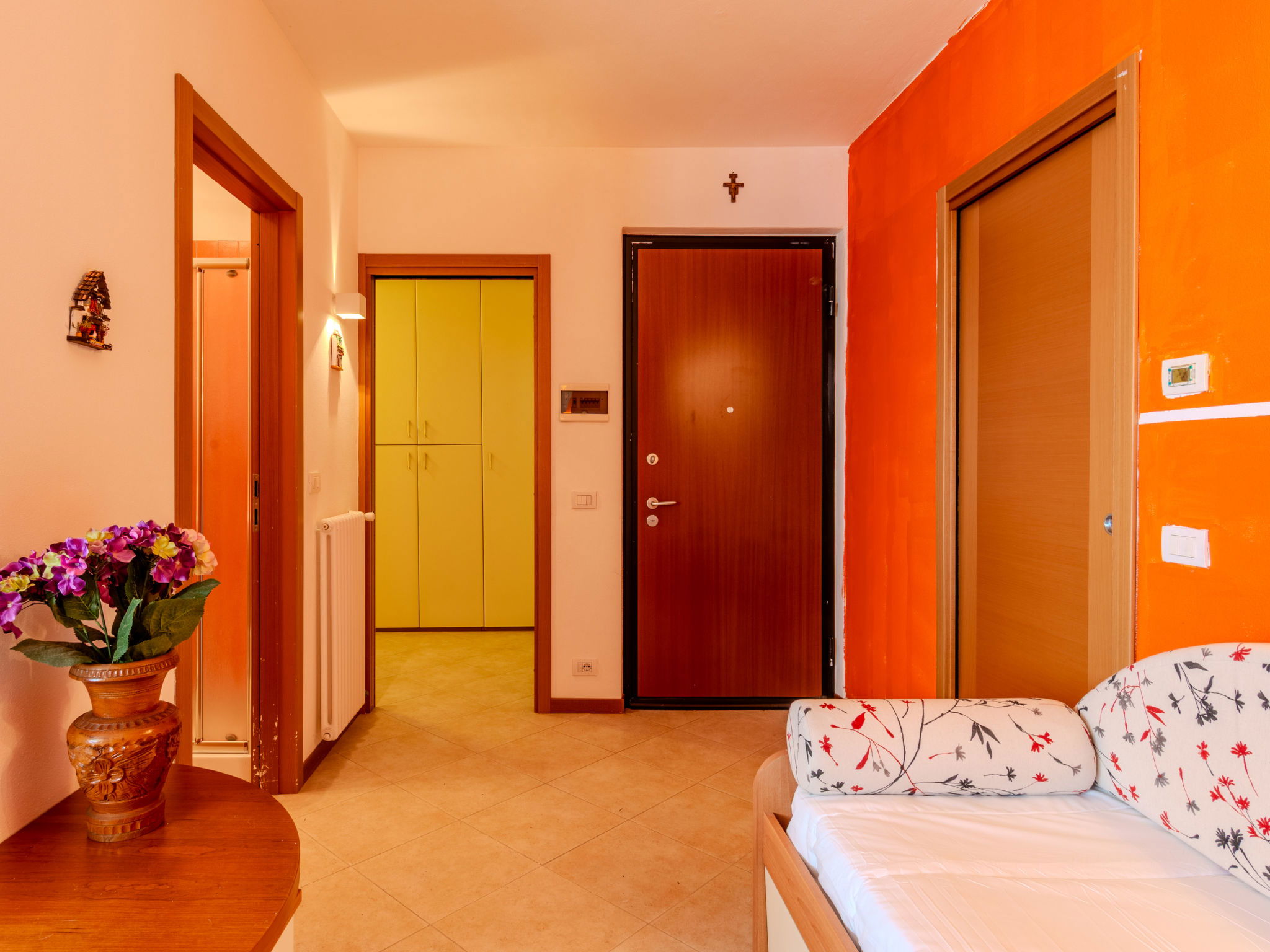 Brenzone 1 km from Pai: Beautiful, cosy apartment block. In the district of Pai, 800 m from the centre, 6 km from the centre of Brenzone, in a sunny, elevated position, 50 m from the lake, 50 m from the beach, south facing position. In the house: lift, storage room for bicycles, storage room for skis. Linen change weekly (suppl. charge extra). Towel change weekly (suppl. charge extra). Room cleaning weekly on request (extra). Parking on the premises. Grocery, supermarket, restaurant, bakery 800 m, pedestrian zone 50 m, bus stop 100 m, pebble beach 50 m, bathing lake "Lago di Garda" 100 m. Surf school, sailing school 500 m, chair lift 15 km, gondola lift 15 km. Nearby attractions: Riva del Garda 35 km, Castello di Malcesine 14 km, Parco Grotta Cascata Varone 36 km, Gardaland - Caneva Word - Movieland 20 km. Well-known lakes can easily be reached: Lago di Garda 100 m. Please note: motorway 49 km from the property. Airfield 48 km from the property. Neighbourhood highly sensitive to noise. Quietness and good behaviour expected.