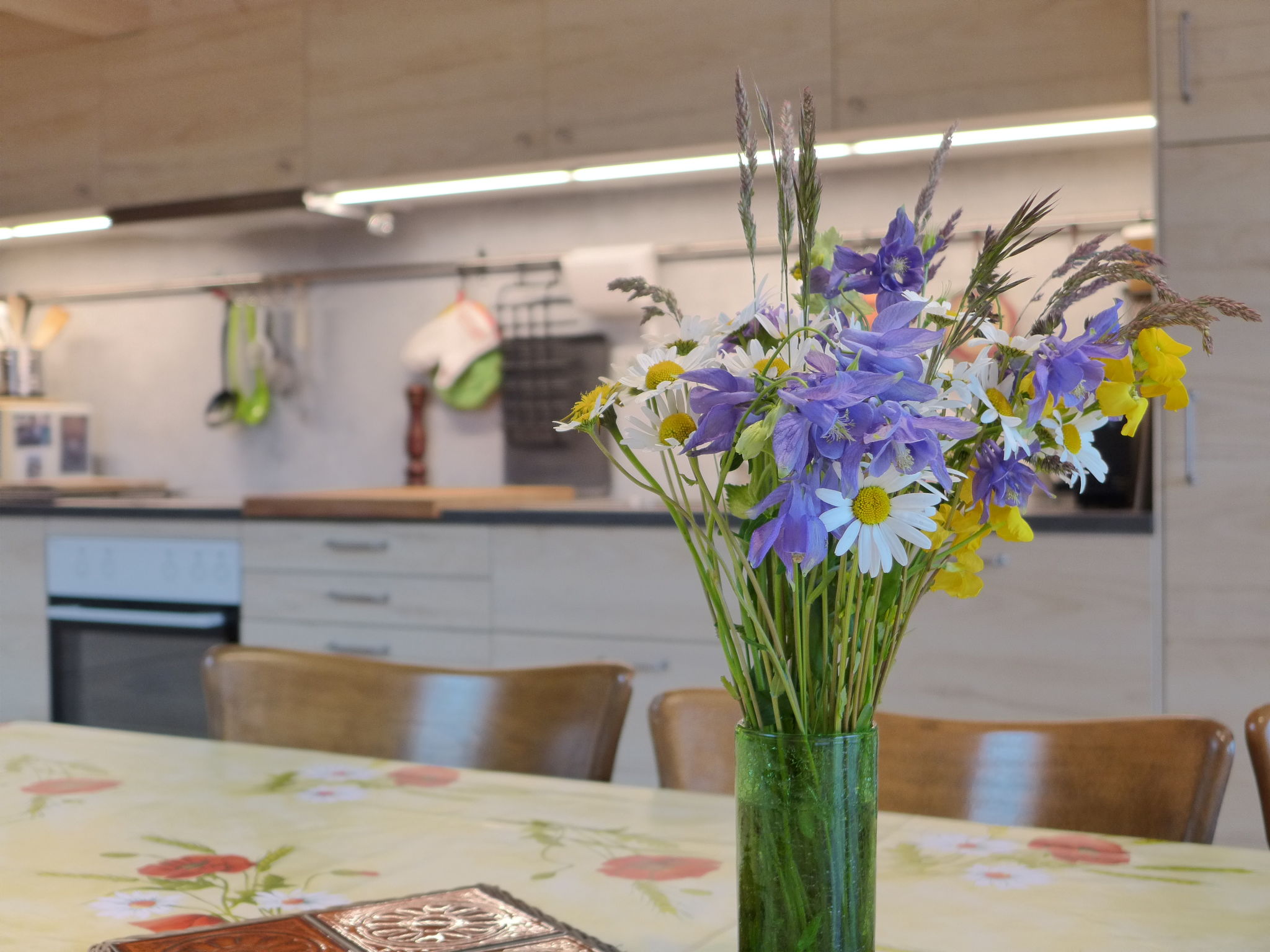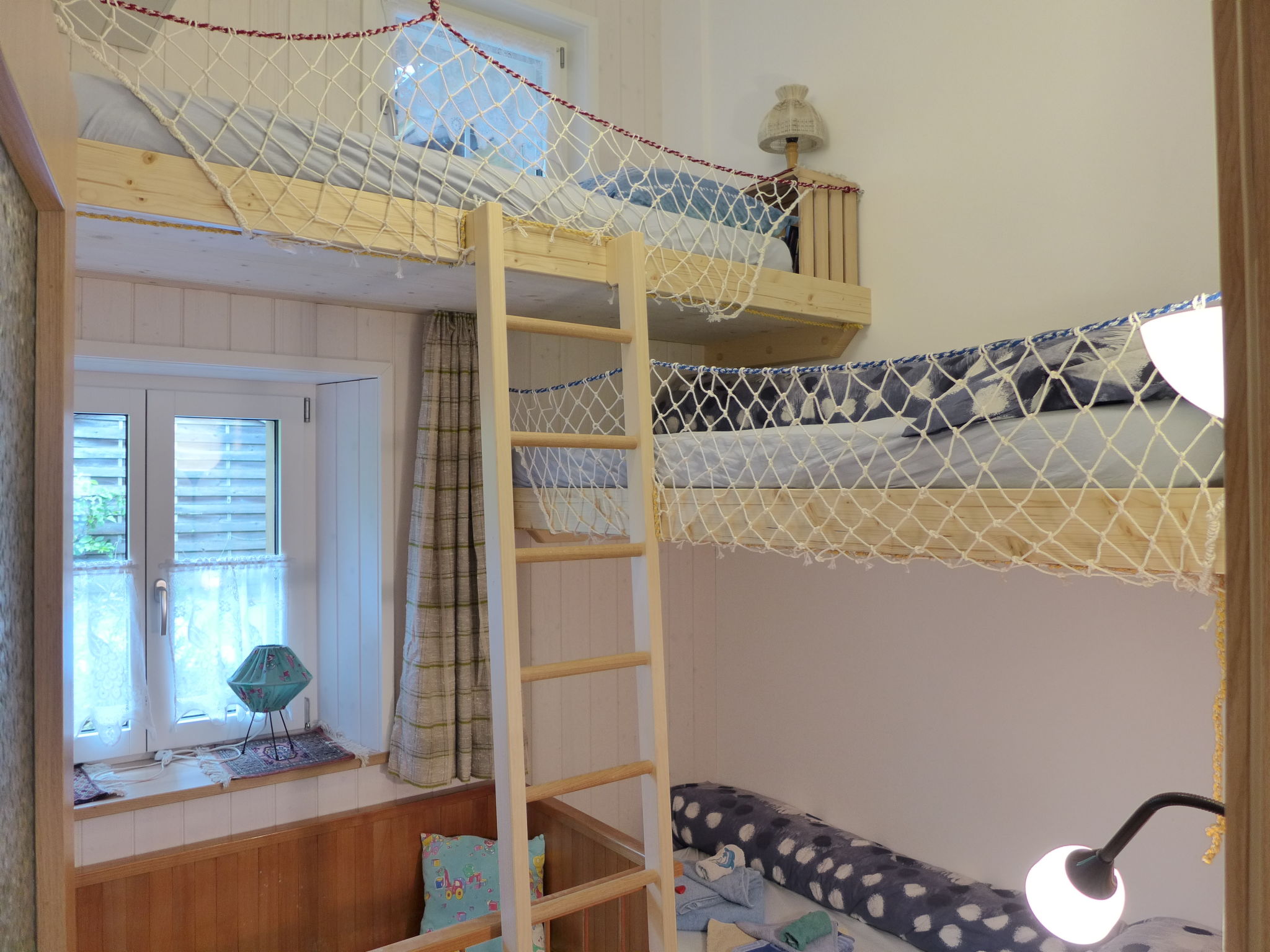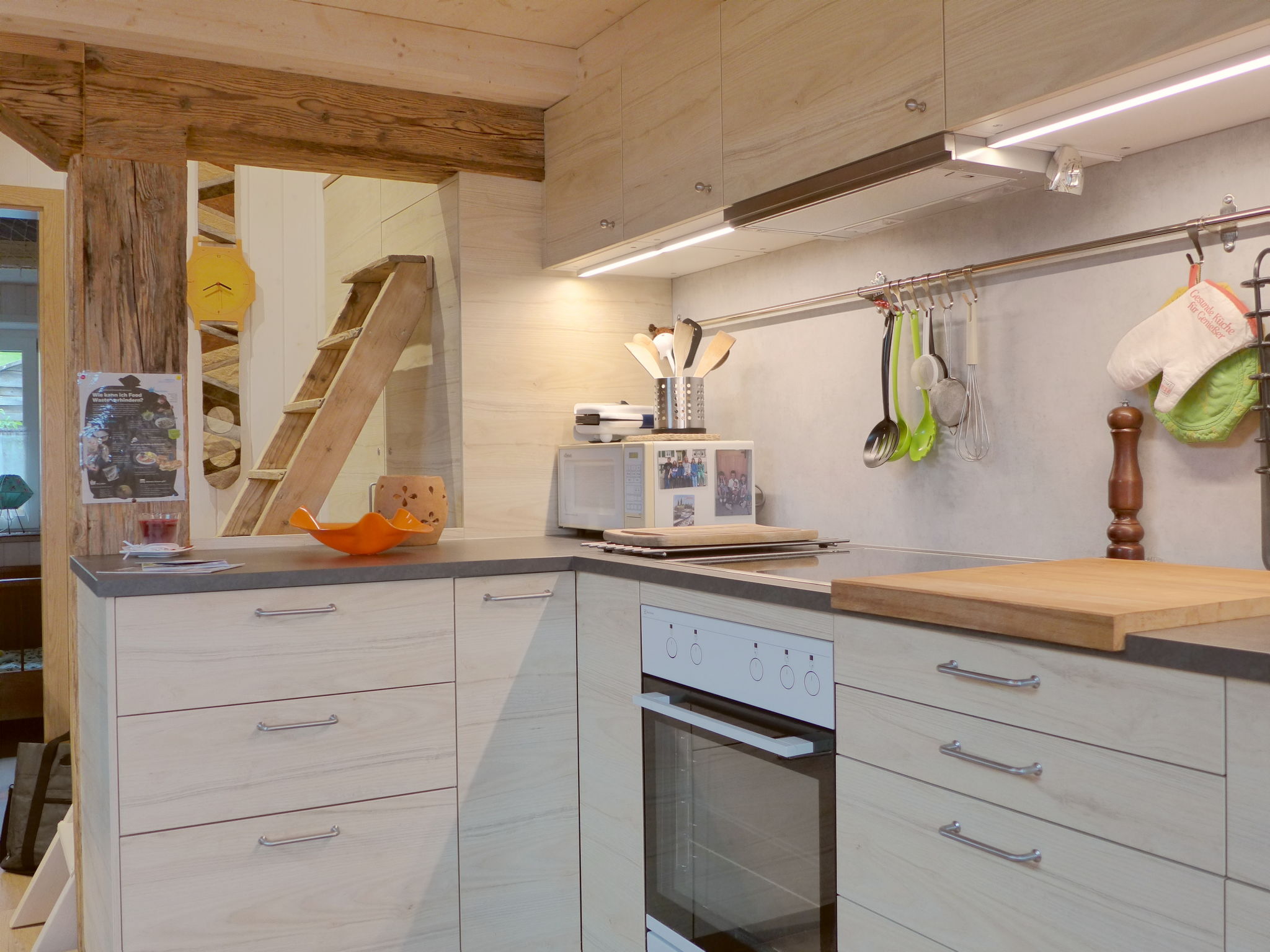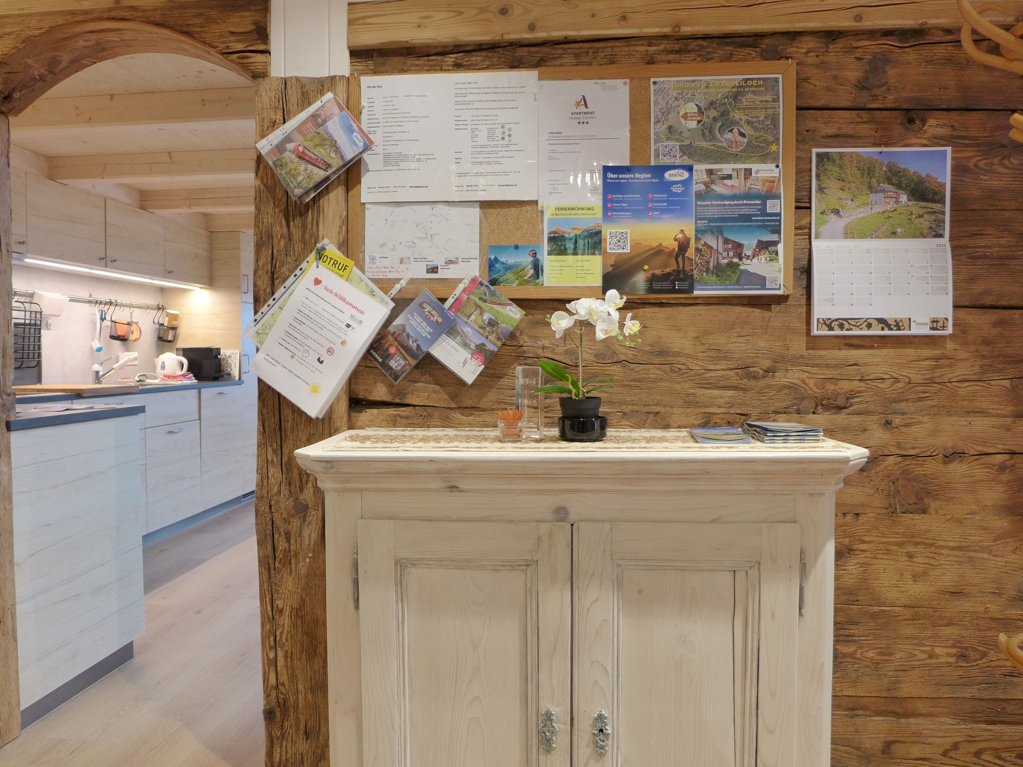 "Beim Thor Klein", 2-room apartment 40 m2, on the upper floor. Spacious and bright, simple and cosy furnishings: open large living/sleeping room with 2 beds (90 cm, length 200 cm), dining table, flat screen, radio, hi-fi system and DVD. 1 room with 1 x 2 bunk beds (90 cm, length 200 cm). Open kitchen (oven, dishwasher, 3 ceramic glass hob hotplates, toaster, kettle, microwave, electric coffee machine, Capsules for coffee machine (Delizio) extra, raclette grill, fondue Set (cheese)). Shower/WC. Small terrace. Balcony furniture. Beautiful view of the mountains and the countryside. Facilities: baby cot for up to 2 year olds (extra), hair dryer. Internet (WiFi, free). Parking (1 car). Please note: non-smokers only. Maximum 1 pet/ dog allowed.