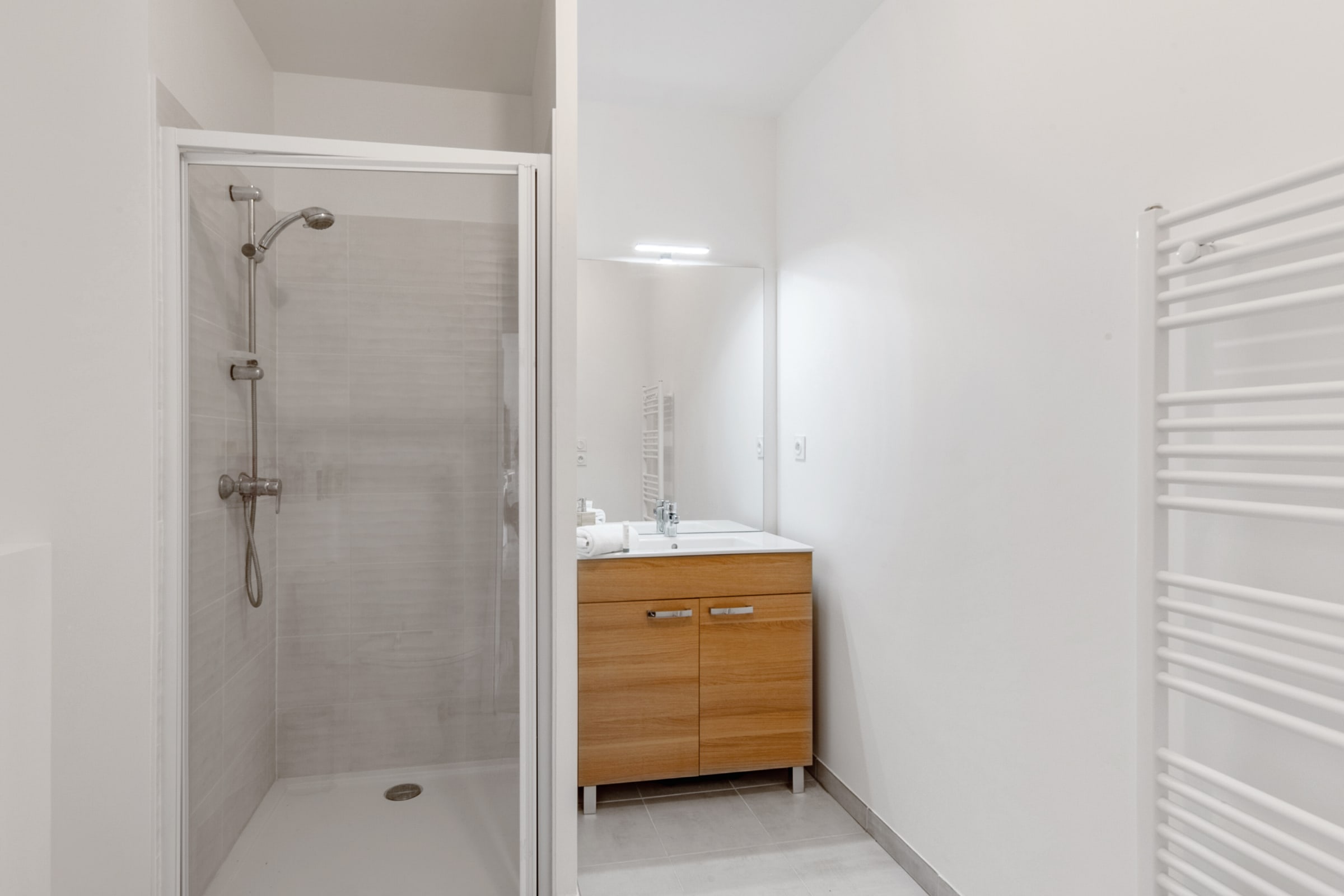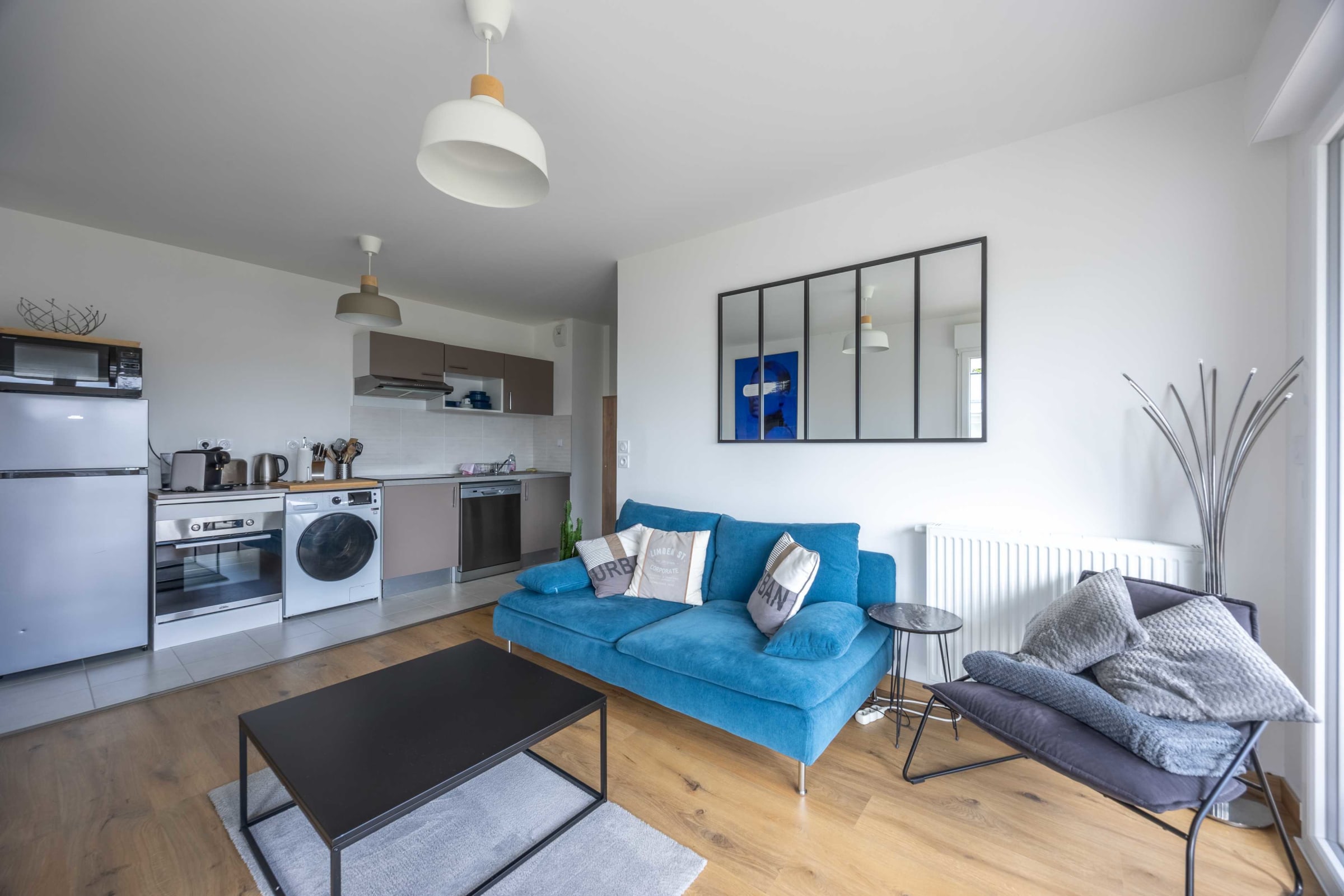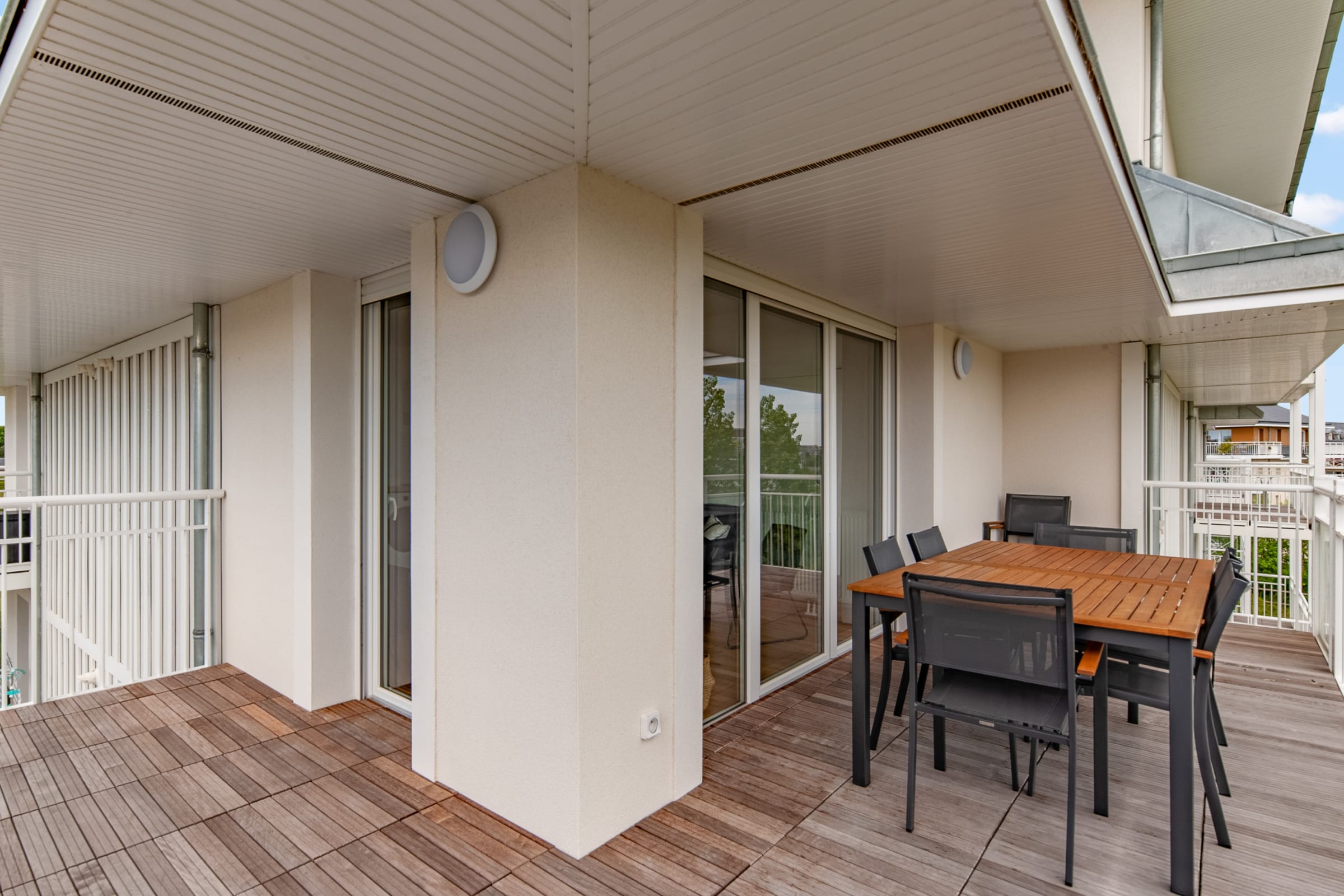 This quiet and new flat, with its tasteful decoration, is located on the 3rd floor (with lift) and comprises a beautiful living space of 50 m² and includes :