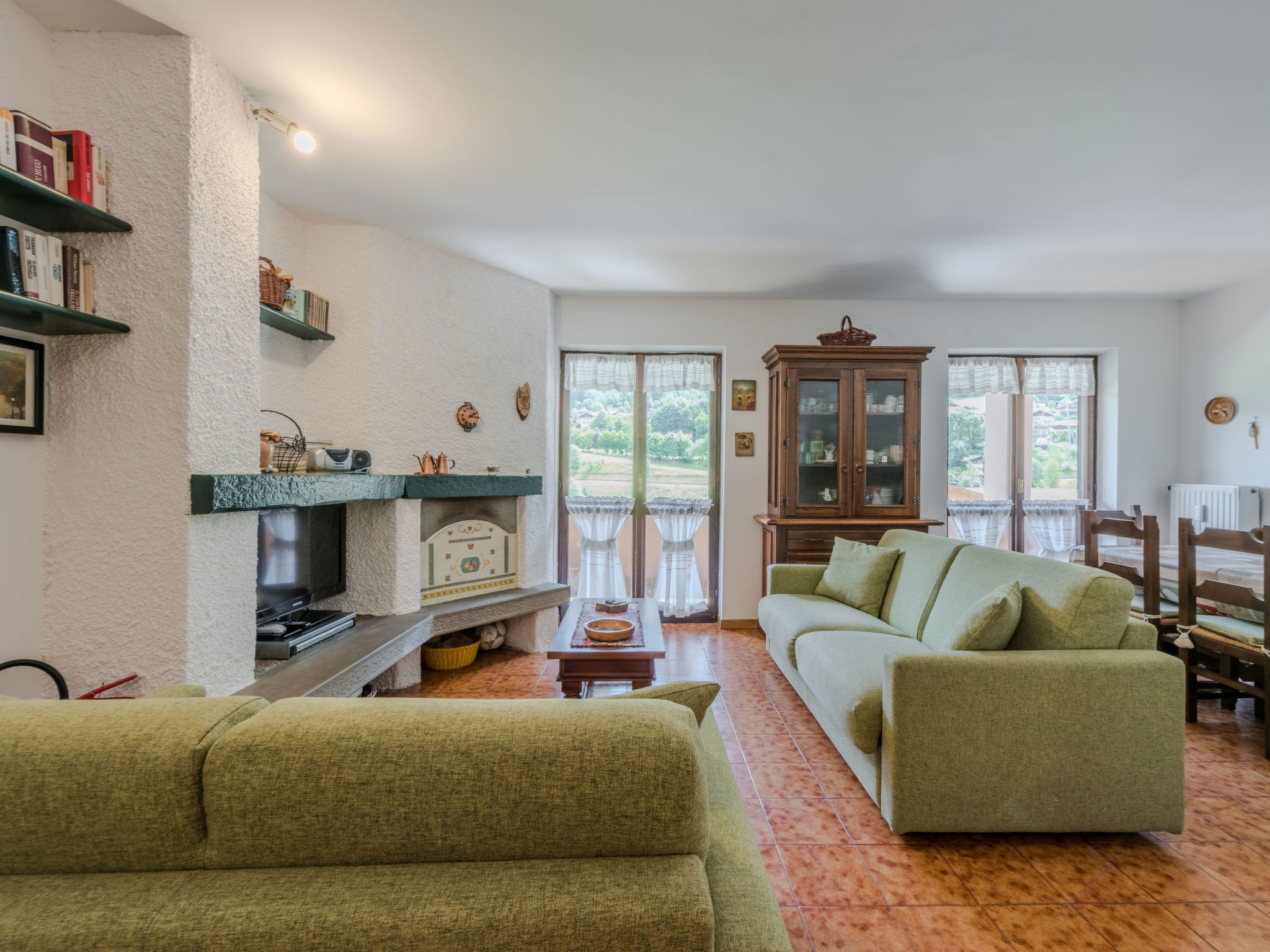 "La Casa dei Frassini", 3-room apartment 70 m2 on 1st floor. Partly renovated in 2024, practical and comfortable furnishings: living/dining room with open-hearth fireplace (only for decoration), dining table and TV. Exit to the balcony. 1 double bedroom. 1 room with 2 x 2 bunk beds (80 cm, length 190 cm). Kitchen (oven, 4 induction hot plates). Shower/bidet/WC. Heating. Heating available only from 01.10. to 30.04. Partial panoramic view of the mountains and the countryside. Facilities: washing machine, baby cot for up to 2 year olds (extra), hair dryer. Internet (WiFi, free). Parking (2 cars) at the house. Please note: maximum 1 pet/ dog allowed. Fire extinguisher, no lift. IT022184C2GEVI83F5