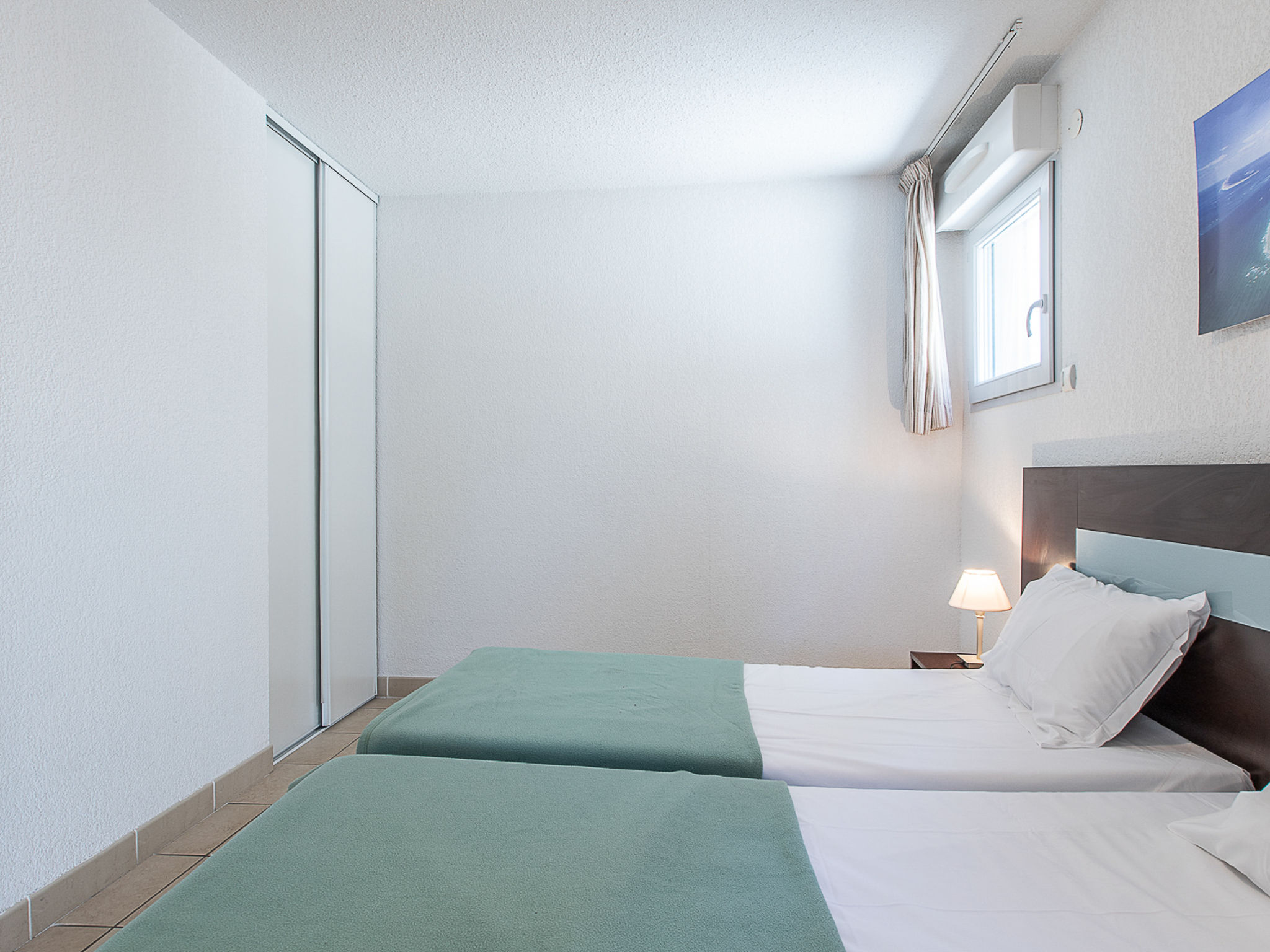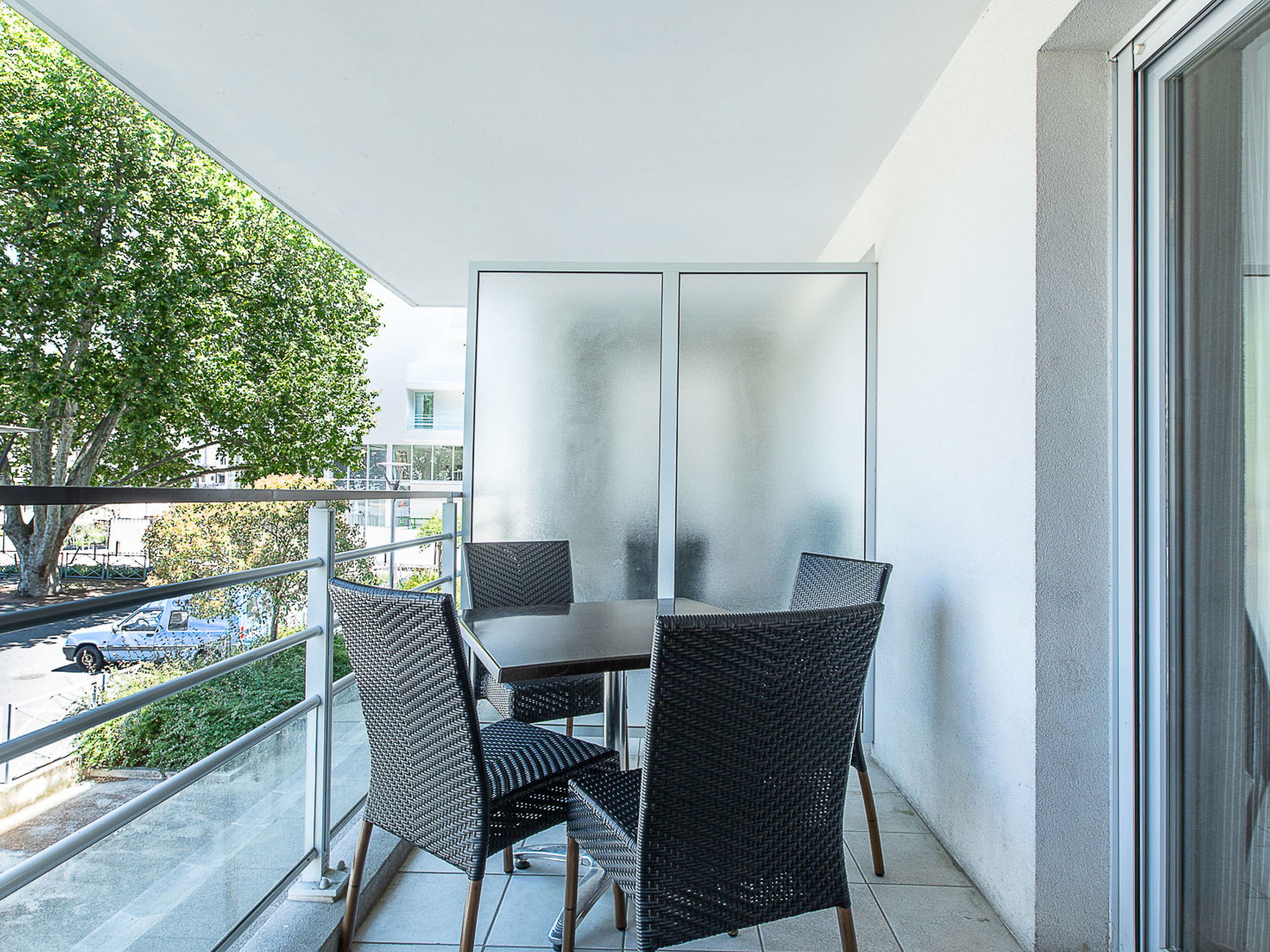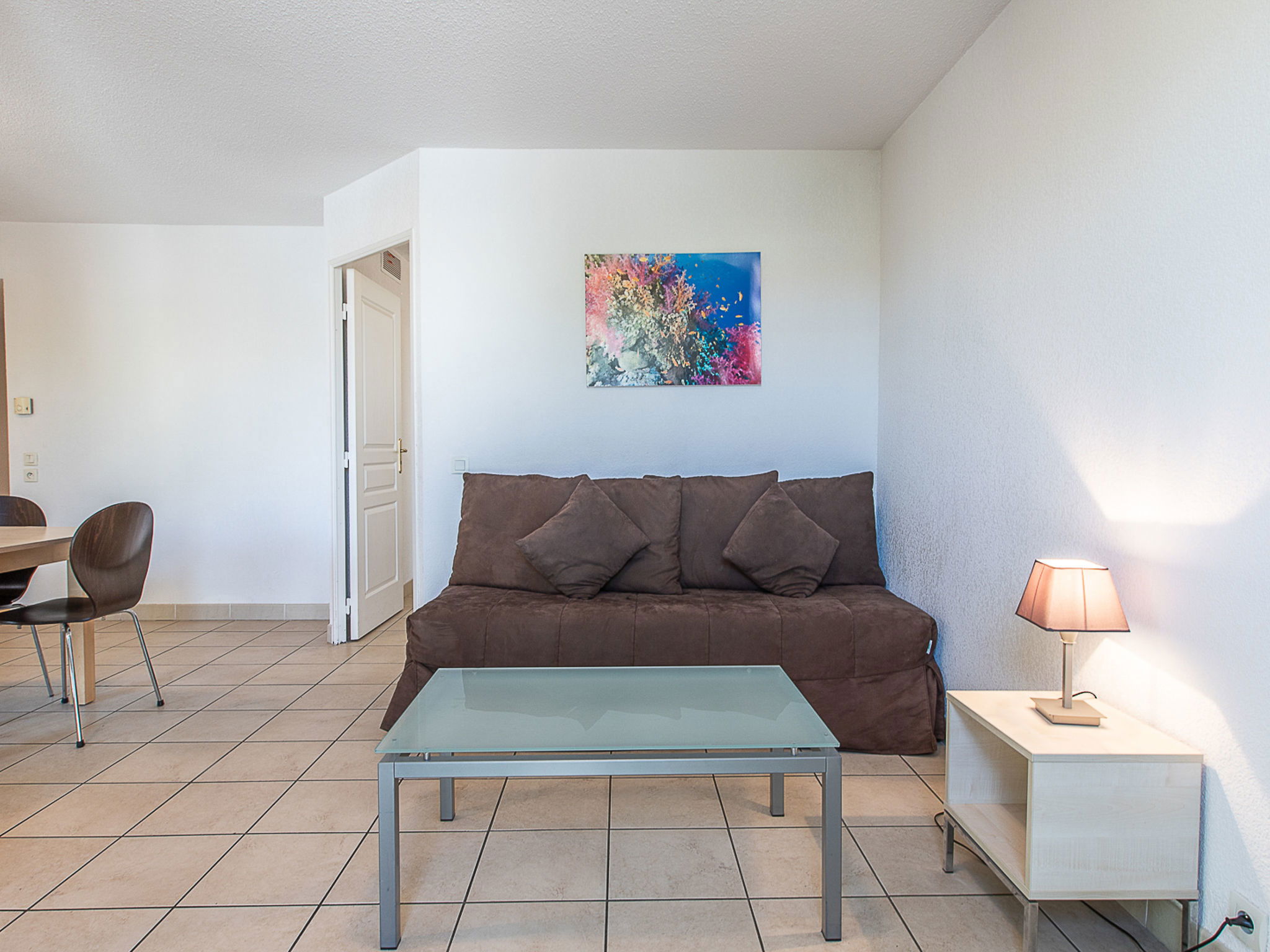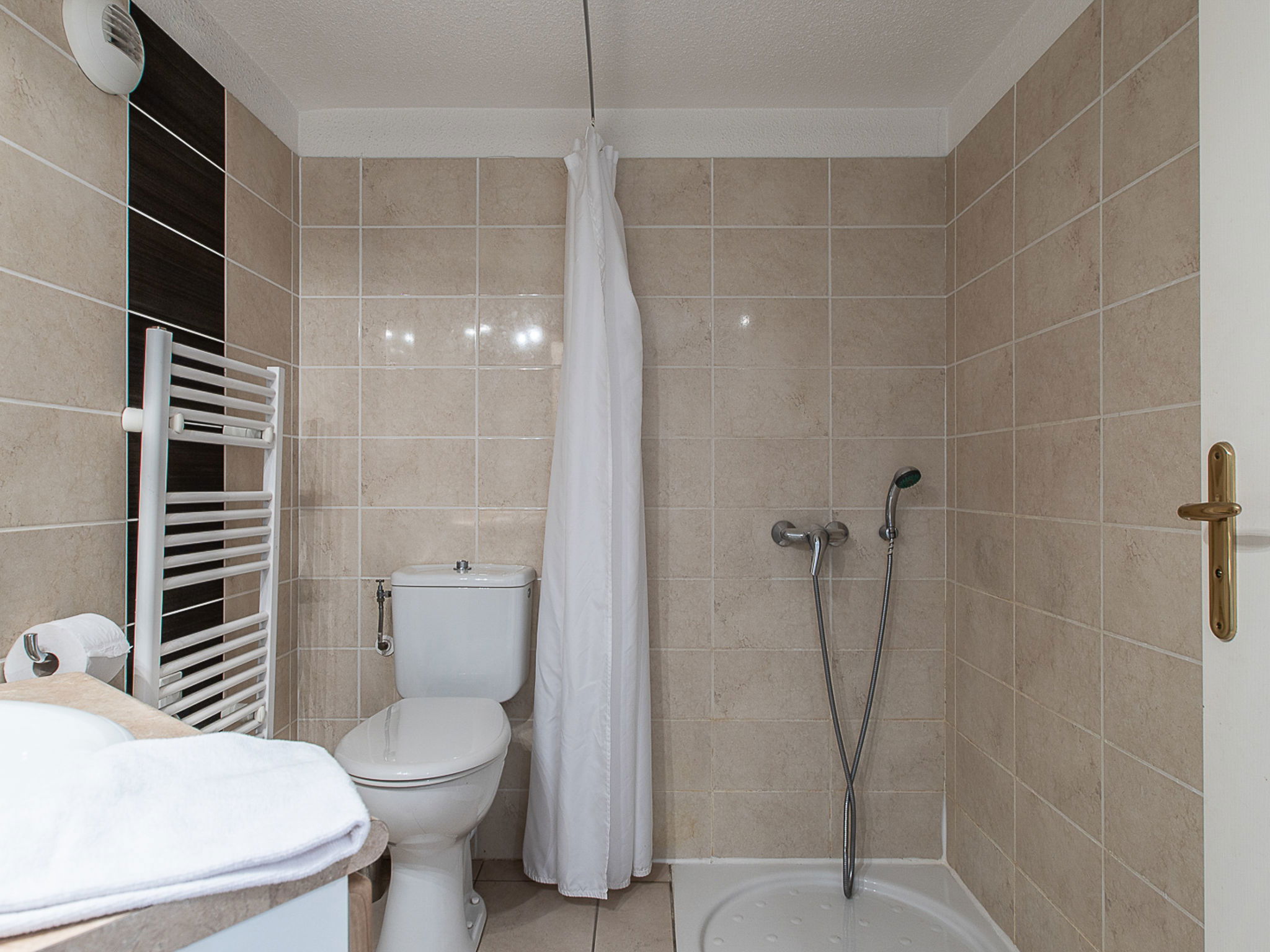 "Le Crystal", 2-room apartment 32 m2. Bright, modern furnishings: living/sleeping room with 1 sofabed, 1 pull-out bed, dining table and TV. 1 room with 2 sleeping facilities. Open kitchen (dishwasher, 4 ceramic glass hob hotplates, kettle, electric coffee machine, combination microwave). Bath/WC. Heating, air-conditioning. Balcony. Balcony furniture. Facilities: iron. Internet (WiFi, free). Please note: maximum 1 small pet/ dog allowed. Smoke alarm, fire extinguisher.