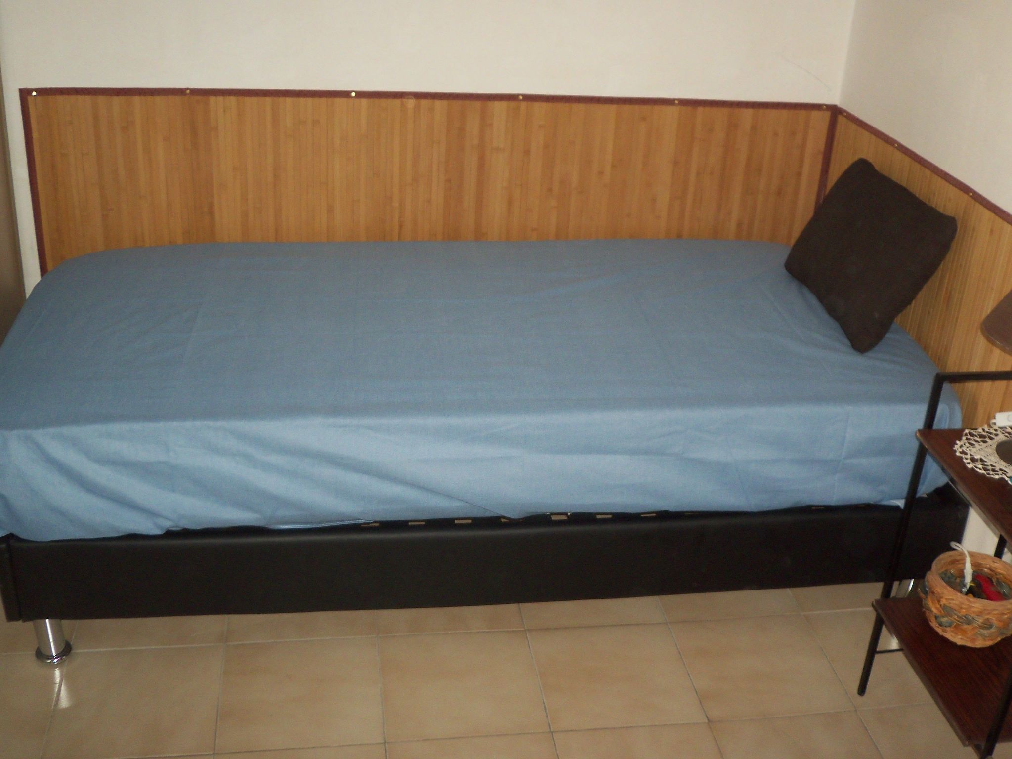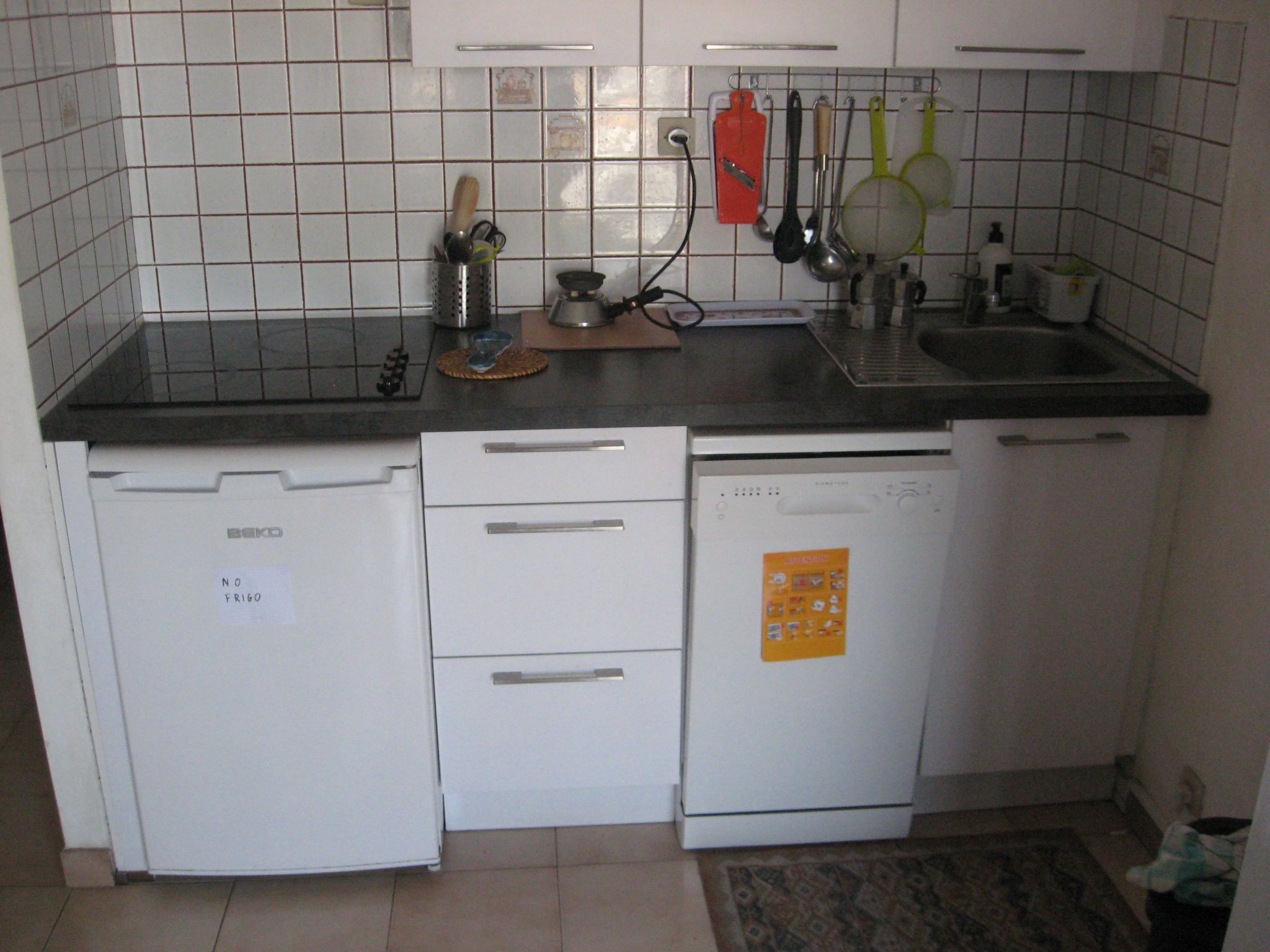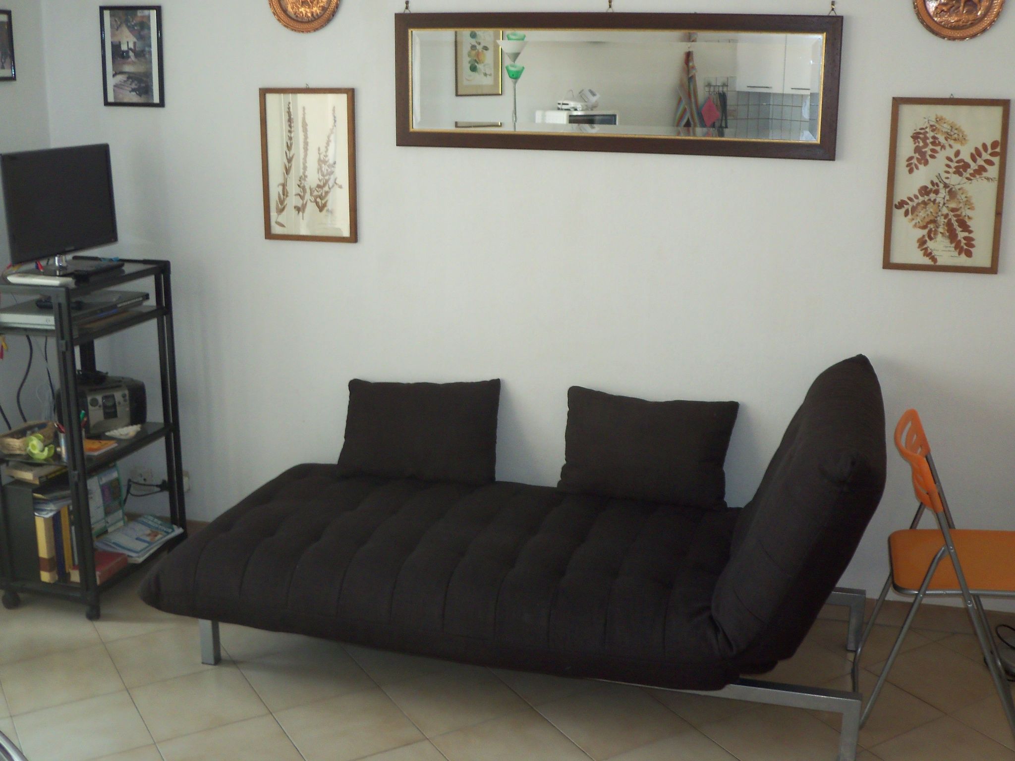 The studio consists of an entrance hall with a wardrobe/wardrobe and a single bed and a living room with a kitchenette equipped with a 4-burner electric cooker, oven, blender, toaster, refrigerator and dishwasher. The living/sleeping area of the studio offers a dining area with a table and four chairs, a TV with DVD player and a radio. There is also a double bed (140 cm wide) and a sofa bed for one person. Air conditioning (hot/cold) is also available. There is a bathroom with a bath and washing machine and a separate toilet.