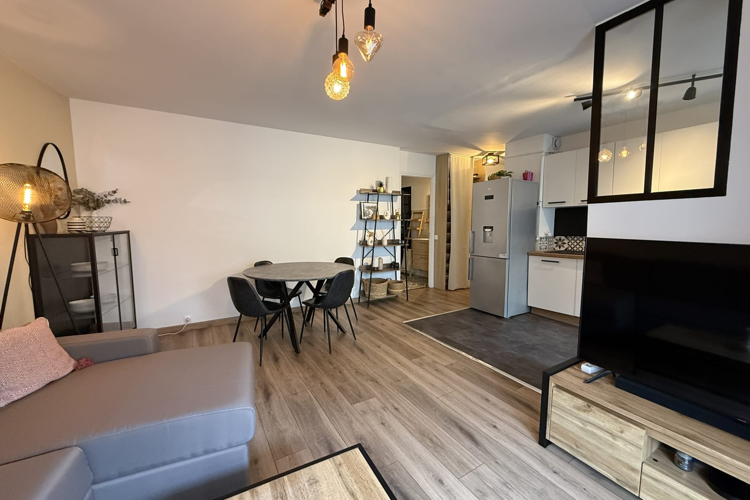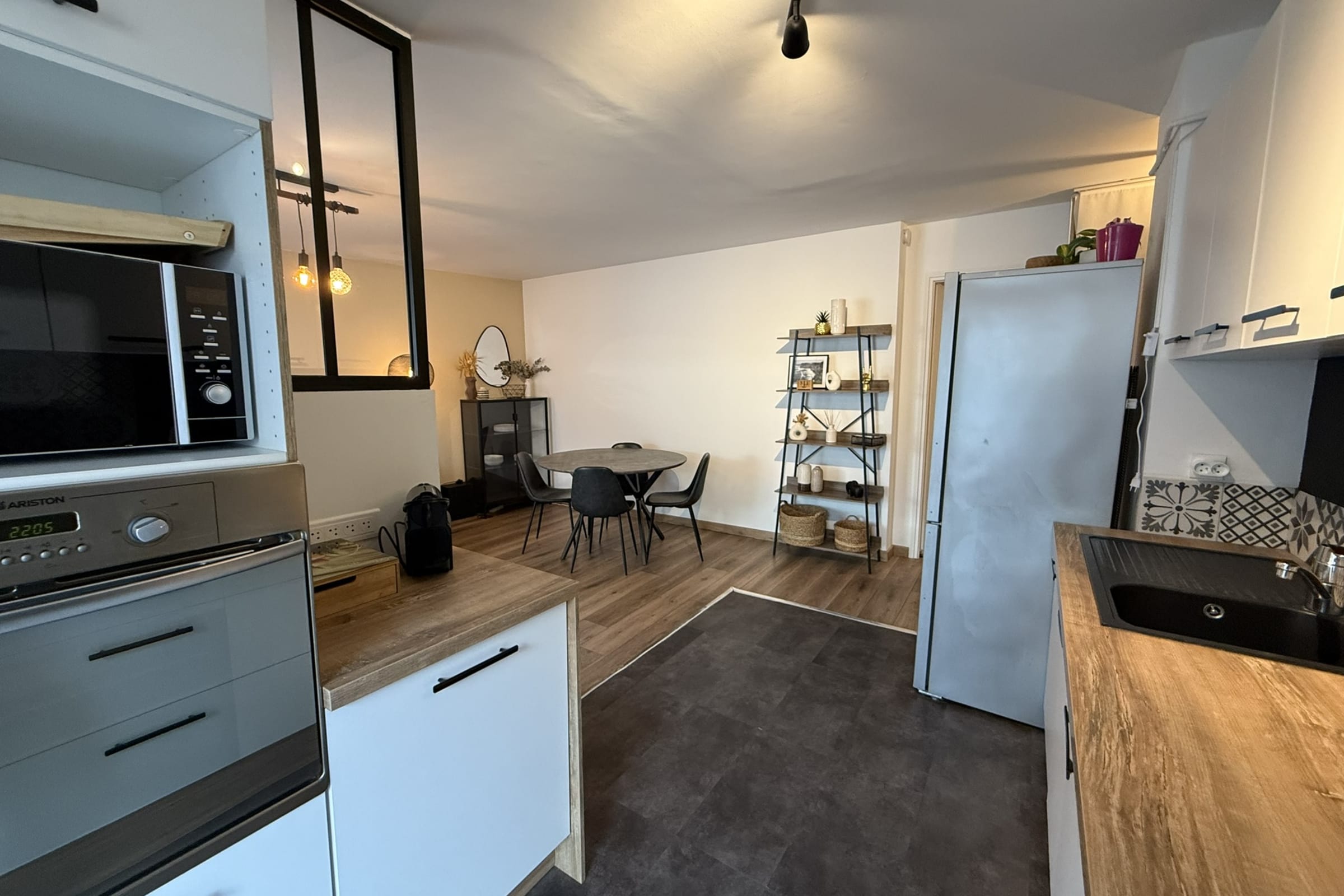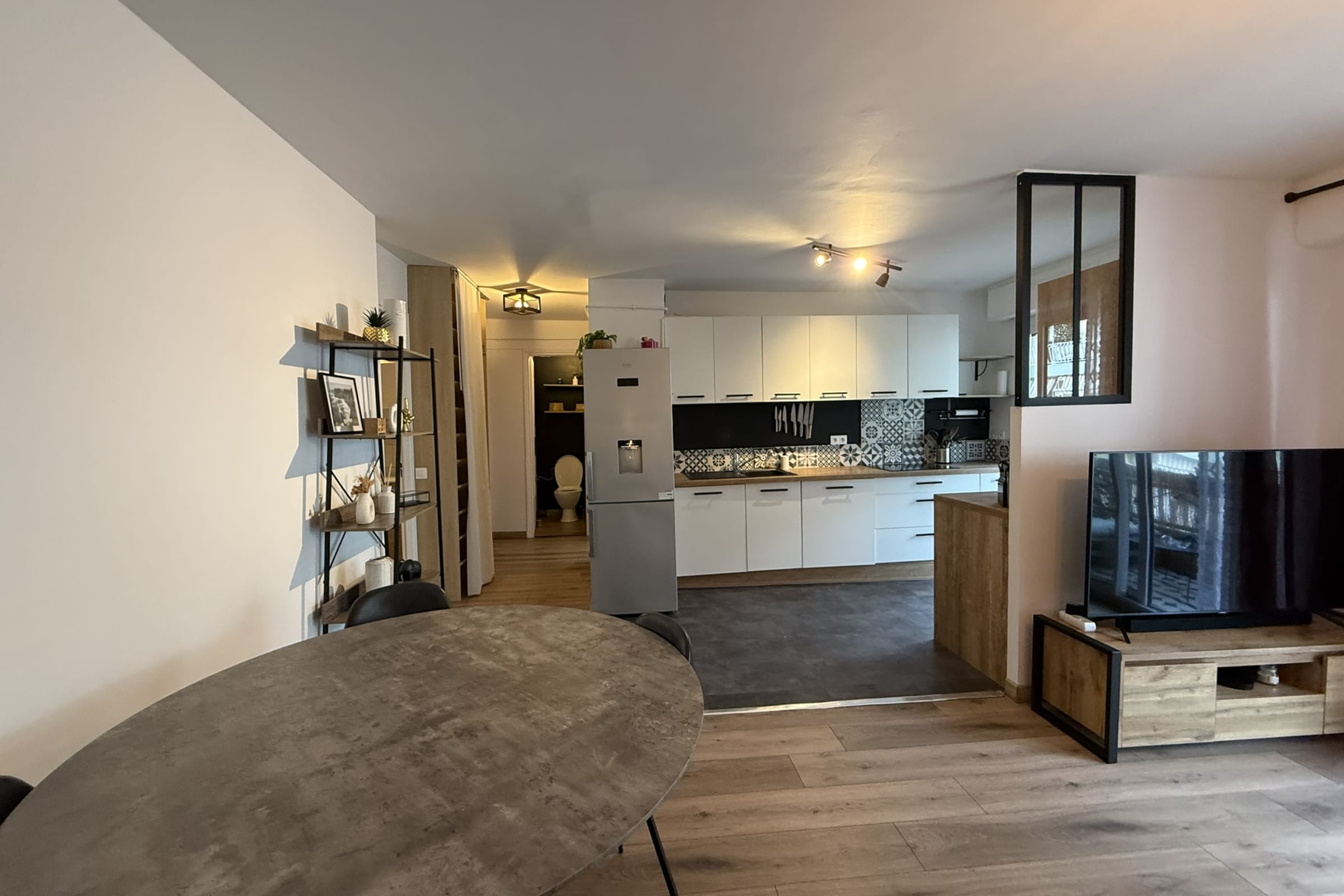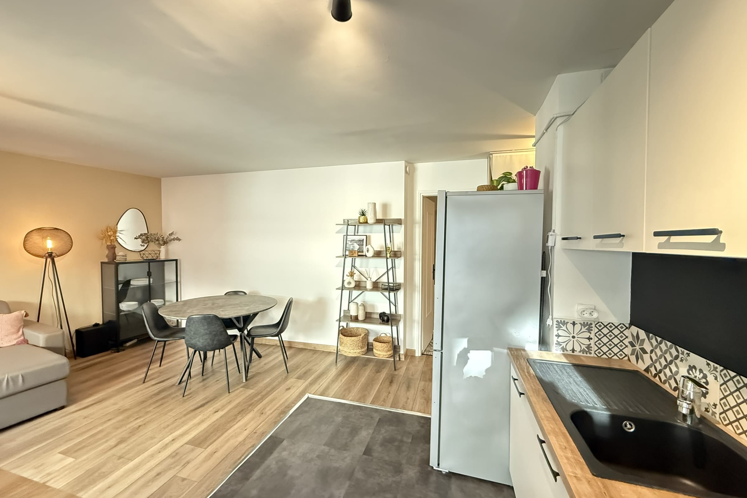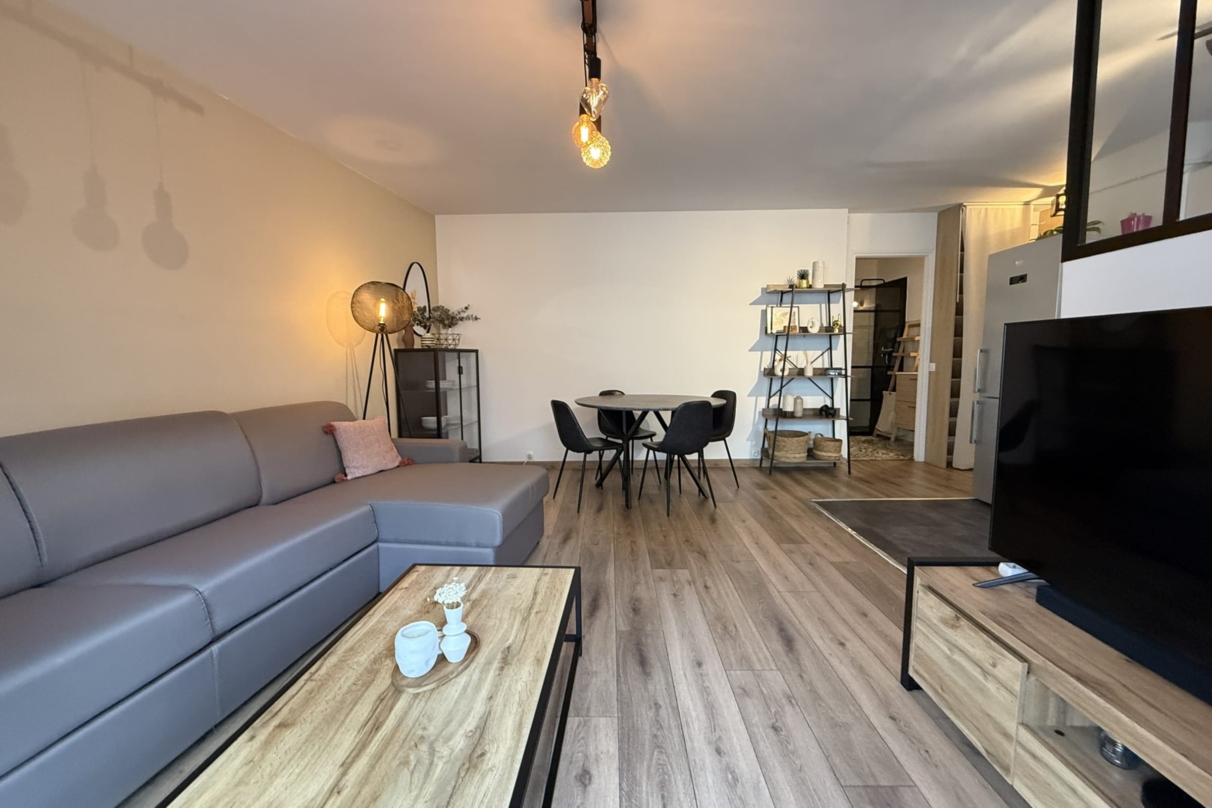The bedroom offers a comfortable queen-size bed for restful nights, while the living room has a sofa that converts into a real bed, perfect for entertaining family or colleagues. The open-plan, fully equipped kitchen (dishwasher, Nespresso coffee machine, oven, microwave, etc.) blends harmoniously into the living space and invites you to share good times, whether over morning coffee or dinner after a busy day.