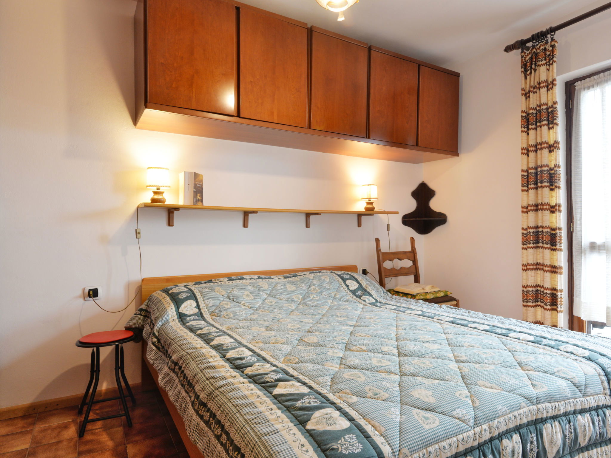 2-room apartment 45 m2 on 2nd floor. Practical and comfortable furnishings: living/dining room with 1 sofabed, dining table and TV (flat screen). Exit to the balcony. 1 double bedroom. Exit to the balcony. Kitchenette (4 hot plates, oven, microwave). Shower/bidet/WC. Boiler. Balcony 7 m2. Panoramic view of the mountains and the valley. Facilities: washing machine. Please note: suitable for families. Non-smokers only. Maximum 1 pet/ dog allowed. Fire extinguisher, no lift. IT022039C2LW3B3659