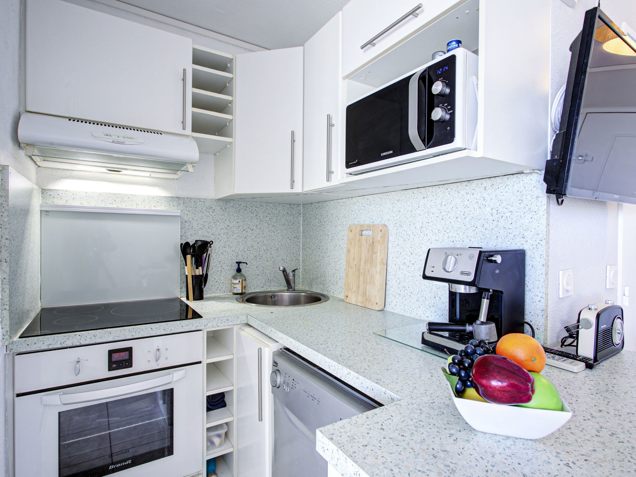 "Ipanema Sud", 2-room apartment 32 m2 on 4th floor, east facing position. Beautiful furnishings: living/dining room with 1 sofabed (140 cm, length 200 cm), dining table, TV, flat screen and air conditioning. Exit to the loggia. 1 room with 1 french bed (1 x 140 cm, length 190 cm). Open kitchen (oven, dishwasher, 3 induction hot plates, toaster, kettle, microwave, electric coffee machine, raclette grill). Shower, sep. WC. Facilities: washing machine, iron, hair dryer. Internet (WiFi, free). Parking. Please note: maximum 1 small pet/ dog allowed. Smoke alarm. Offer by a private individual according to Art. 155, IV of CGI.