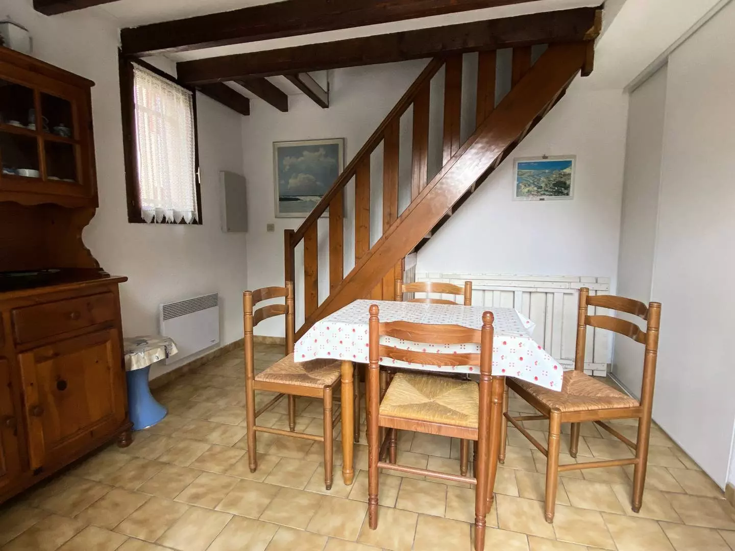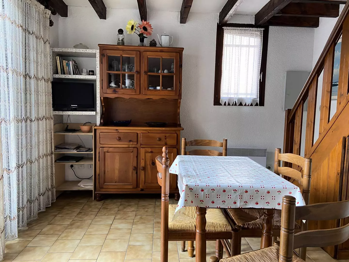 The upper floor consists of two bedrooms, each equipped with a double bed (140 cm).