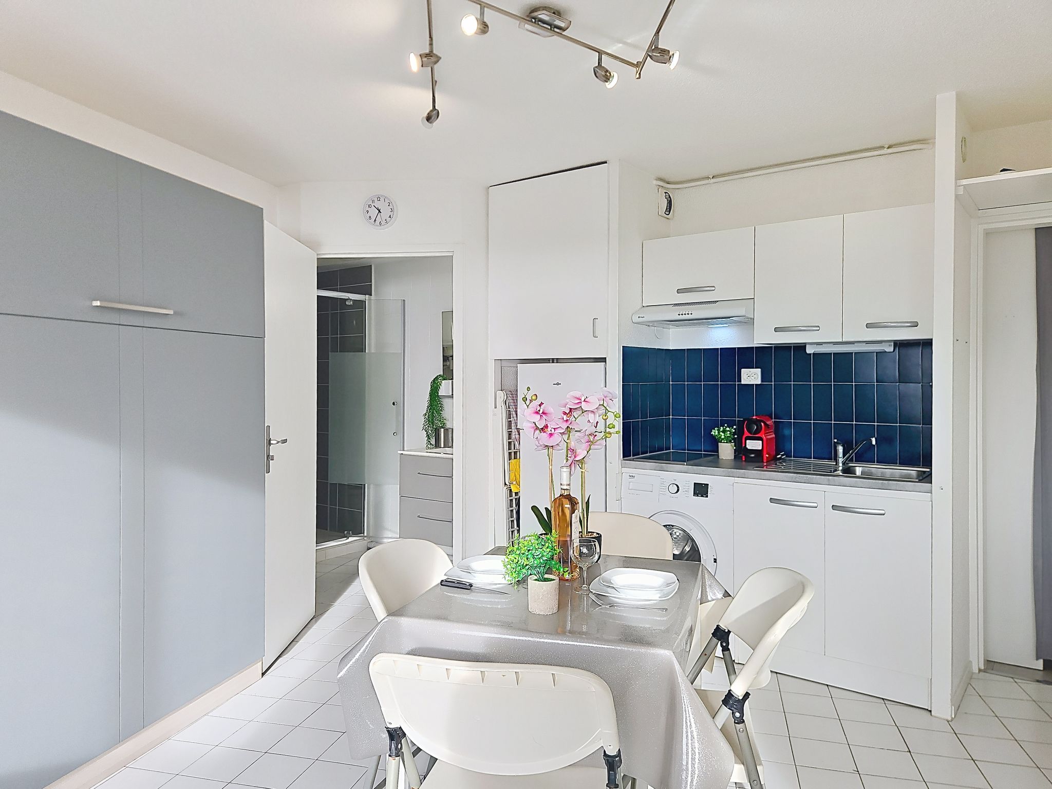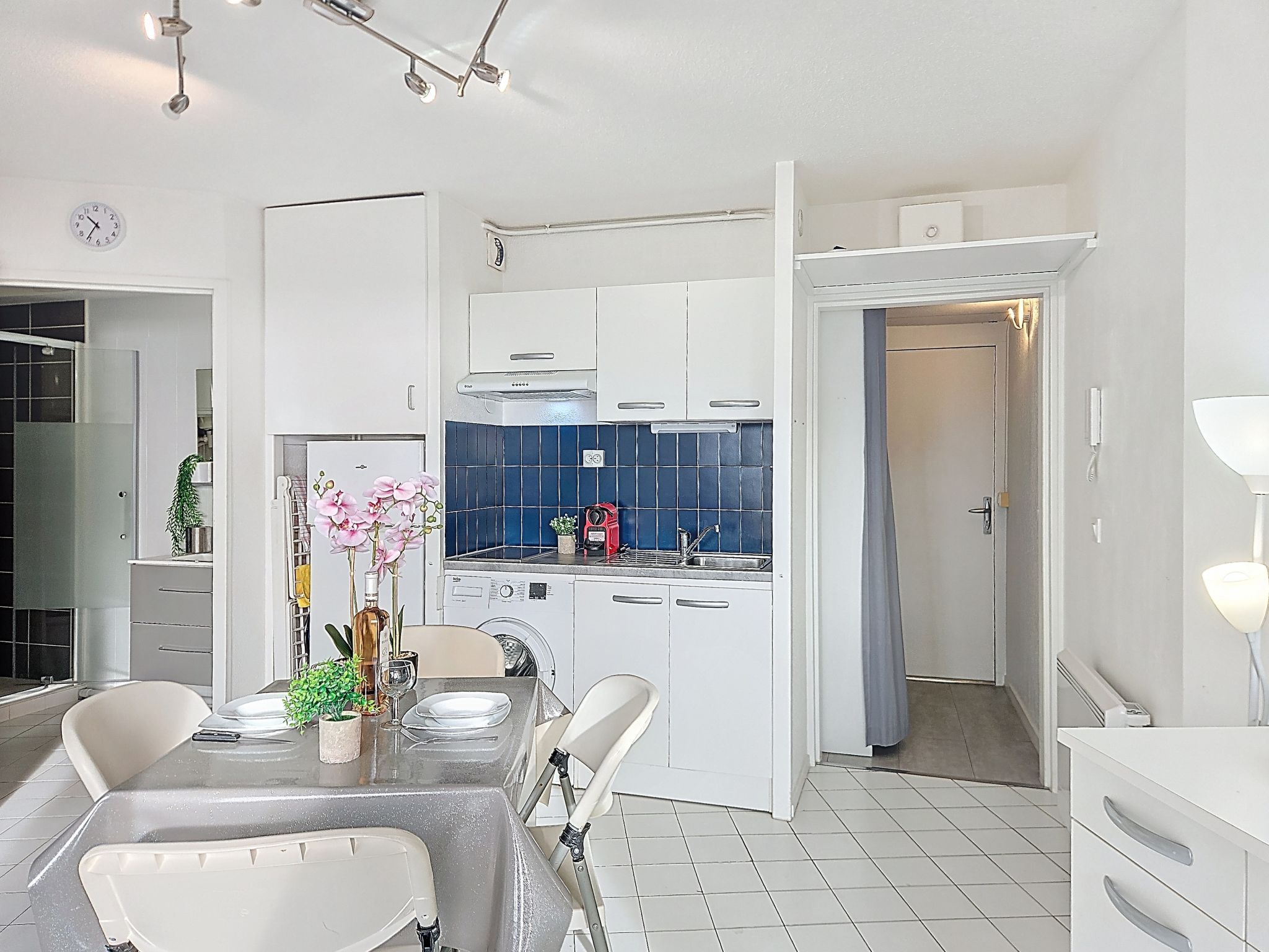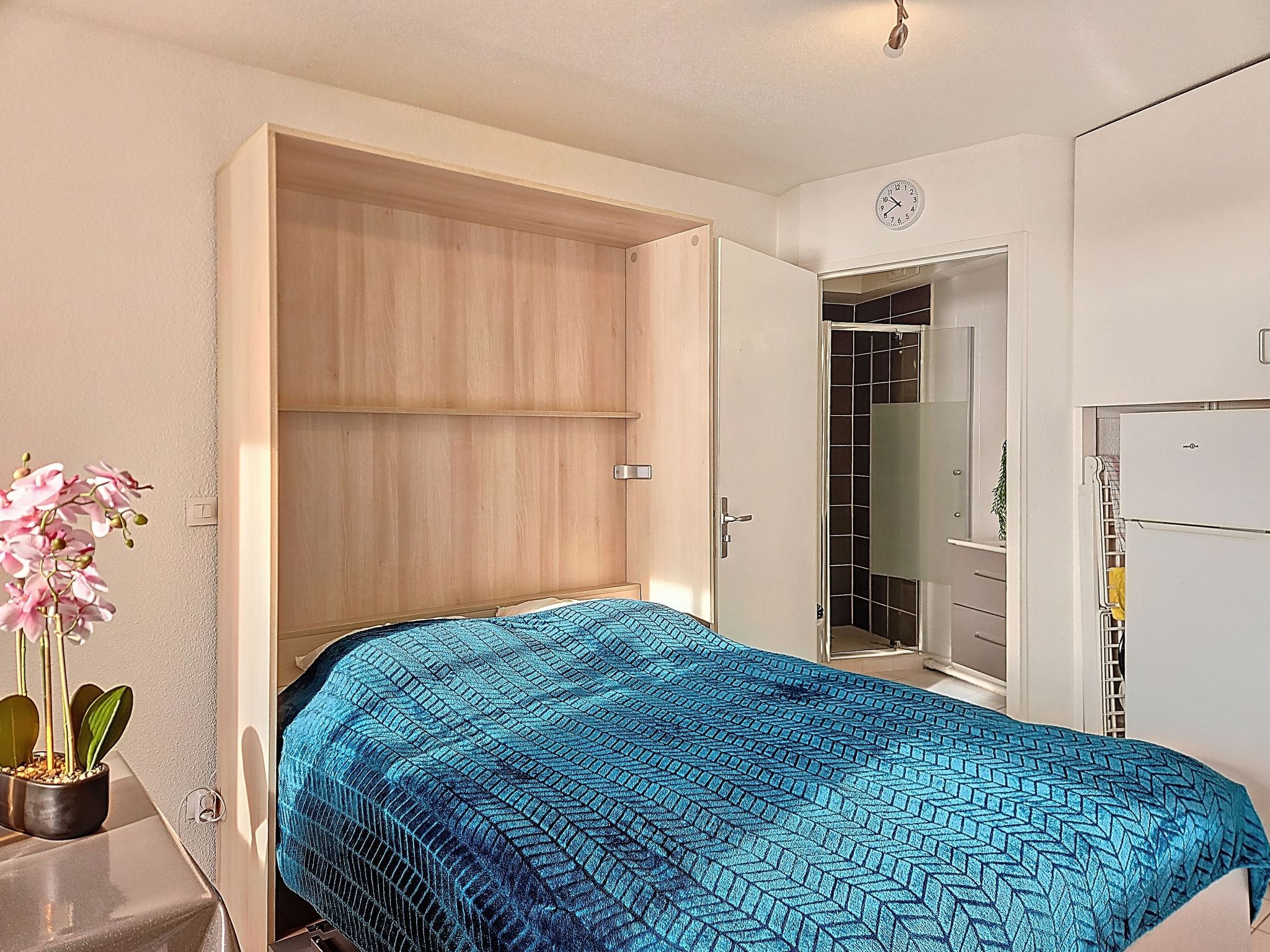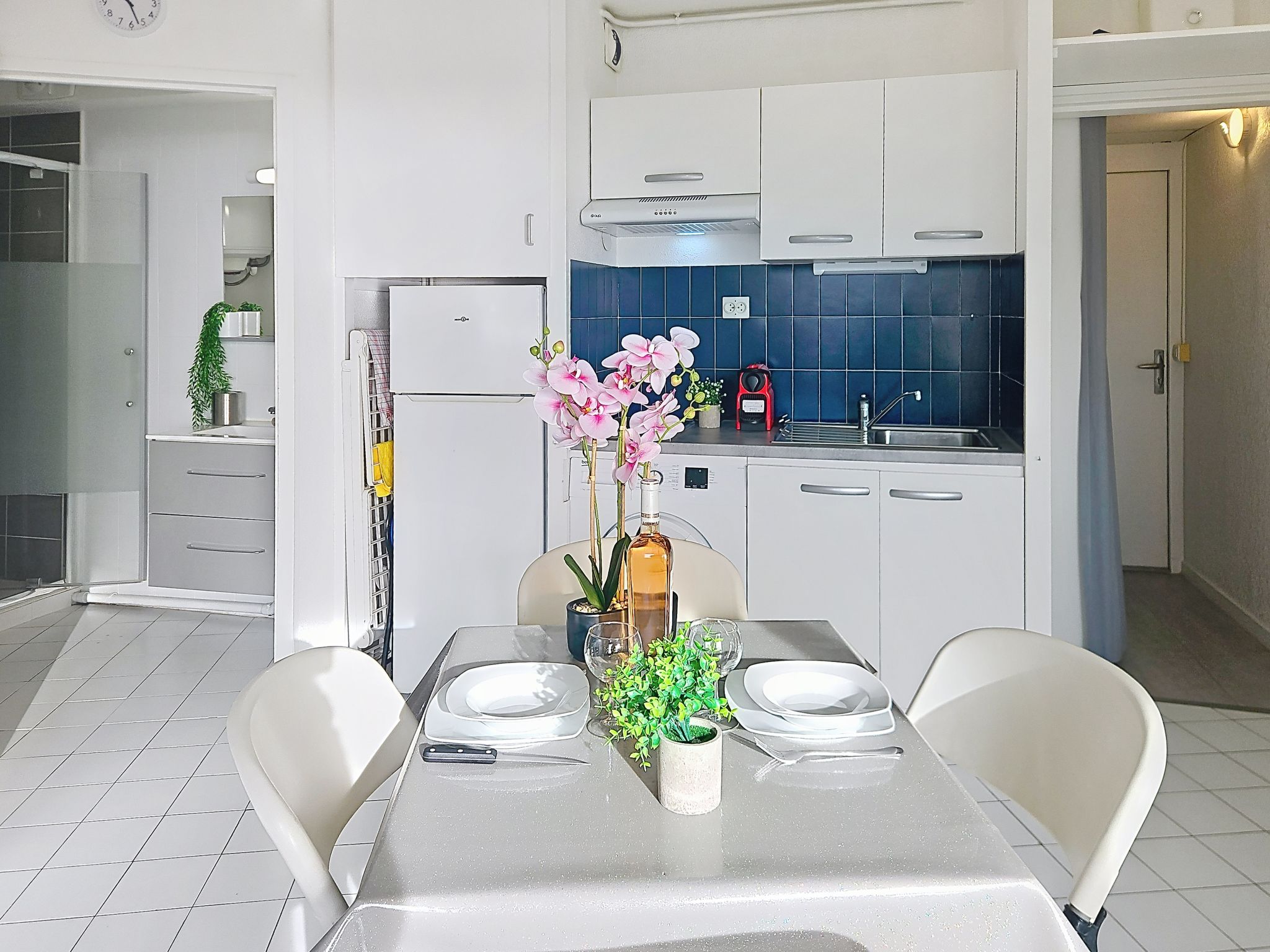 "Le Casino", 1-room apartment 22 m2 on 6th floor, east facing position. Comfortable and beautiful furnishings: living/dining room with 1 double fold-away bed (1 x 140 cm, length 190 cm), dining table and TV (flat screen). Exit to the balcony. Kitchenette (2 induction hot plates, toaster, kettle, microwave, freezer, electric coffee machine, Capsules for coffee machine (nespresso) extra). Shower/WC. Electric heating. Balcony 4 m2. Balcony furniture. View of the sea. Facilities: washing machine, iron. Internet (WiFi, extra). Parking space n 59/27 at the house. Please note: non-smokers only. Maximum 1 small pet/ dog allowed. Smoke alarm. Offer by a commercial proprietor according to Art. 155, IV, CGI