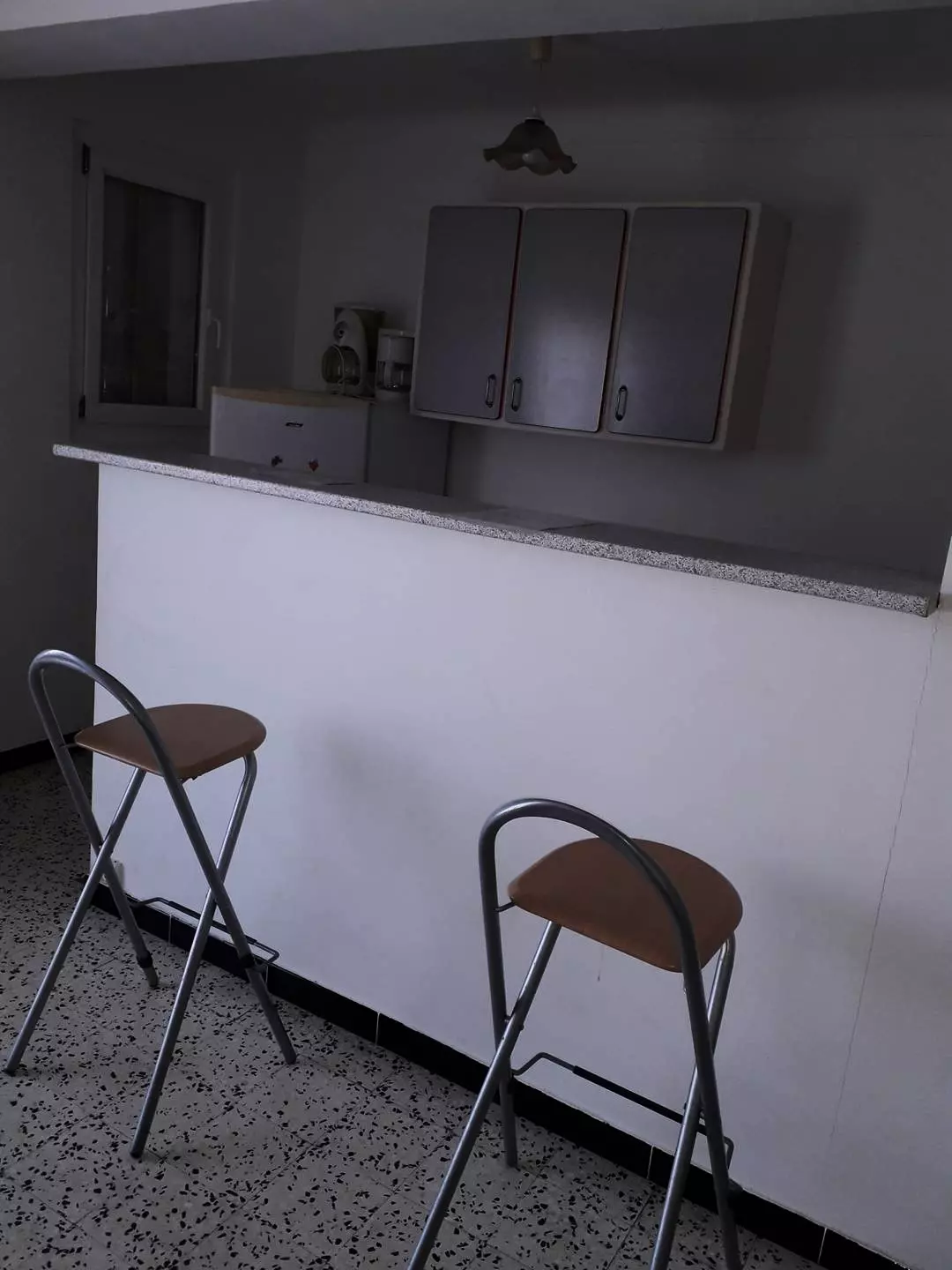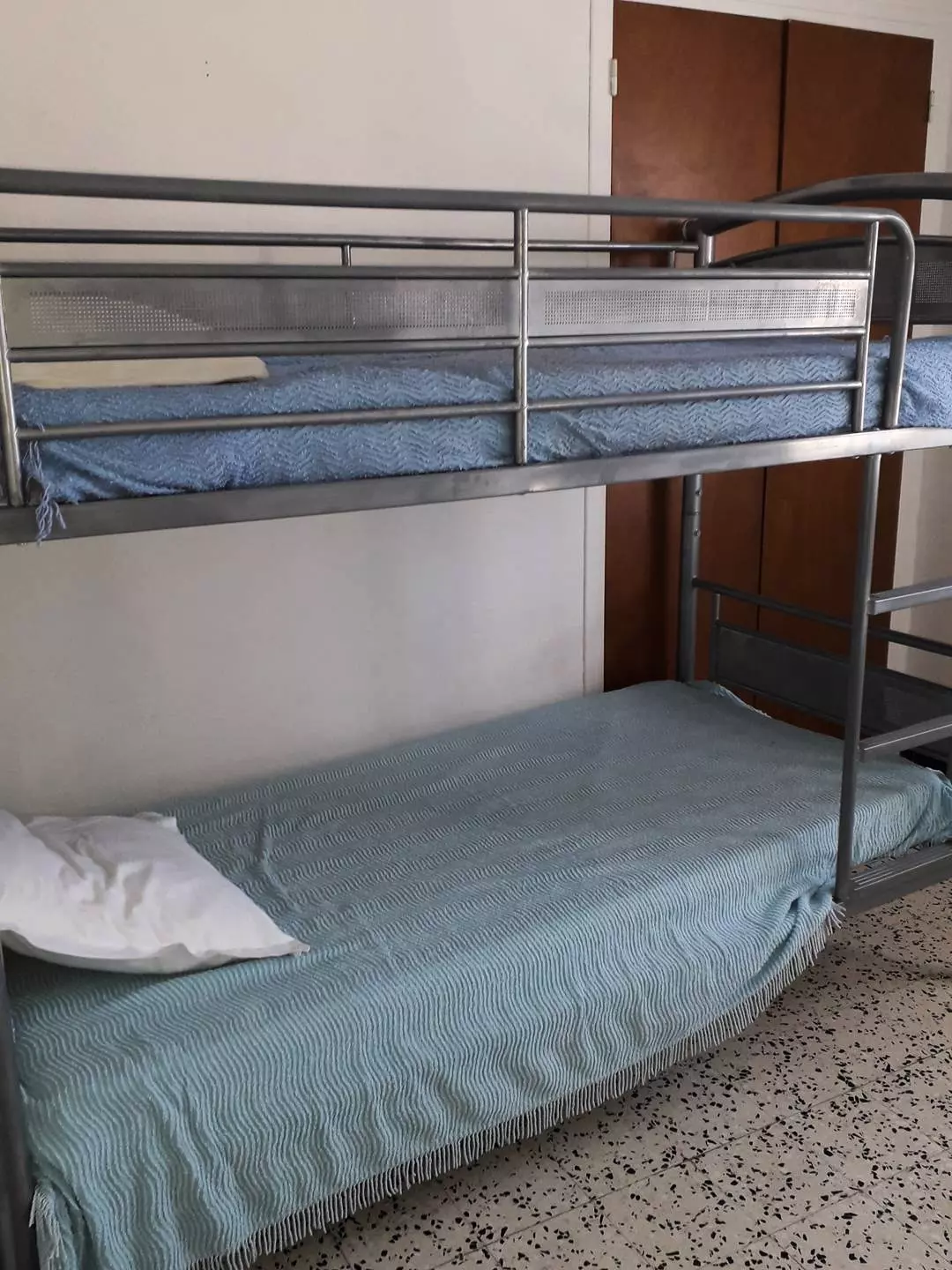 It consists of two bedrooms: one with a double bed, and a second with three single beds. The open-plan kitchen/living room is fully equipped: oven, microwave, refrigerator with freezer, washing machine, hob, and everything you need for comfortable cooking.