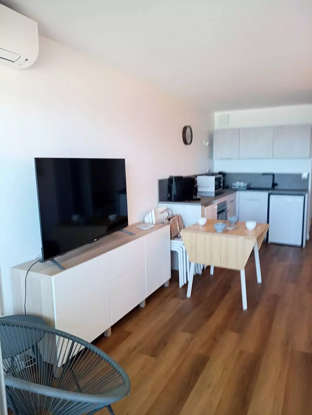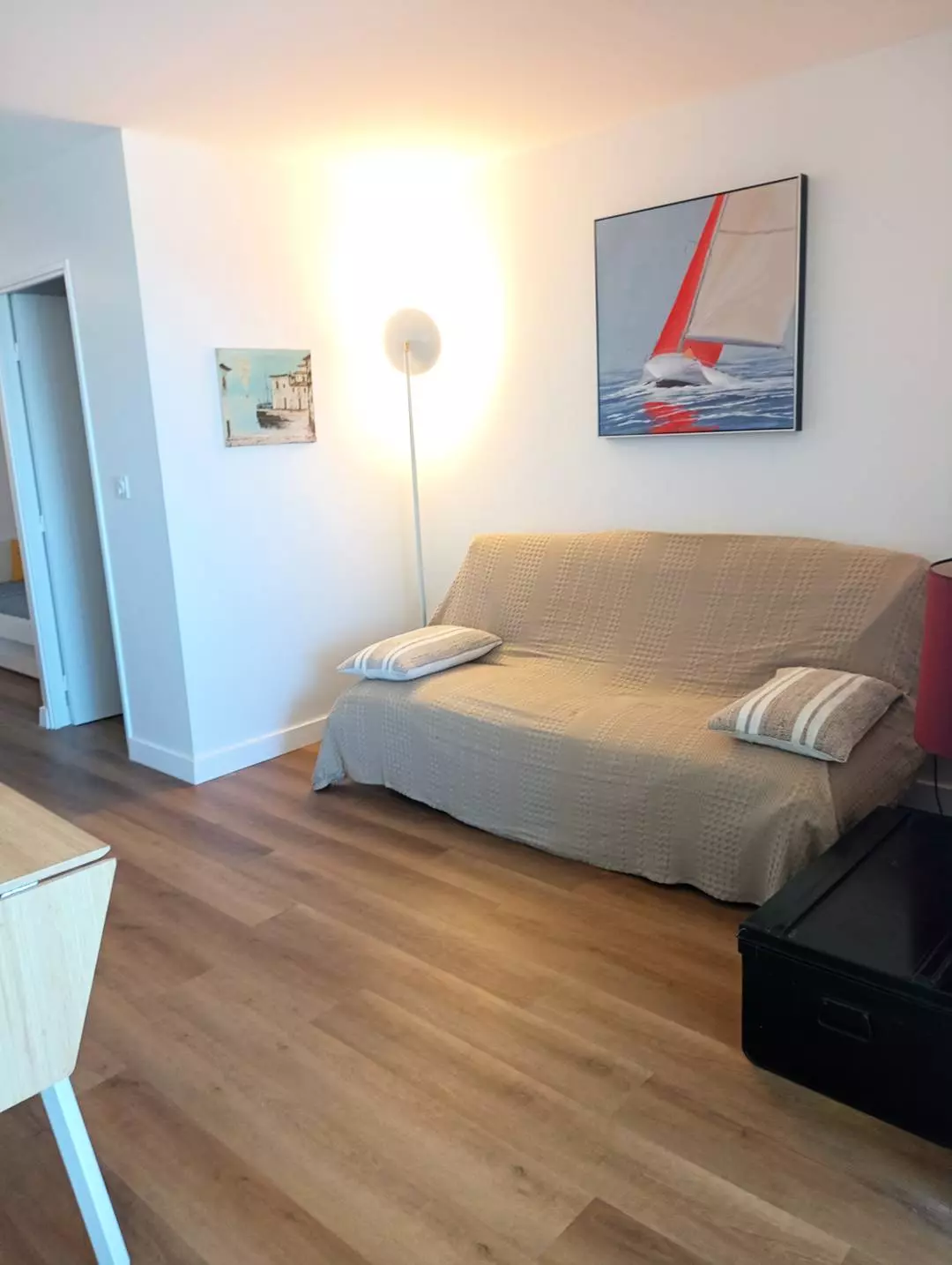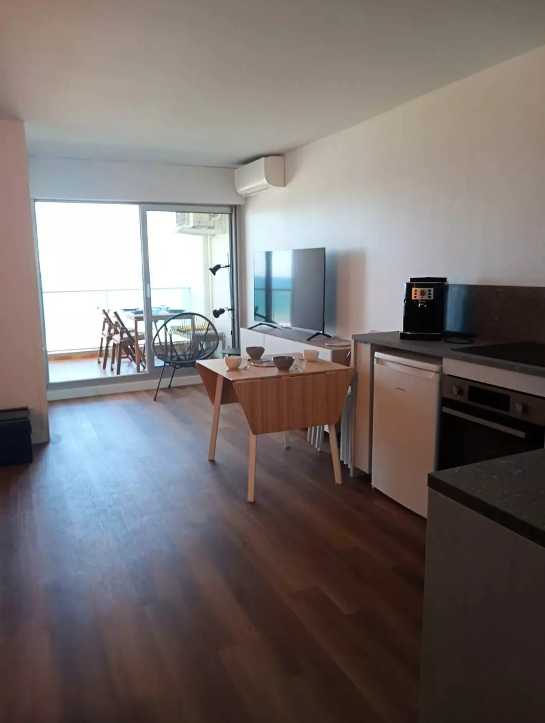Ideally located in the lively Canet Sud district, this renovated studio cabin benefits from a privileged location facing the sea, in the immediate vicinity of shops, restaurants and entertainment.