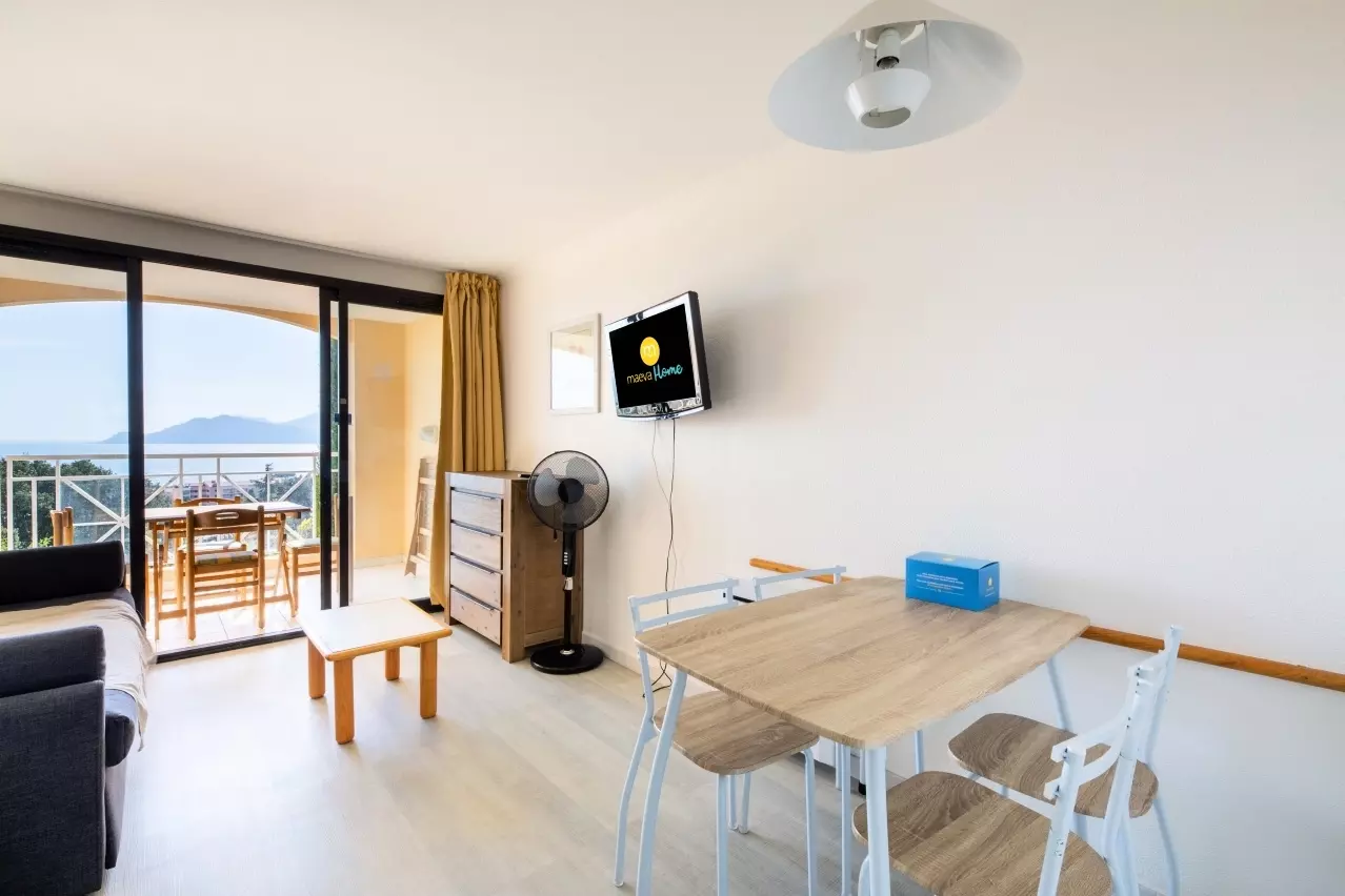 The advantages of this accommodation: allocated parking space, shared swimming pool, south-facing balcony with sea and Esterel view, storage, television...