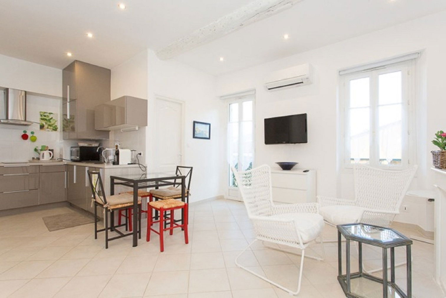 In the Suquet district, this spacious 32 m² studio offers a pleasant and bright setting. It comprises a living area opening onto a balcony, a fully equipped open kitchen, a sofa bed, and a dining area.