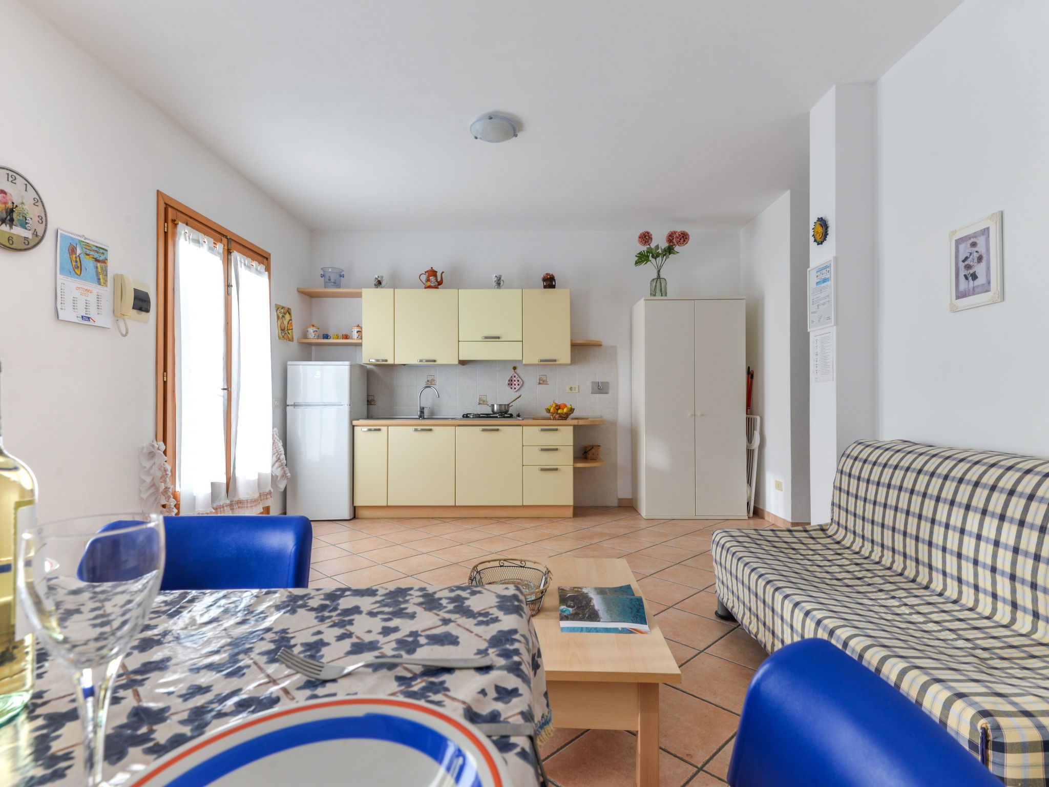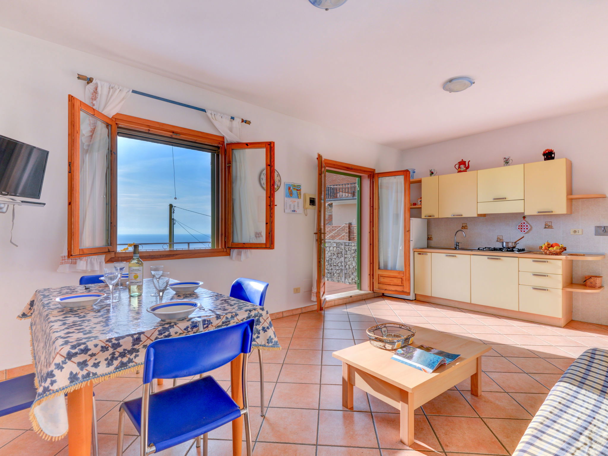 2-room apartment 45 m2 on 1st floor. Practical furnishings: living/sleeping room with 1 double sofabed, dining table and satellite TV. Exit to the terrace. 1 room with 1 french bed (160 cm). Kitchenette (4 hot plates). Shower/bidet/WC. Heating, air-conditioning. Terrace 19 m2. Terrace furniture. Beautiful view of the sea. Facilities: mosquito net, hair dryer. Internet (WiFi, free). Parking (roofed, fenced 1 car) at 20 m. Please note: non-smokers only. 1 small pet/ dog allowed. Private entrance. No mandatory extra charges to be paid on-site. IT049004C2IJW3X8Z4