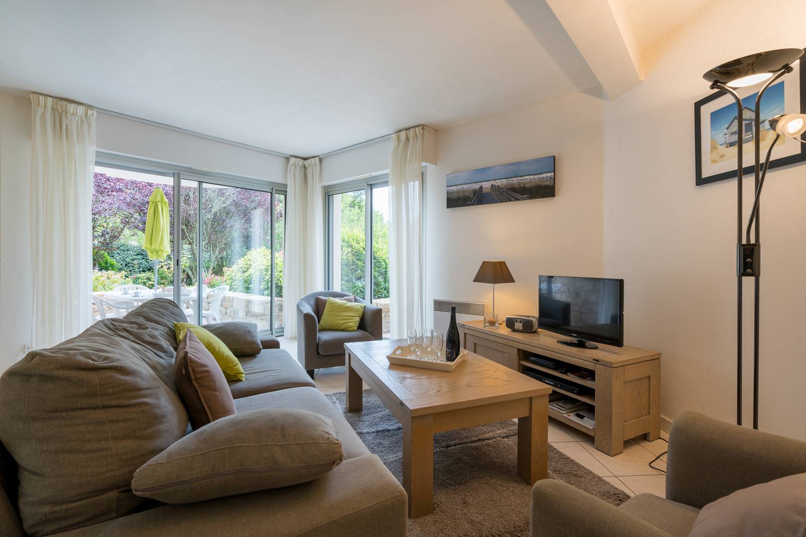 Ideally located 500m from Carnac’s Grande Plage and Légenèse Beach, near the Yacht Club and Thalassotherapy center, beautiful 3-room apartment (approx. 69m²) for 6 people, located in Résidence OCEANIA 2 (Building C, ground floor, door 52):