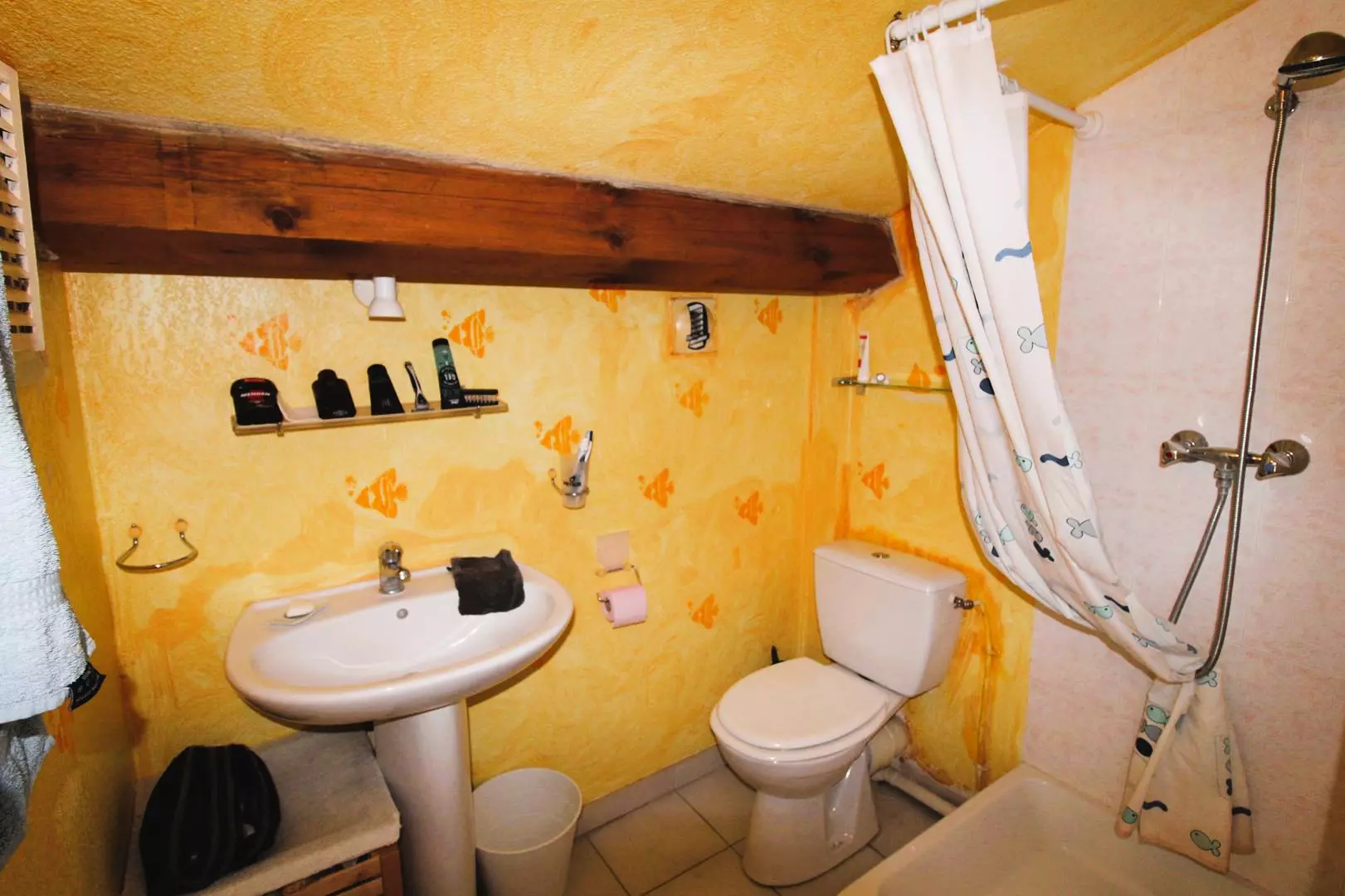 On the second and last floor, a 140*200 convertible sofa and a shower room with WC.