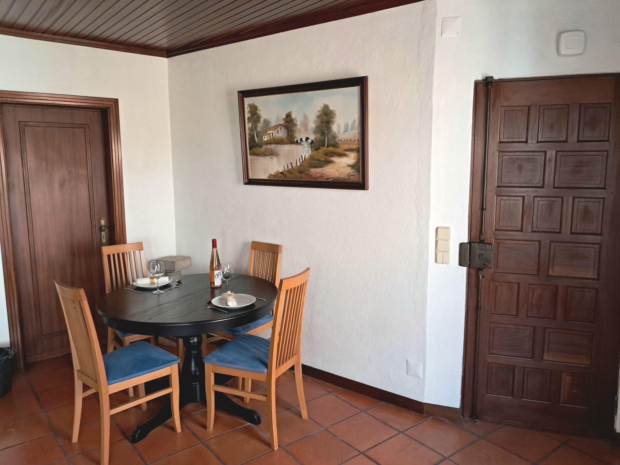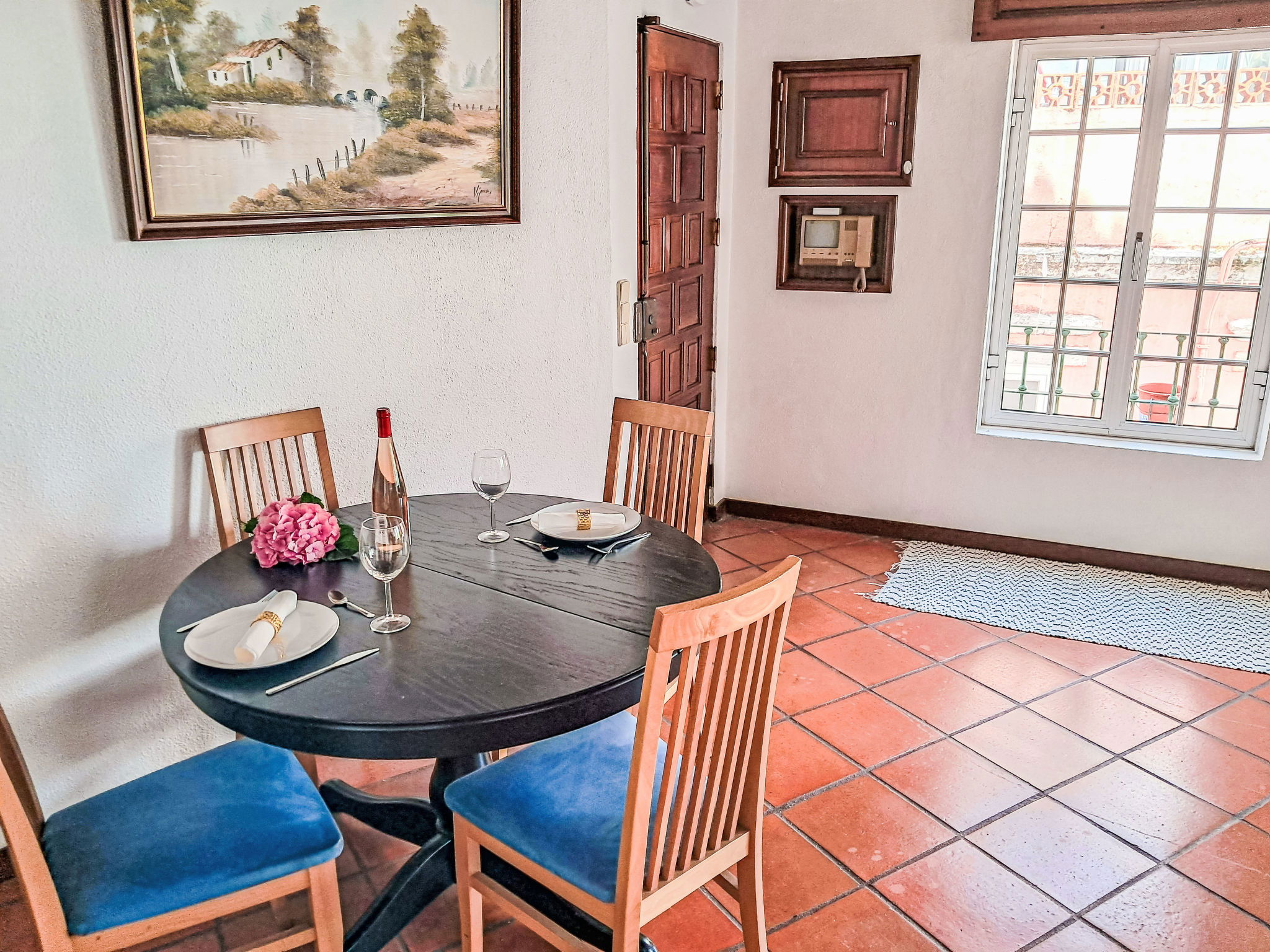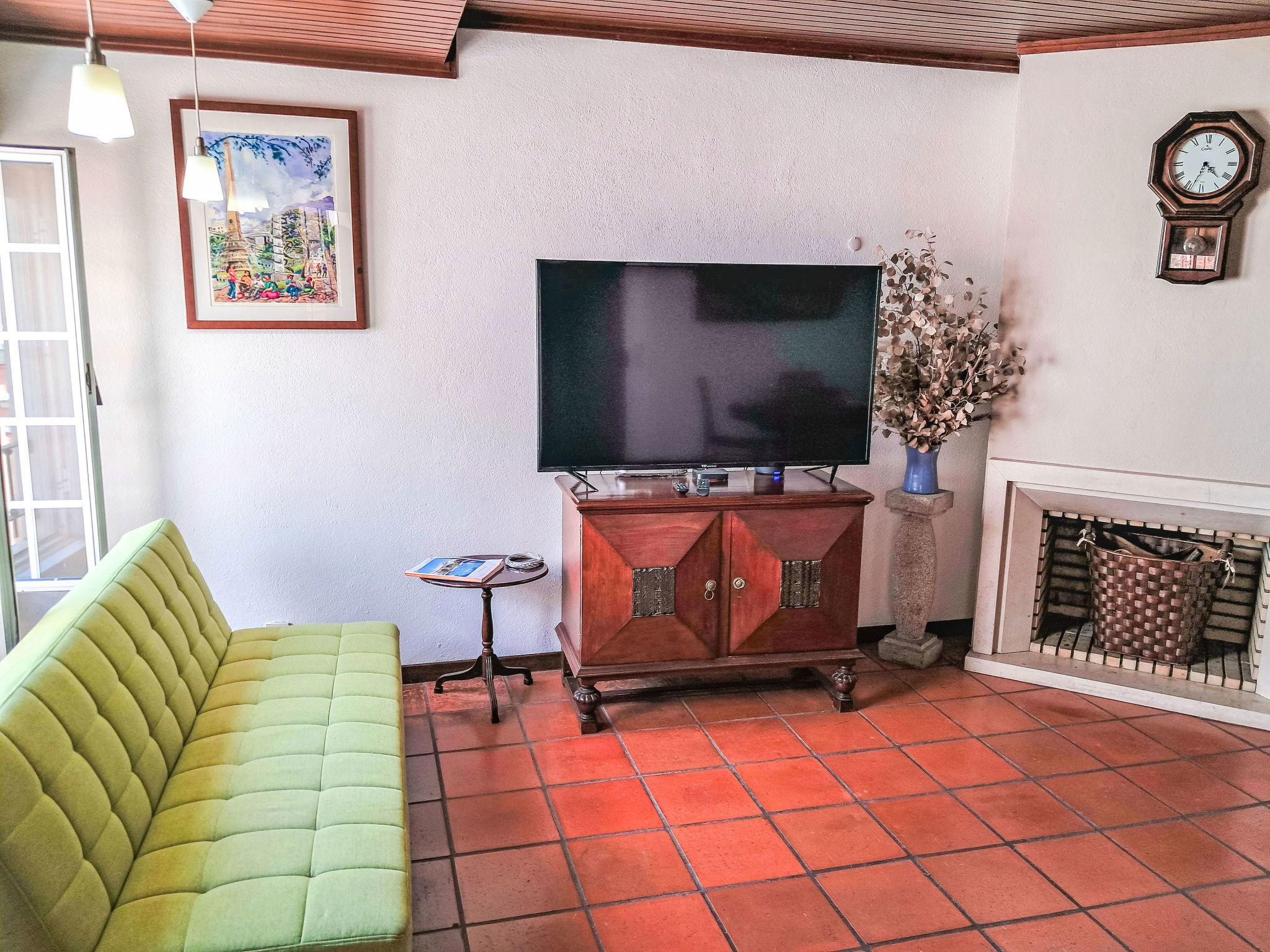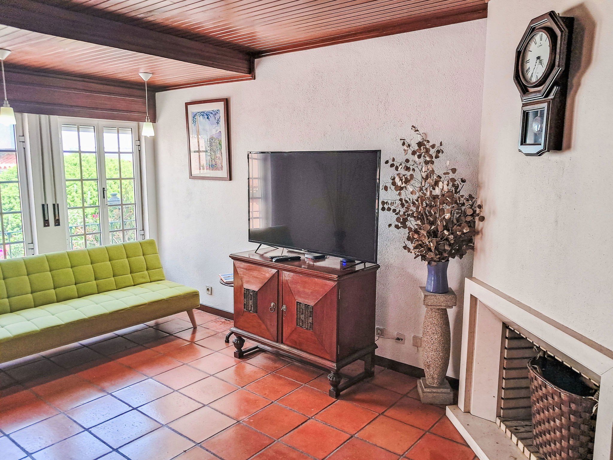 "Dom Carlos", 2-room apartment 69 m2 on 1st floor. Spacious, comfortable furnishings: living/dining room with 1 sofabed, open-hearth fireplace, air conditioning and forced-air heating. 1 room with 1 french bed (1 x 150 cm, length 190 cm). Kitchen (4 hot plates, oven, toaster, microwave, electric coffee machine). Shower/WC. Facilities: washing machine, dryer, iron, hair dryer. Internet (WiFi, free). Maximum 1 pet/ dog allowed. 166471/AL