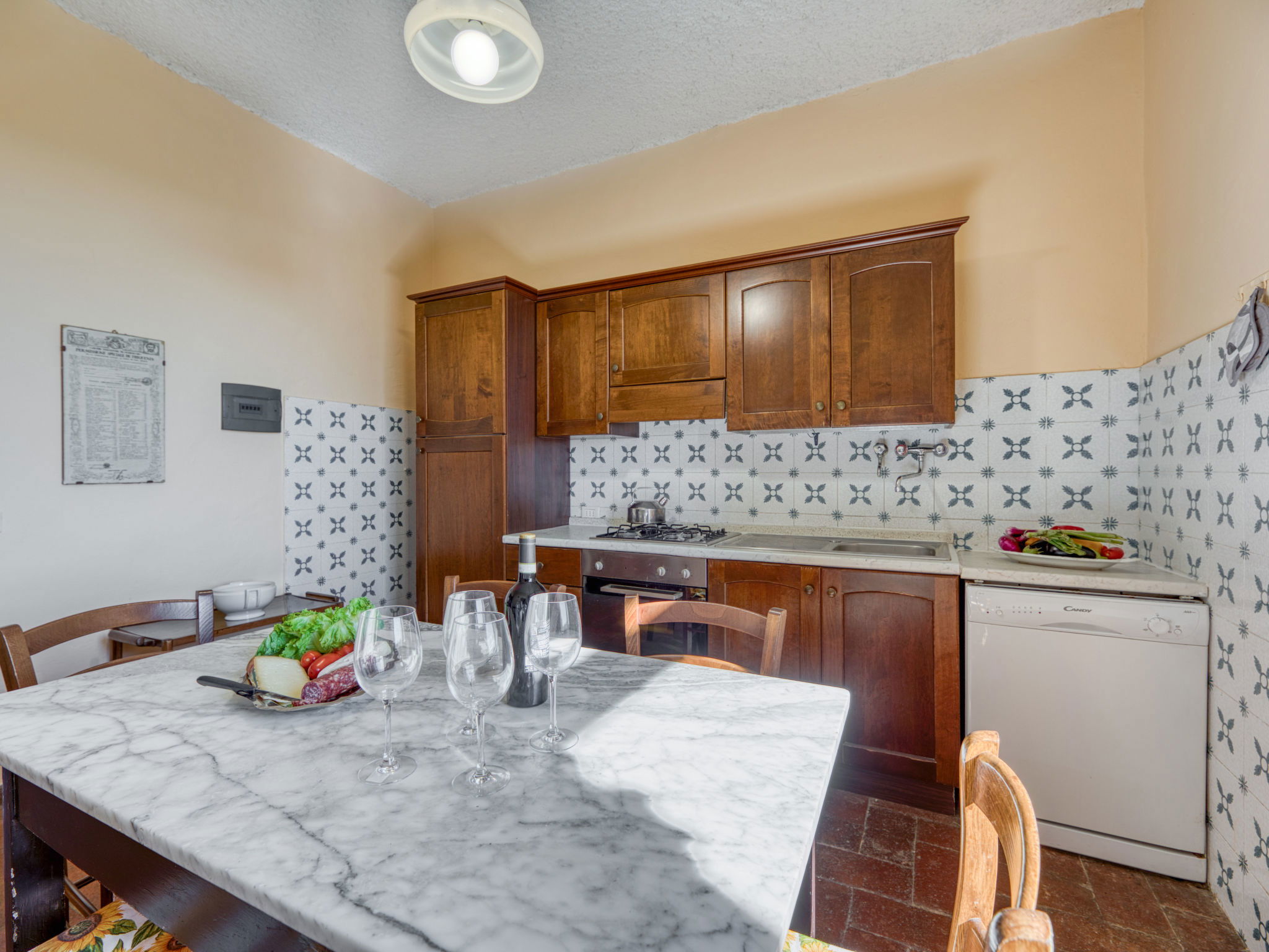 "Foresta 4", 3-room apartment 60 m2, on the ground floor. Practical and rustic furnishings: living/dining room with TV (flat screen). Exit to the garden, to the terrace. 1 double bedroom with fan. Exit to the terrace. 1 room with 2 beds (80 cm), fan. Open kitchen (oven, dishwasher, 4 gas rings, kettle, electric coffee machine) with dining table. Shower/bidet/WC. Gas heating (extra). Terrace, large patio. Terrace furniture, barbecue. Very beautiful panoramic view of the countryside. Facilities: children's high chair, baby cot for up to 2 year olds, hair dryer. Internet (WiFi, free). Parking (roofed) at the house. Please note: non-smokers only. Maximum 1 pet/ dog allowed. Private entrance, fire extinguisher. IT052005B57VSC3FJ8