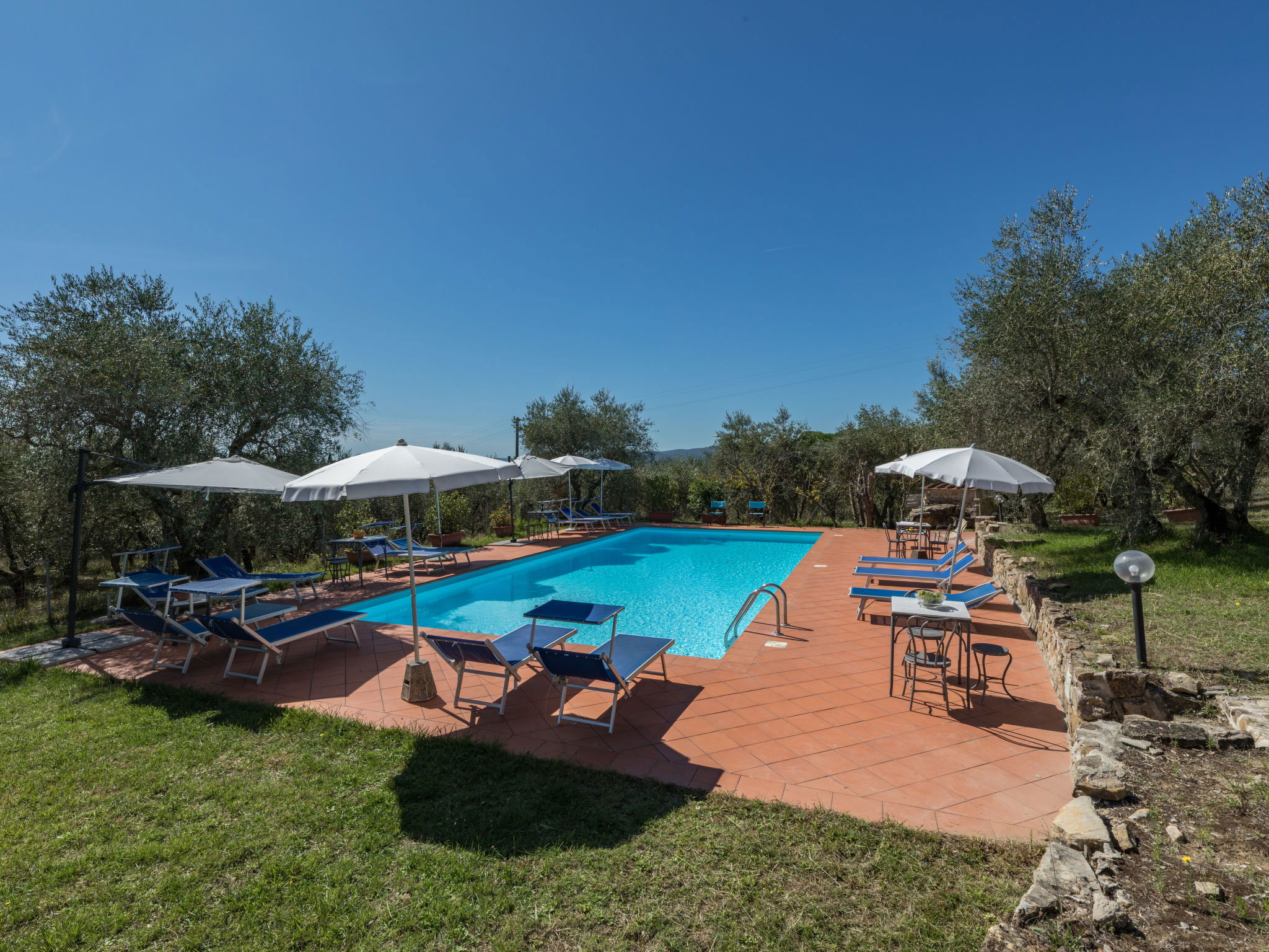 Castellina in Chianti: Agriturismo "La Foresta", surrounded by fields and vineyards. 4 apartments in the residence. 10 km from the centre of Castellina in Chianti, 12 m from the centre of Siena, in a quiet, sunny position, in the countryside. For shared use: property, plants and trees, meadow, swimming pool fenced (6 x 14 m, seasonal availability: 01.May. - 15.Oct.). Outdoor shower, patio, terrace, garden furniture, barbecue, pool maintenance by the owner/gardener. In the house: reception, washing machine (for shared use). 2 km long bumpy motor access to the house. Roofed, parking at the house. Shop 6 km, grocery 6 km, supermarket 6 km, restaurant 2 km, bus stop "Via Chiantigiana" 2 km, railway station "Siens" 12 km. Nearby attractions: Siena 12 km, Greve in Chianti 20 km, SAn Gimignano 25 km, Firenze 65 km. Please note: car recommended. Baby equipment (included). Local sale of farm products. All houses/apartments are individually designed/furnished.