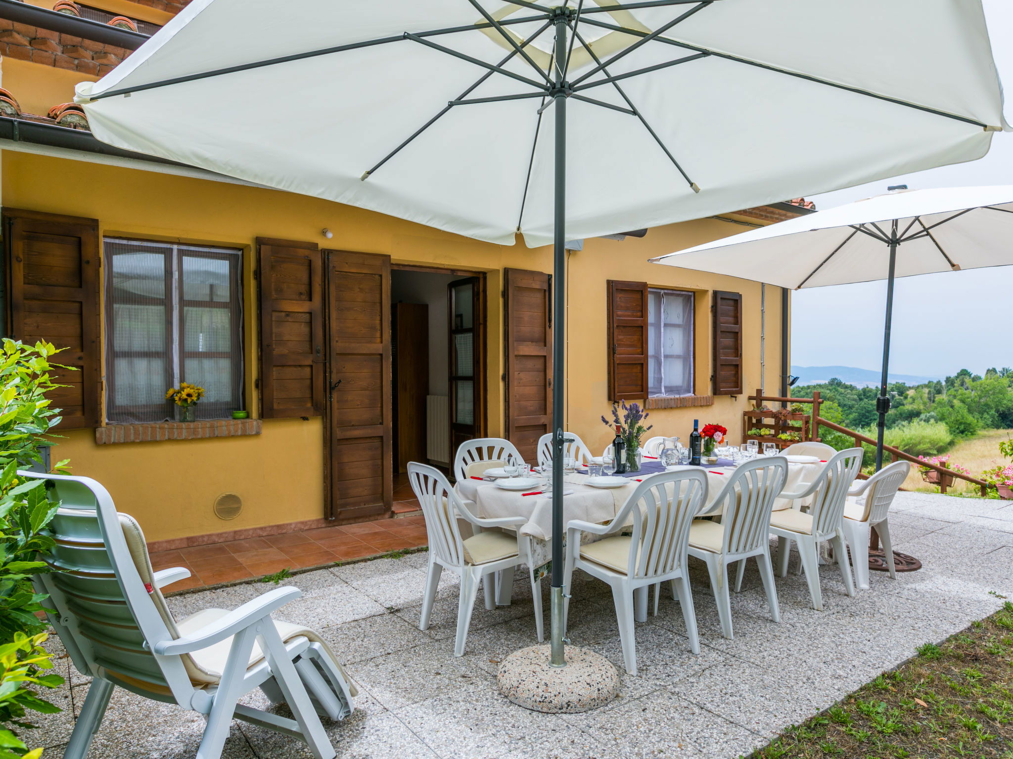 Cottage "Bellavista", 3 storeys, semi-detached, surrounded by meadows and fields. 4 apartments in the property. On the outskirts, 1.2 km from the centre of Castellina Marittima, in a secluded, quiet, elevated position, 10 m from the edge of the forest, 17 km from the sea, 17 km from the beach. For shared use: property, swimming pool (above ground) round (5 m diameter, depth 125 - 125 cm, seasonal availability: 01.Jun. - 30.Sep.). Pool maintenance by the owner/gardener. In the house: washing machine, tumble dryer (for shared use). Motor access (100 m via unmade road). Parking on the premises. Shop 1.2 km, grocery 1.2 km, restaurant 700 m, bus stop 100 m, sandy beach "Vada" 17 km, thermal baths "Casciana Terme" 30 km. Nearby attractions: Pisa 50 km, Lucca 70 km, Firenze 120 km.