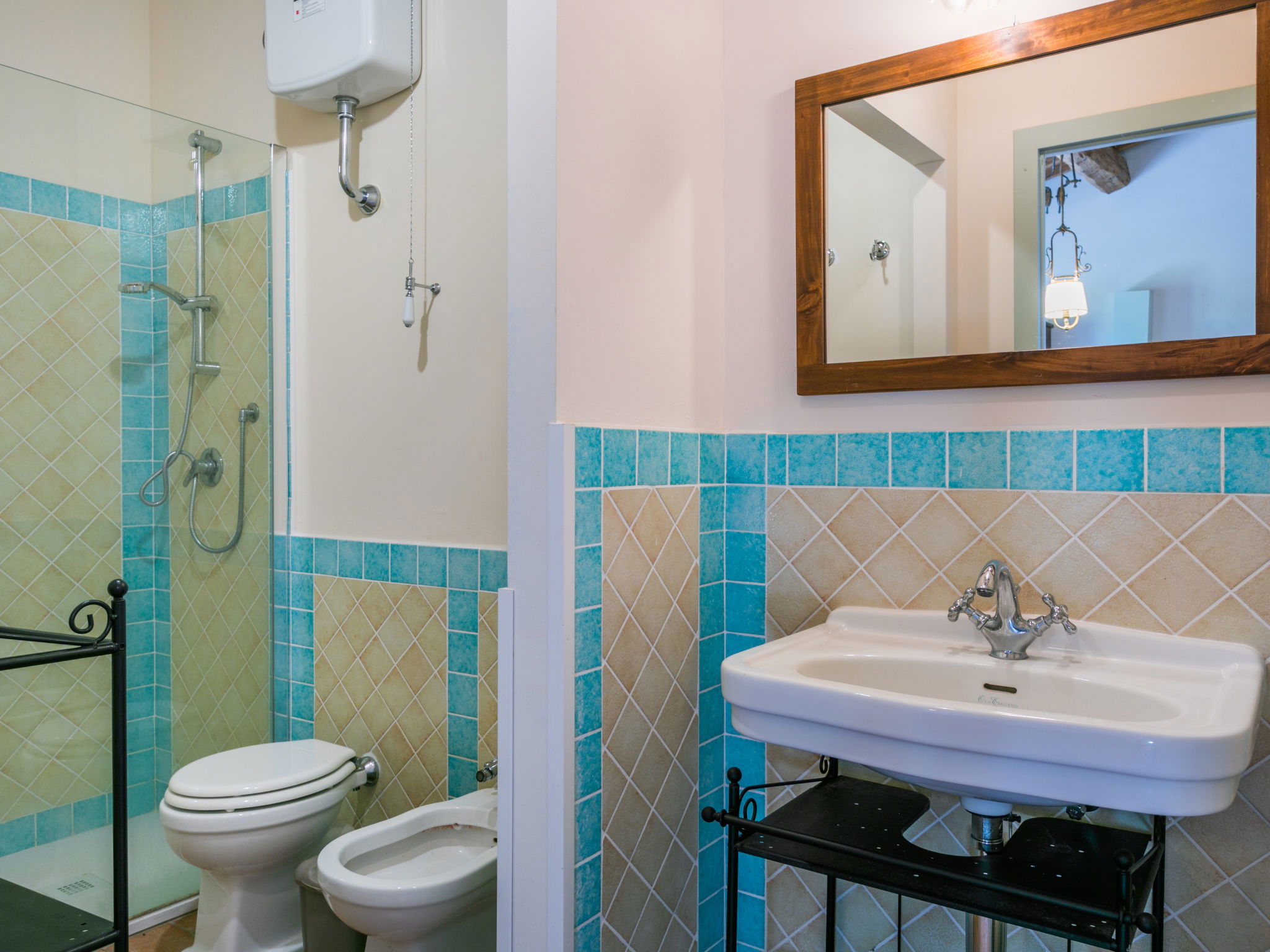 "Cotto", 3-room apartment 55 m2 on 1st floor. Spacious and bright, beautiful and stylish furnishings: upper floor: (exterior staircase) living room with TV. 1 double bedroom. 1 room with 2 beds. Open kitchen (mini-oven, oven, dishwasher, 4 induction hot plates, toaster, kettle, electric coffee machine). 2 showers/bidet/WC. Electric heating, gas heating, air-conditioning. Comfortable furnishings in the country house style. Patio. Terrace furniture. Very beautiful panoramic view of the sea and the countryside. Facilities: washing machine, mosquito net, baby cot for up to 2 year olds, hair dryer. Internet (WiFi, free). Please note: maximum 1 pet/ dog allowed. Private entrance. IT049017B5RGCR554Q