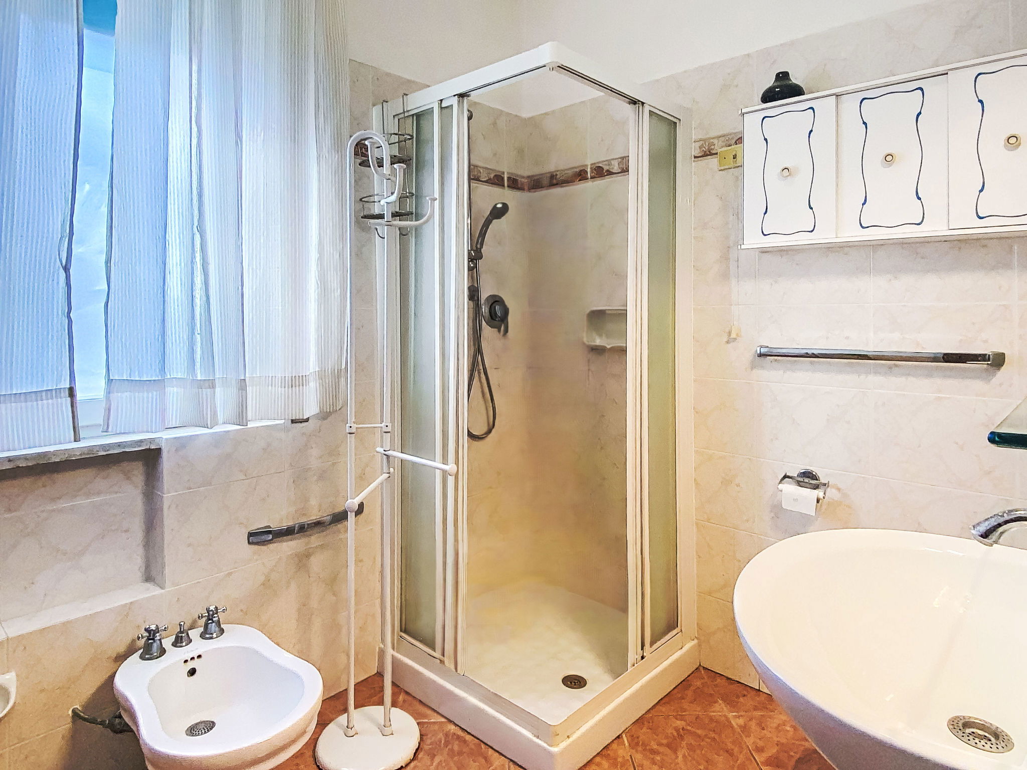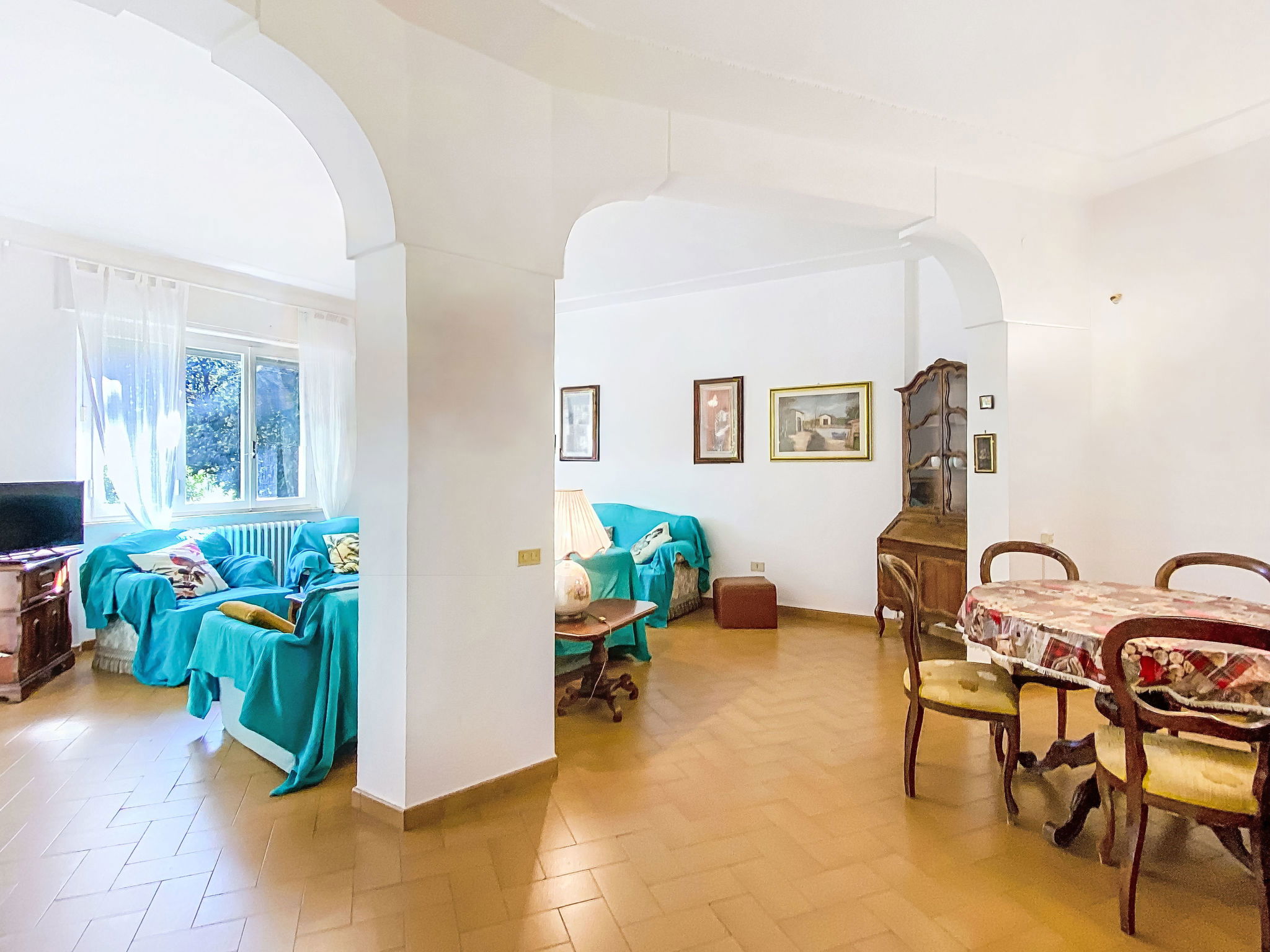 3-family house, 2 storeys. 400 m from the centre of Castiglioncello, in an elevated position in the residential district, 700 m from the sea, 700 m from the beach. Private: large garden (fenced). Linen change (suppl. charge extra). Towel change (suppl. charge extra). Parking on the premises. Shop, supermarket 500 m, bakery 400 m, pedestrian zone 500 m, 5 minute walk to the centre, bus stop 400 m, railway station 500 m, sandy beach 700 m, rocky beach 1 km, thermal baths "Calidario" 50 km. Marina 2.3 km, golf course (9 hole) 38 km. Nearby attractions: Livorno 22 km, Pisa 44 km, Firenze 100 km.