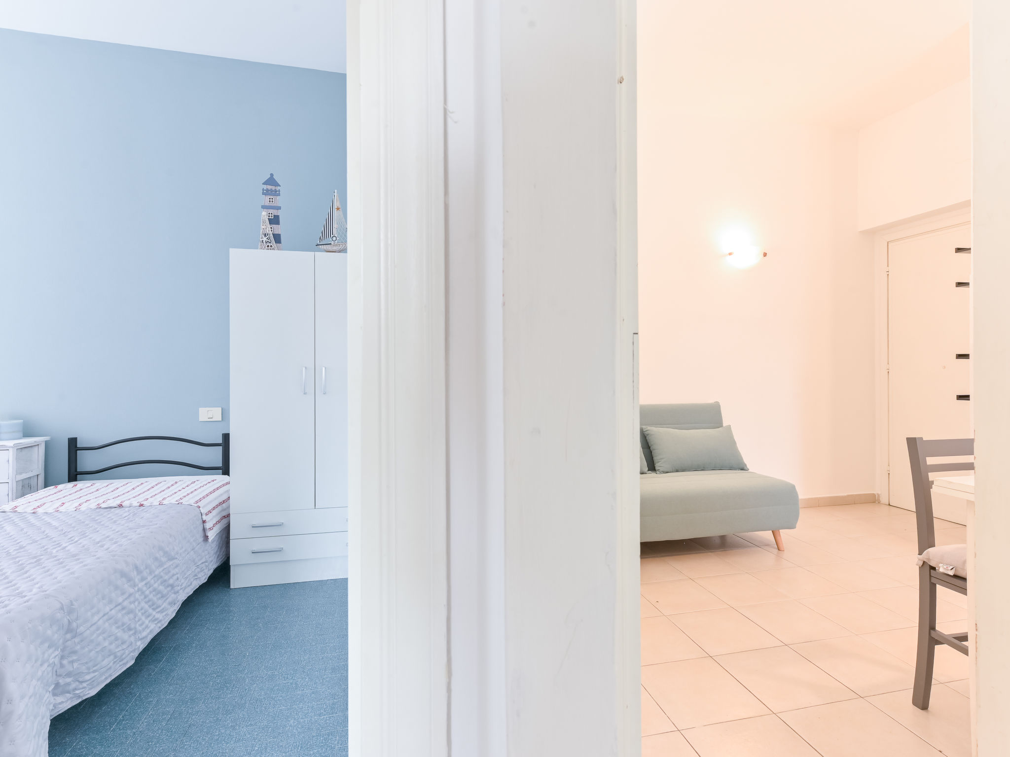 "Al numero 13", 3-room apartment 60 m2 on 1st floor. Practical furnishings: living/dining room with 1 sofabed, dining table, kitchen corner and TV. 1 double bedroom with air conditioning. 1 room with 2 beds and air conditioning. Kitchenette (oven, 4 gas rings, toaster, kettle, electric coffee machine). Shower/bidet/WC. Gas heating. Heating available only from 01.11. to 15.04. Facilities: washing machine, baby cot for up to 2 year olds (extra), hair dryer. Internet (WiFi, free). Please note: no parking. Maximum 1 small pet/ dog allowed. Smoke alarm, fire extinguisher. Air conditioning just in the double bedroom. IT053006C2LSMB9O7Y
