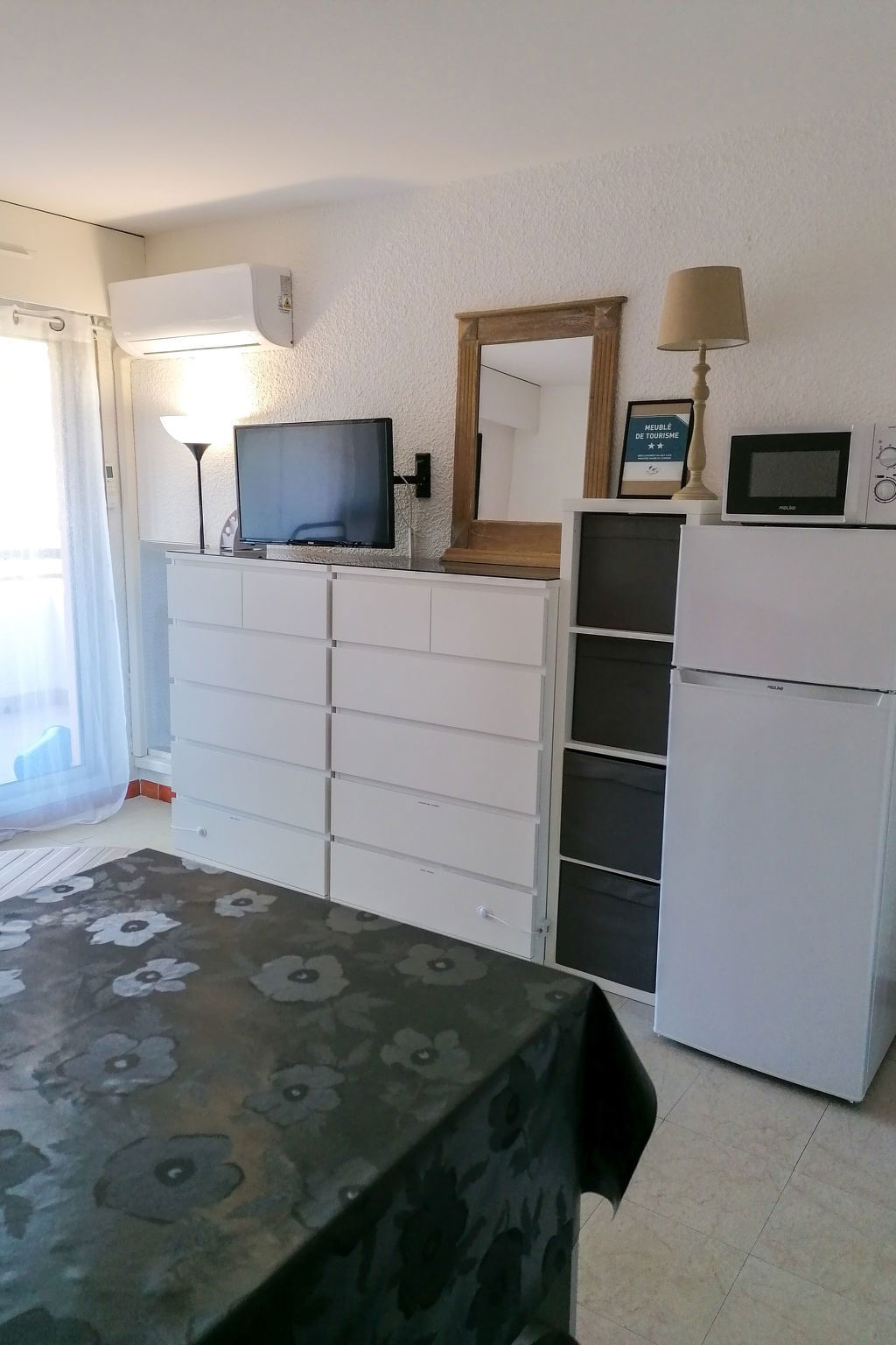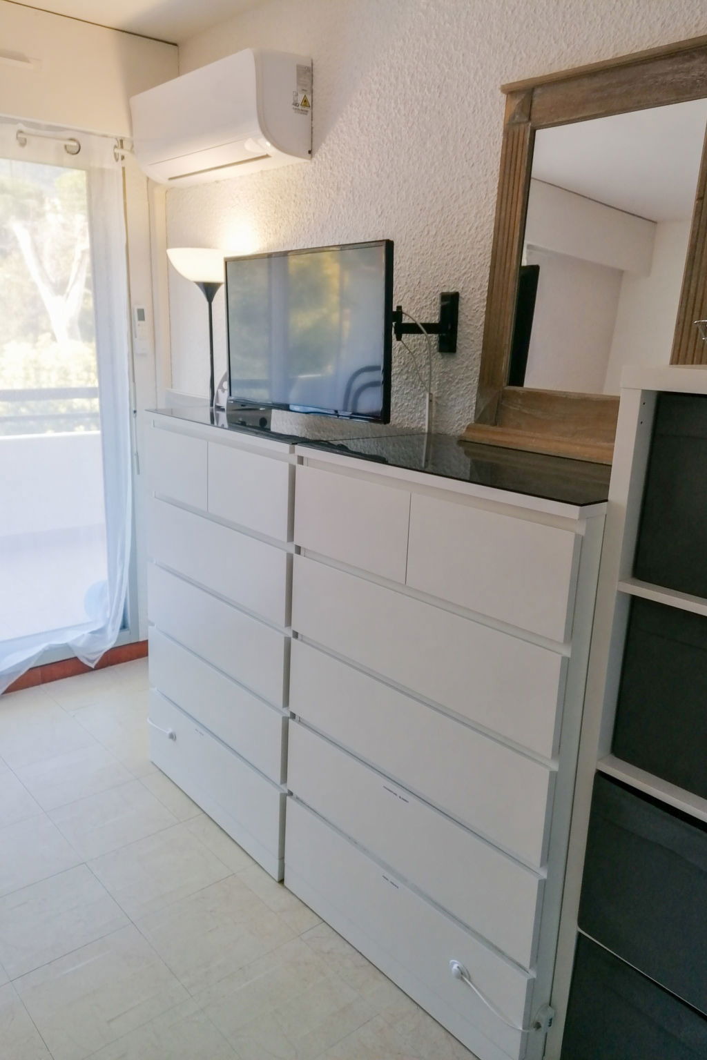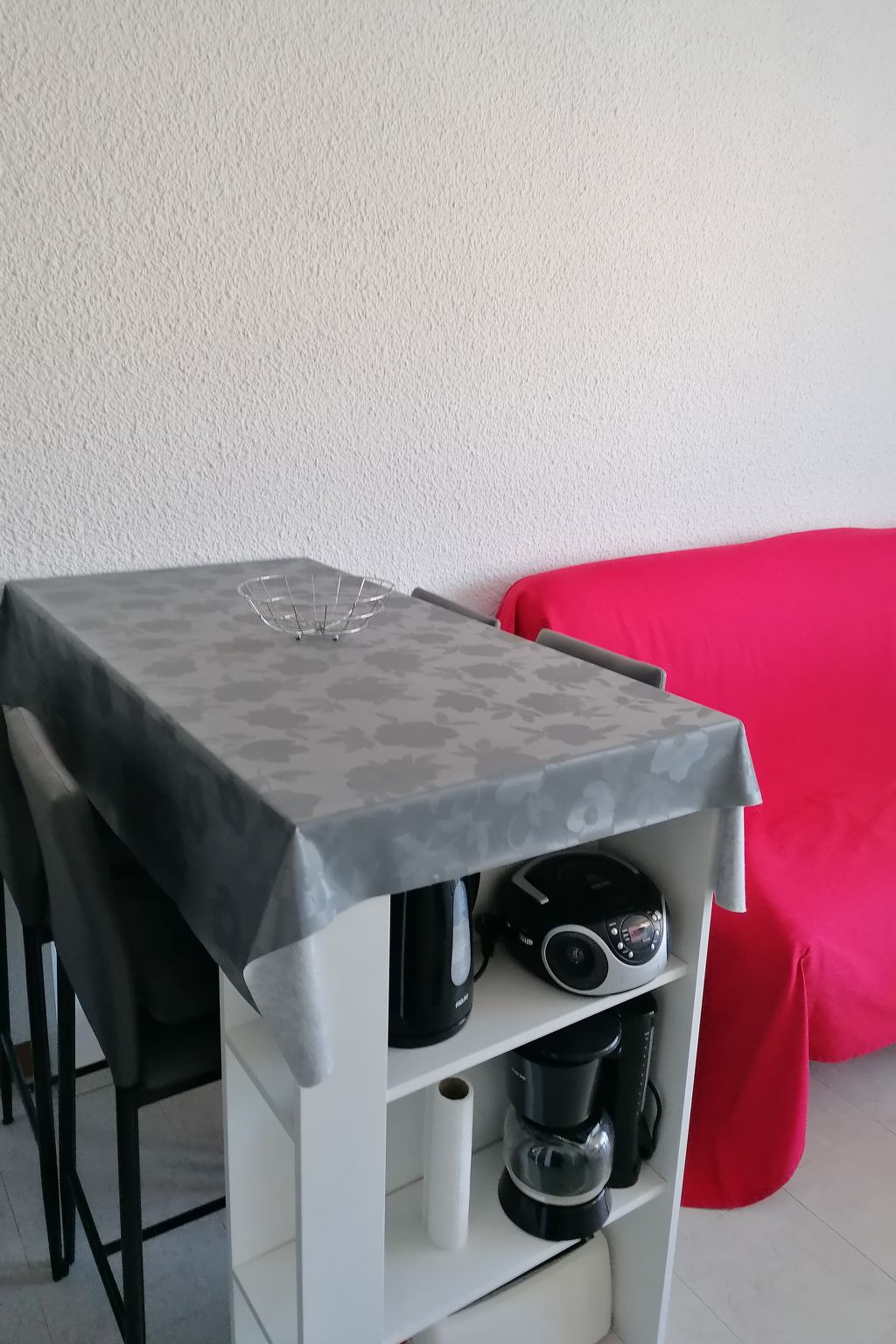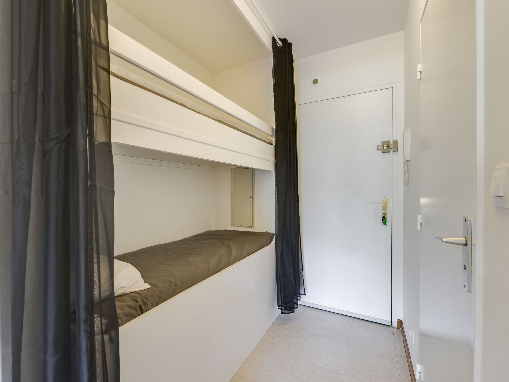 1-room studio 23 m2 on 2nd floor. Practical and beautiful furnishings: living room with 1 double sofabed (135 cm, length 185 cm), TV (flat screen), radio and CD-player. Exit to the terrace. Entrance hall with 1 x 2 bunk beds (90 cm, length 190 cm). Kitchenette (4 ceramic glass hob hotplates, toaster, kettle, electric coffee machine, combination microwave). Shower/WC. Electric heating, air-conditioning. Balcony 9 m2. Balcony furniture, deck chairs (2). View of the valley. Facilities: iron, children's high chair, baby cot for up to 3 year olds, hair dryer, baby changing unit. Internet (WiFi, free). Garage space n 46, height 189 cm, width 223 cm. Please note: 1 small pet/ dog allowed. TV only FR. Smoke alarm.